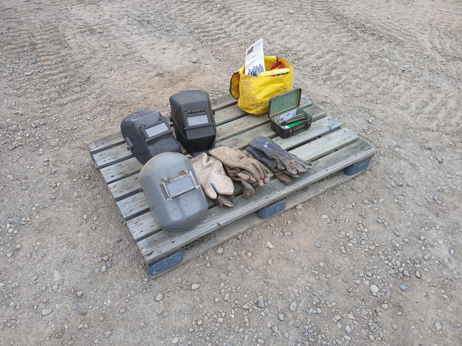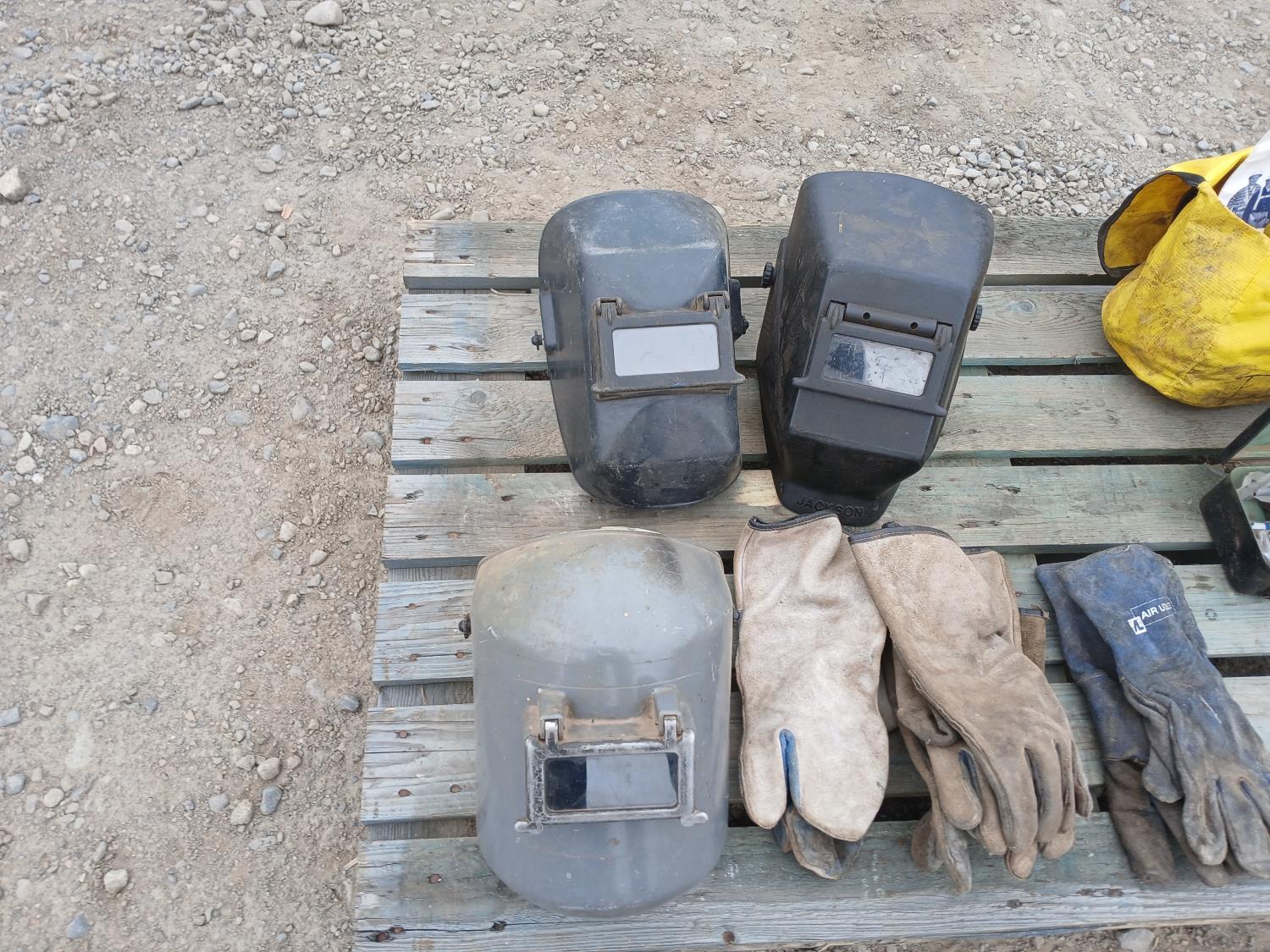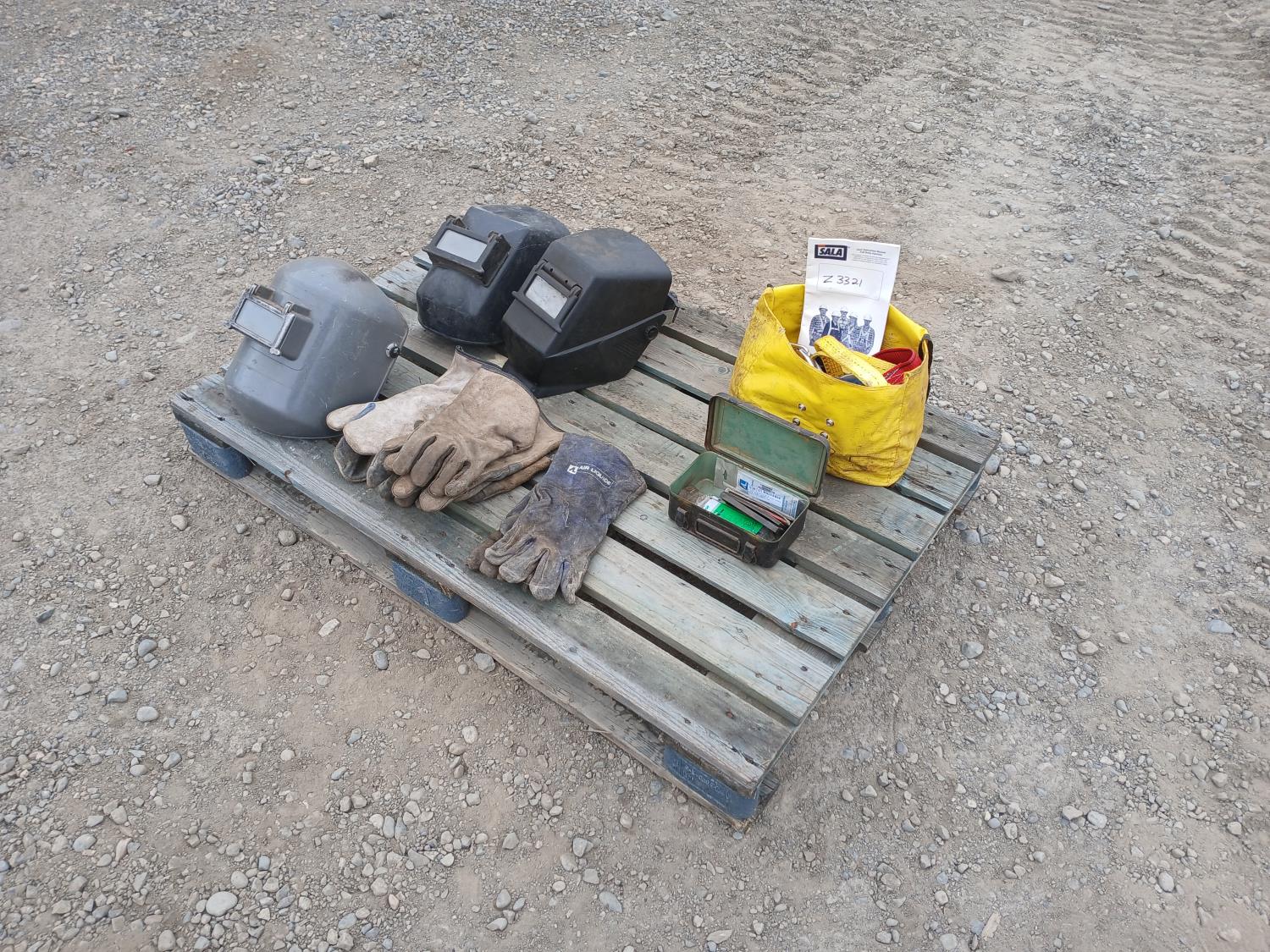 (1) DBI Sala manual full body harness, (3) welding helmets, (9) pkg welding lenses, (3) sets welding gloves.