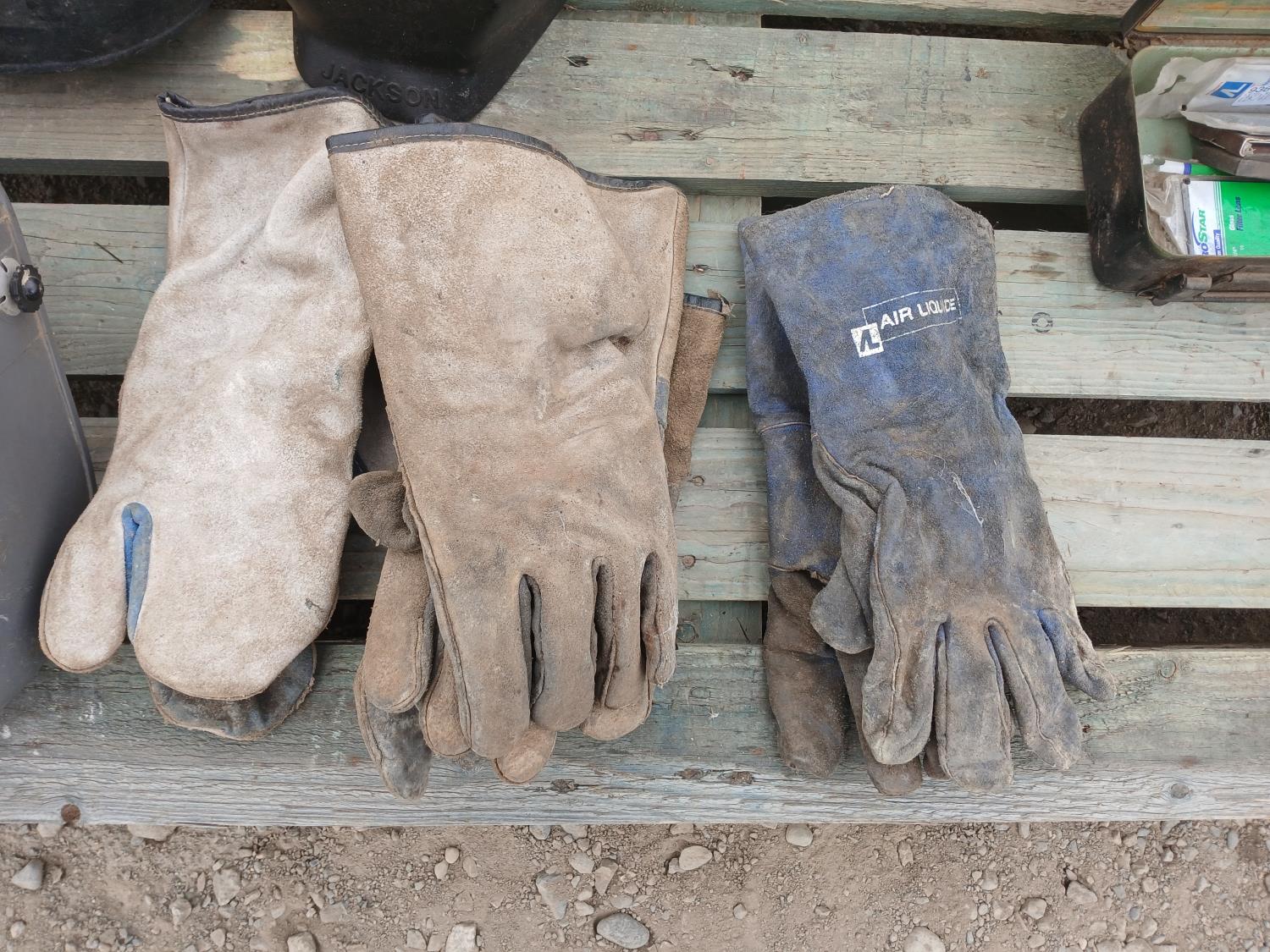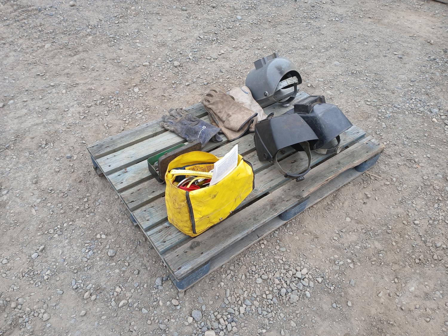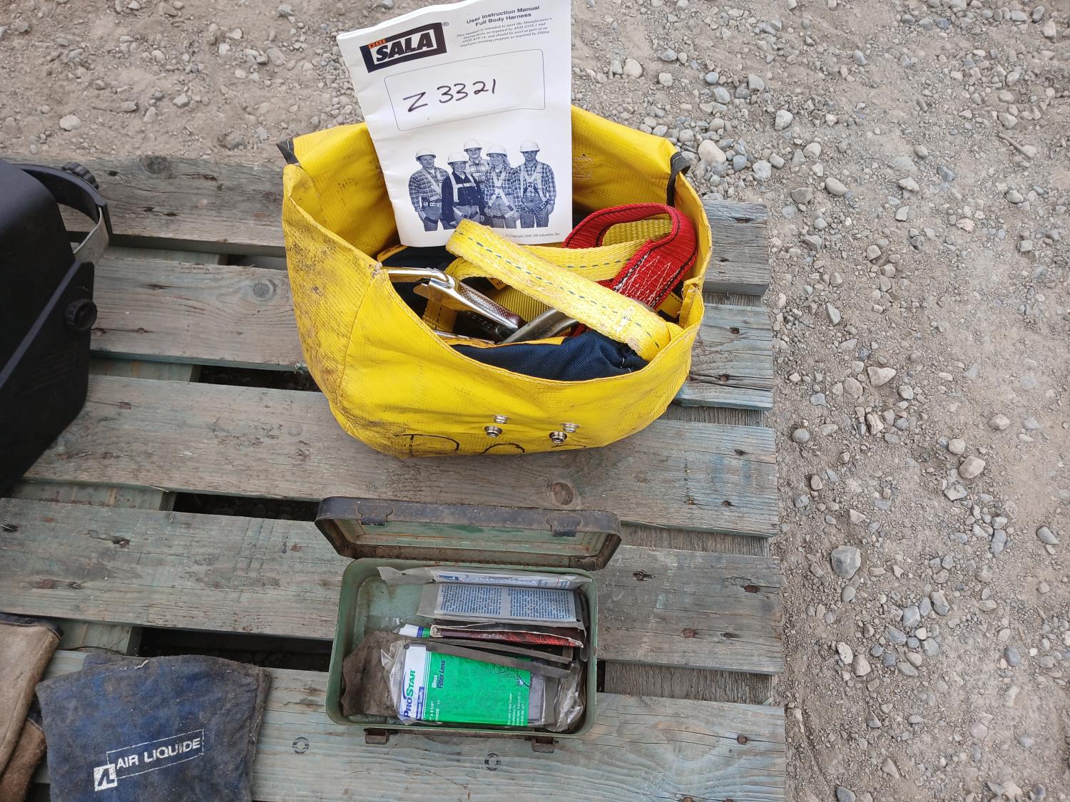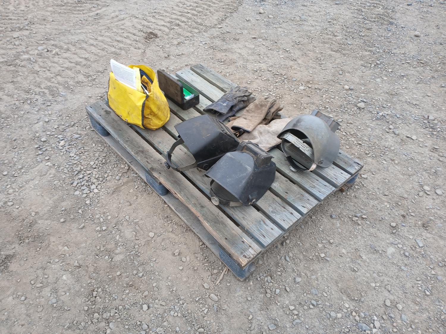 (1) DBI Sala manual full body harness, (3) welding helmets, (9) pkg welding lenses, (3) sets welding gloves.