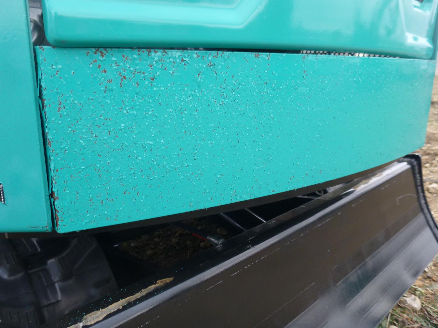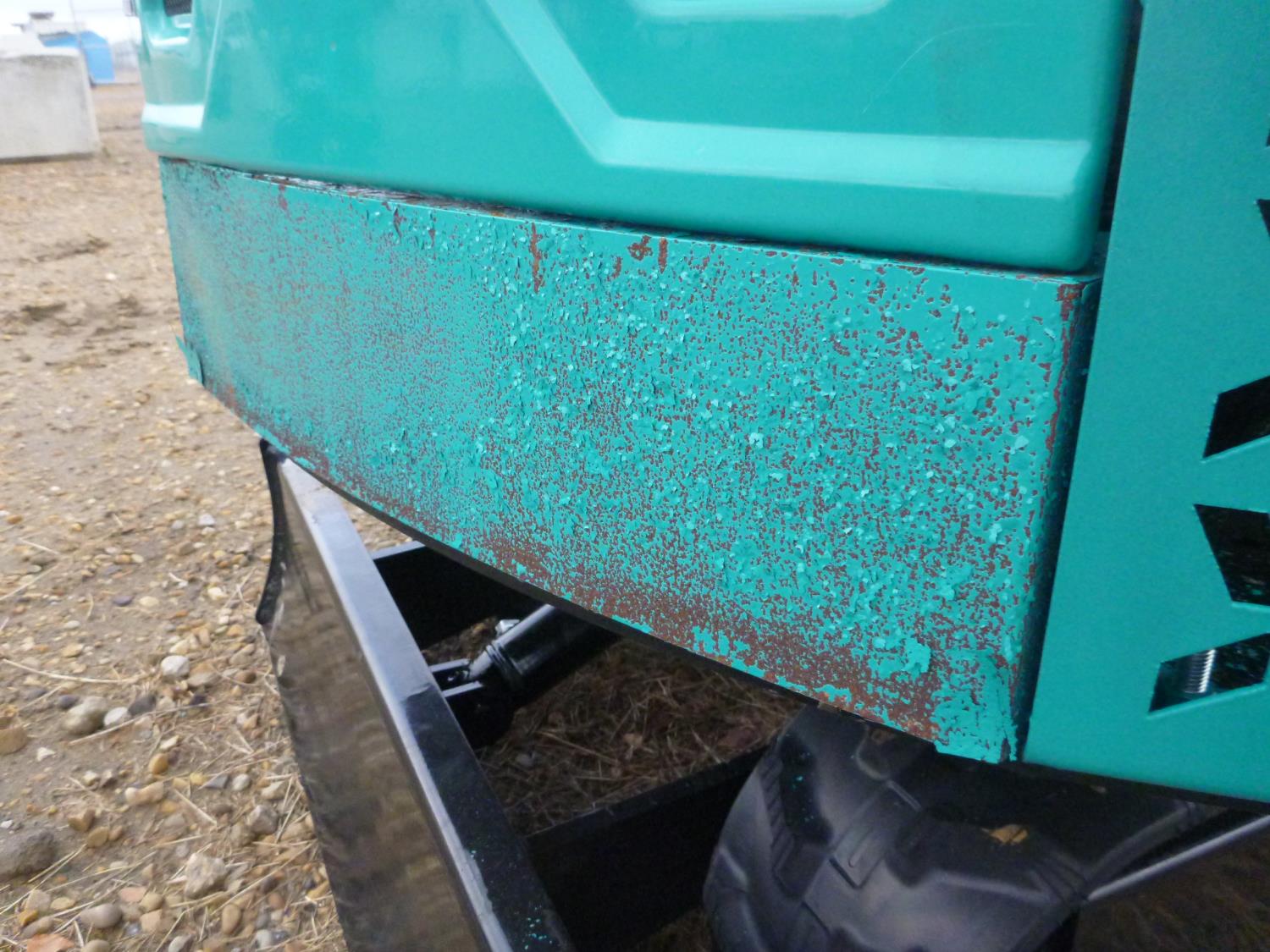 Open station, 420cc gas engine, rear paint flaking , 16 inch dig bucket, manual thumb, 2 Ft 8 inch stick, backfill blade, 7 inch rubber tracks
