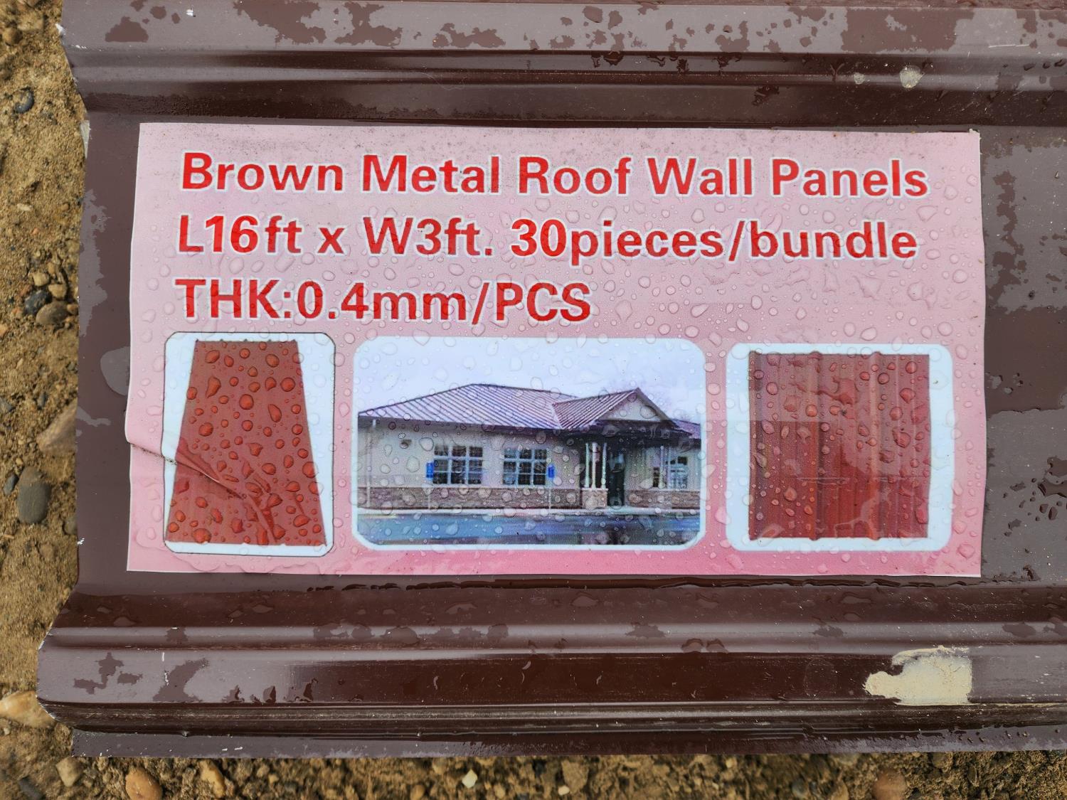 3054 (30) Brown Metal Roofing Panels (Unused)