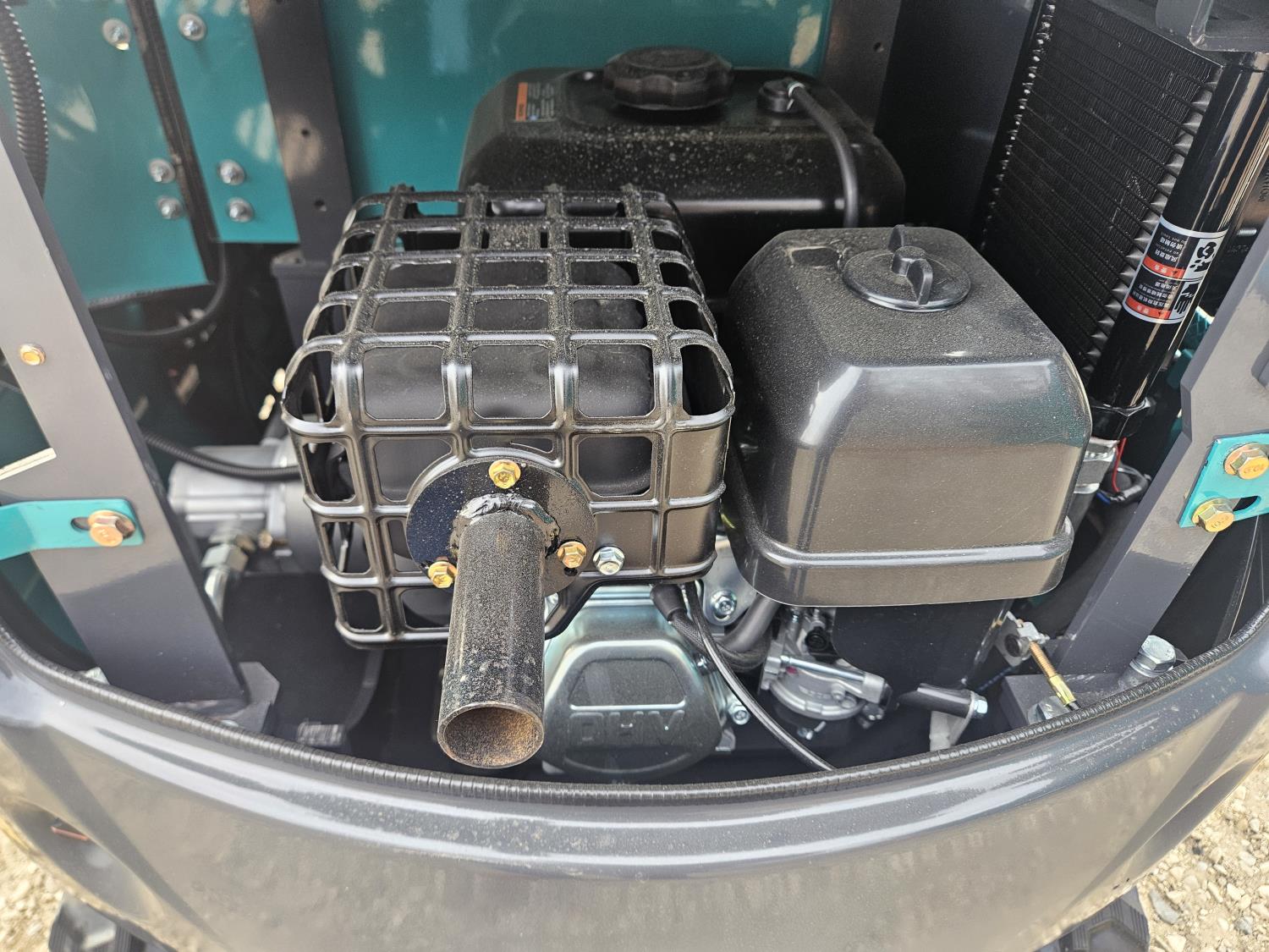 Zonsen 17Hp gas engine, 16 inch dig bucket, hydraulic thumb, 1 auxiliary hydraulics, backfill blade, rubber tracks