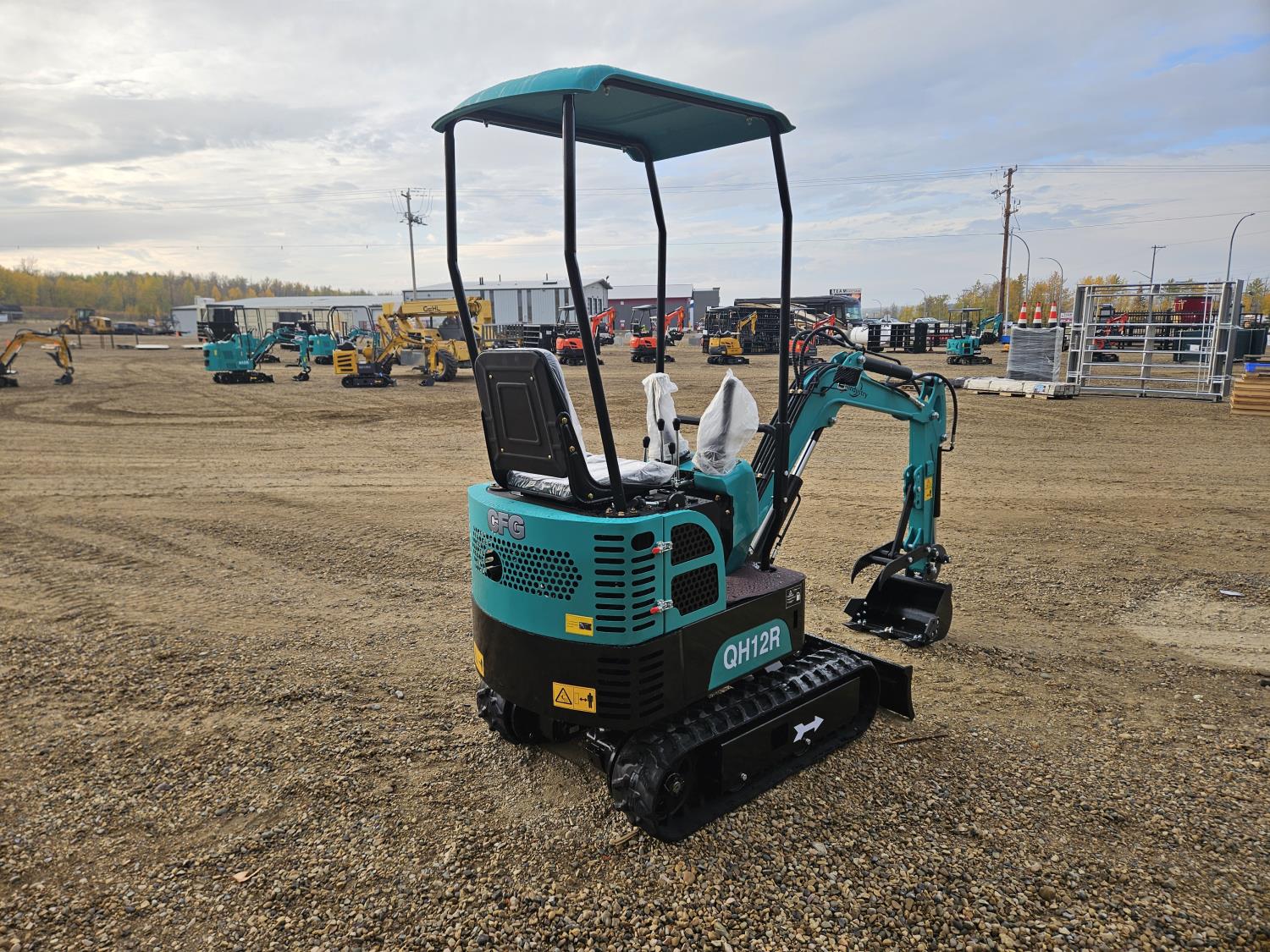 Open station, gas engine, 15 inch dig bucket, manual thumb, backfill blade, 7 inch rubber tracks