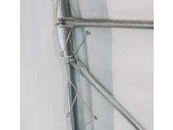 Foundation size required: 4000 mm(13.1 ft (W) x 9320 mm(30.6 ft), Floor footprint: 12 ft (W) x 30 ft (L), Truss spacing: 59”, Truss quantity: 7 groups, Dome ceiling height: 8 ft Truss tubes: 1-3/4” – 17 GA, Door clearance: 8 ft on bottom, 6-½’ on top (W) x 6-¼’ (H), 11 oz PE fabric, 14 x 14 weave, 20 mill, Heavy-duty baseplates w/pre-drilled holes