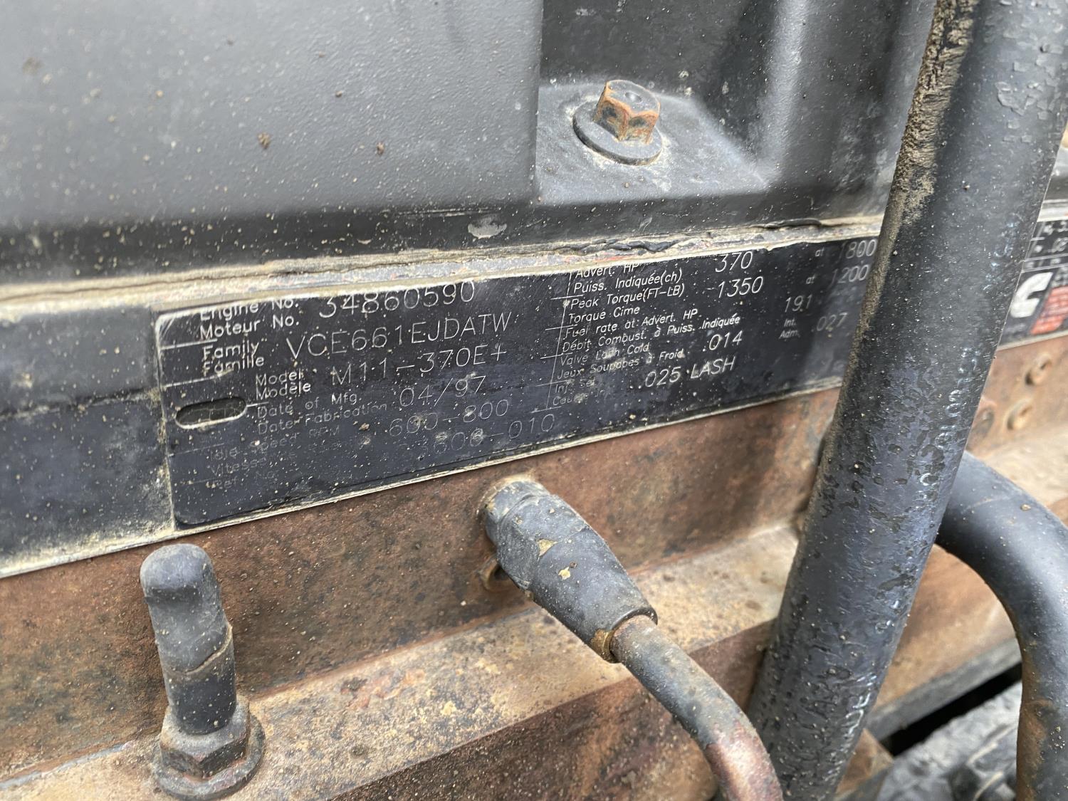 Cummins M11 PLUS 10.8 L 6 cylinder 370 HP engine, engine brake, engine block heater, Eaton Fuller 10 speed manual transmission, A/C, cruise control, air ride suspension, 12,000 lb front axle, 40,000 lb rear axles, diff lock, 154 inch WB, 11R22.5 tires