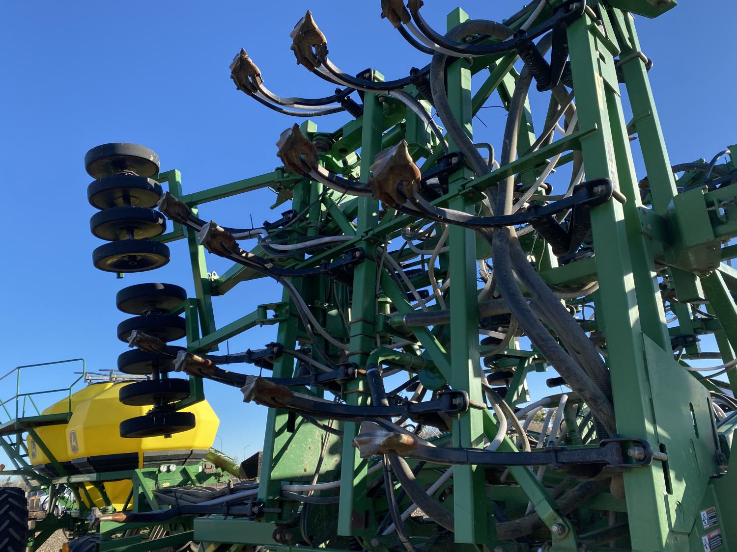 9 inch spacing, double shoot openers, 4 inch rubber capped packers, Air Cart: 2 compartments, 8 inch loading auger, single fan, 12.5L-16.1SL front tires, 12.5L-16.1SL rear tires