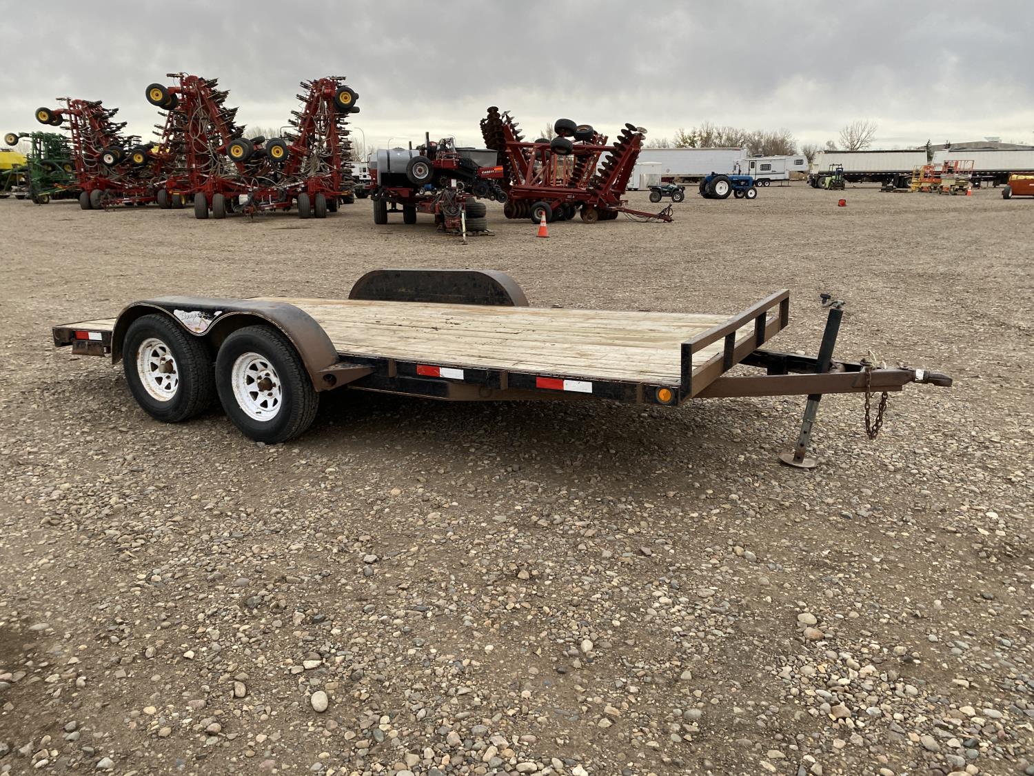 82 inch wide deck, wood deck, slide in ramps, spring suspension, ball hitch, stake pockets, 225/75R15 tires