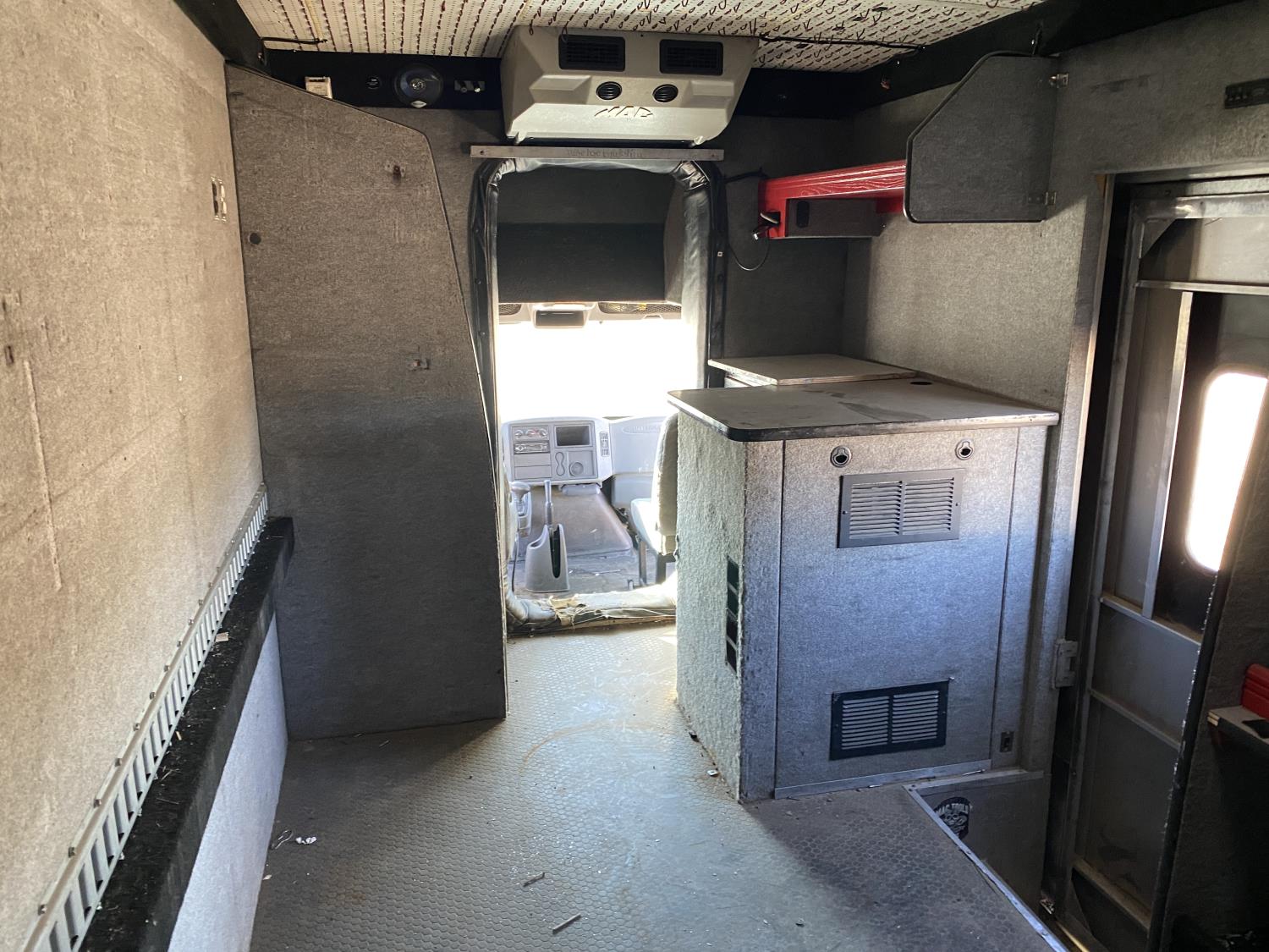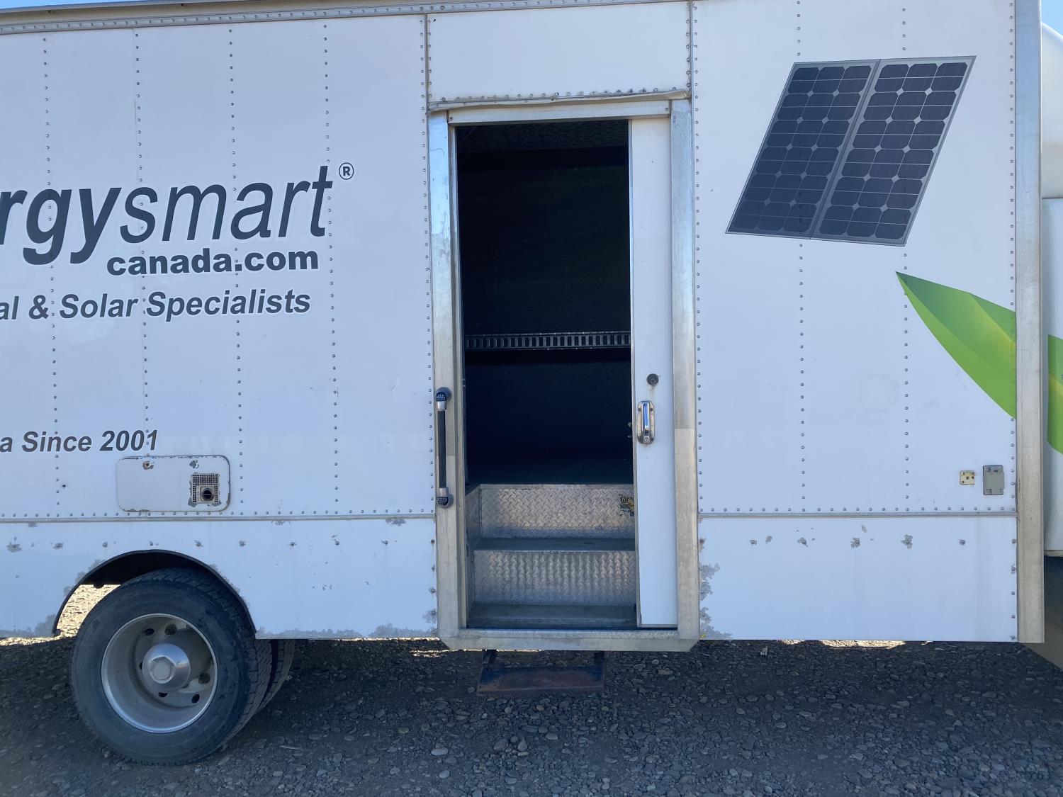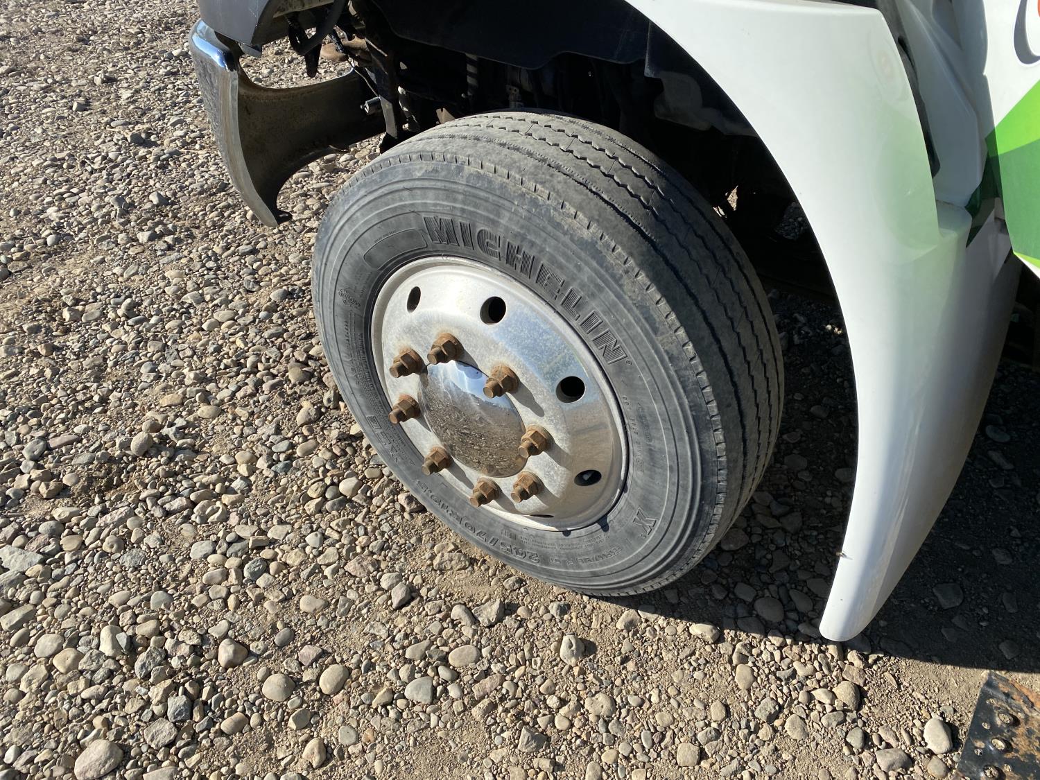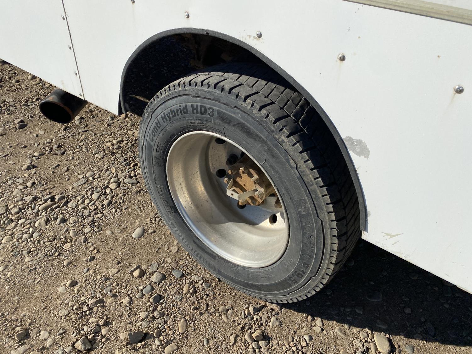 6.0 L V8 diesel engine, Webasto diesel engine heater, electric engine block heater, automatic transmission, A/C, P/W, P/L, cruise control, air ride driver seat, 20 ft box, 84 inch W, 91 inch T, hydraulic lift gate, right hand side door, spring suspension, 8,000 lb front axle, 17,500 lb rear axles, 216 inch WB, 245/70R19.5 tires