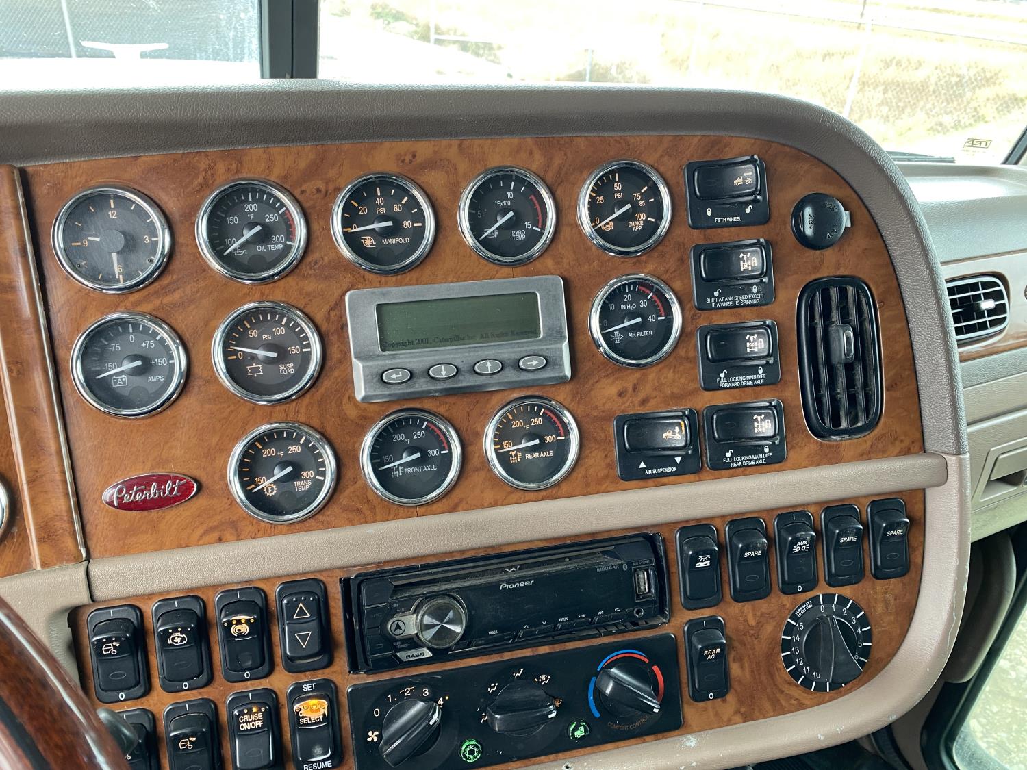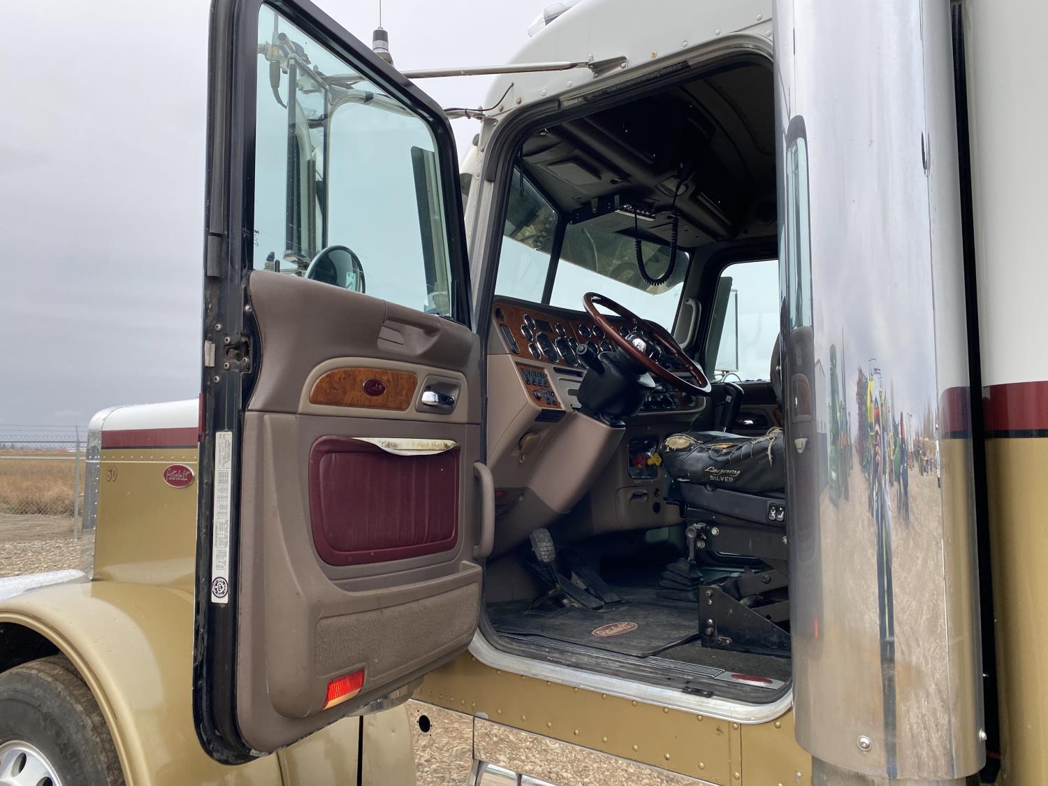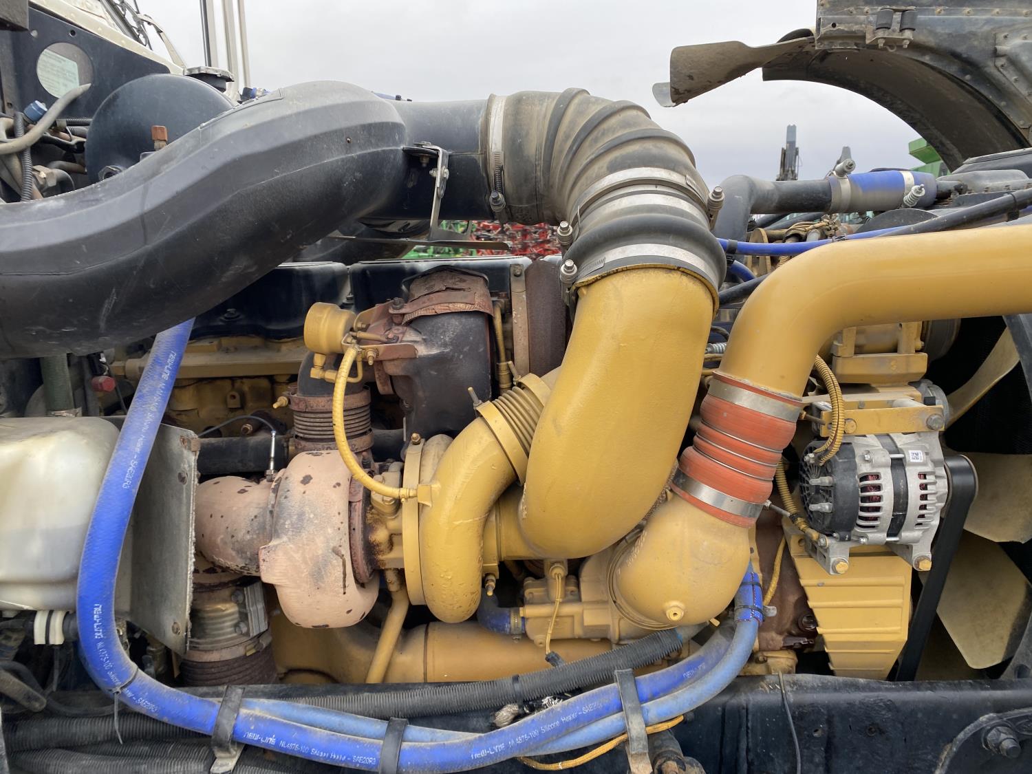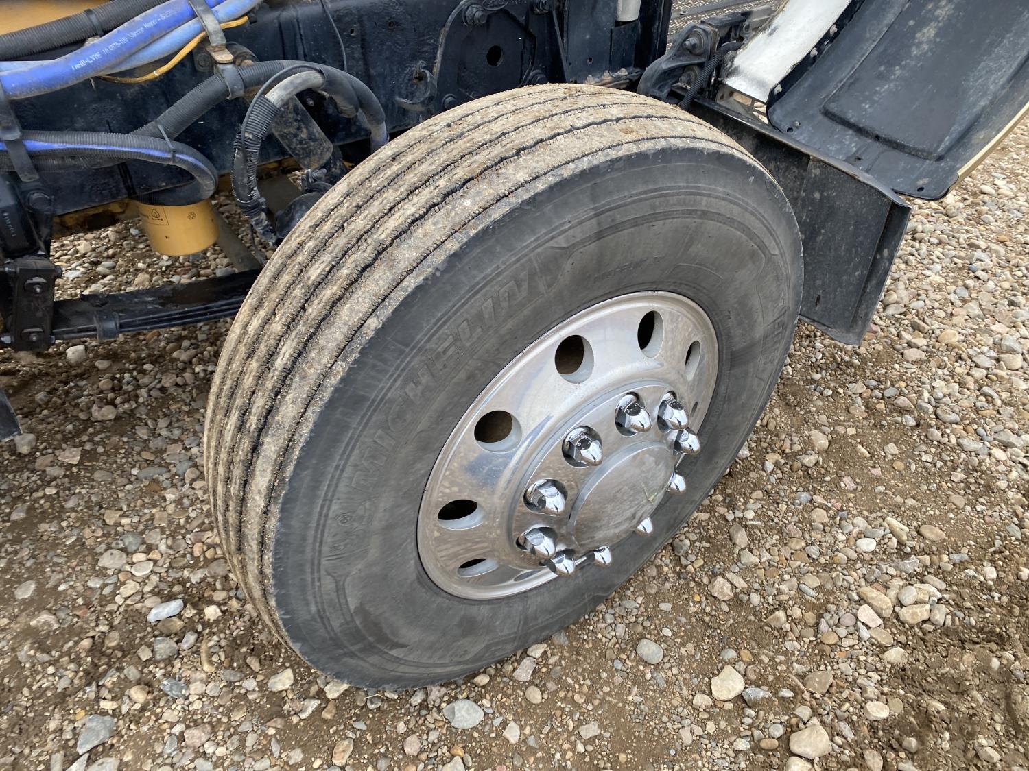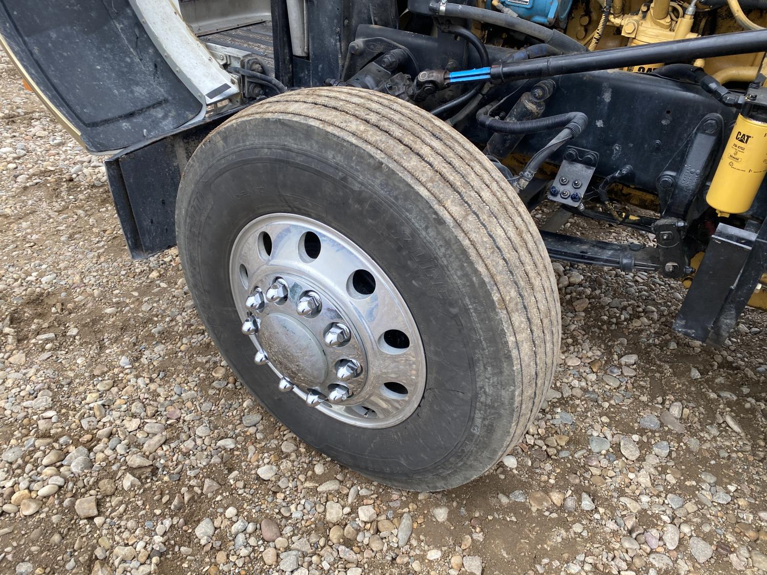 Caterpillar C15 15.2 L 6 cylinder engine, Proheat engine heater, engine brake, engine block heater, Eaton Fuller 18 speed manual transmission, mid rise 60 inch sleeper, A/C, cruise control, air ride driver seat, CB radio, air ride cab, air ride suspension, 12,000 lb front axle, 40,000 lb rear axles, full lockers, 244 inch WB, all aluminum wheels, 11R22.5 tires
