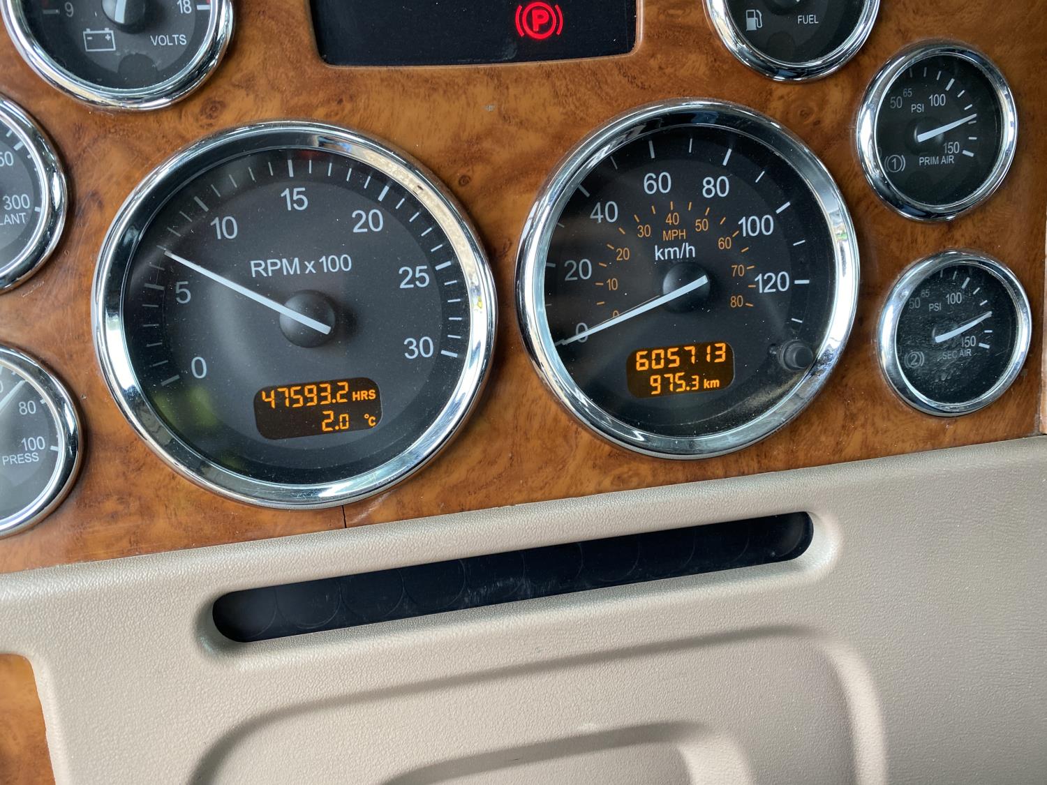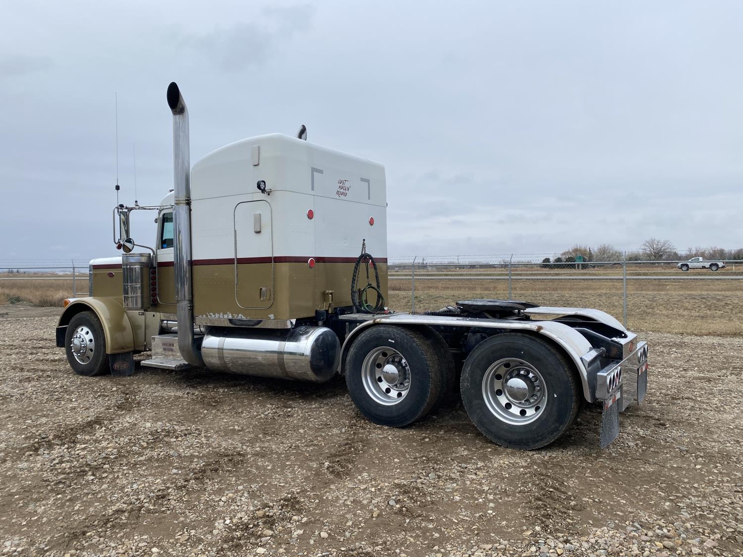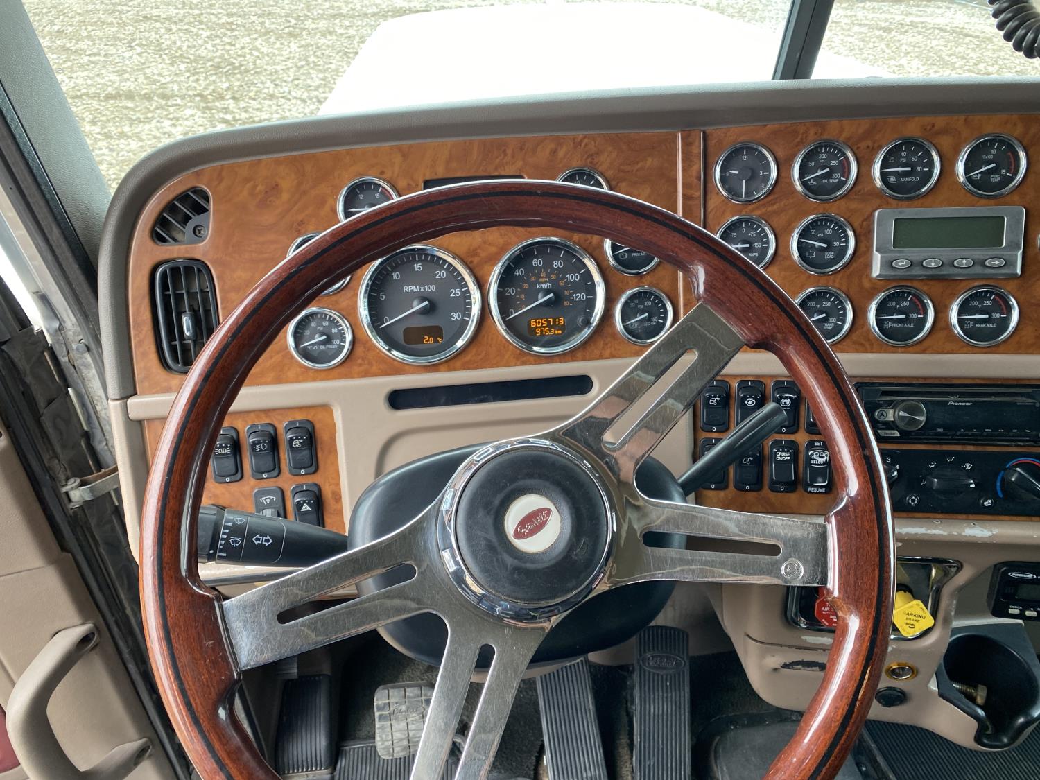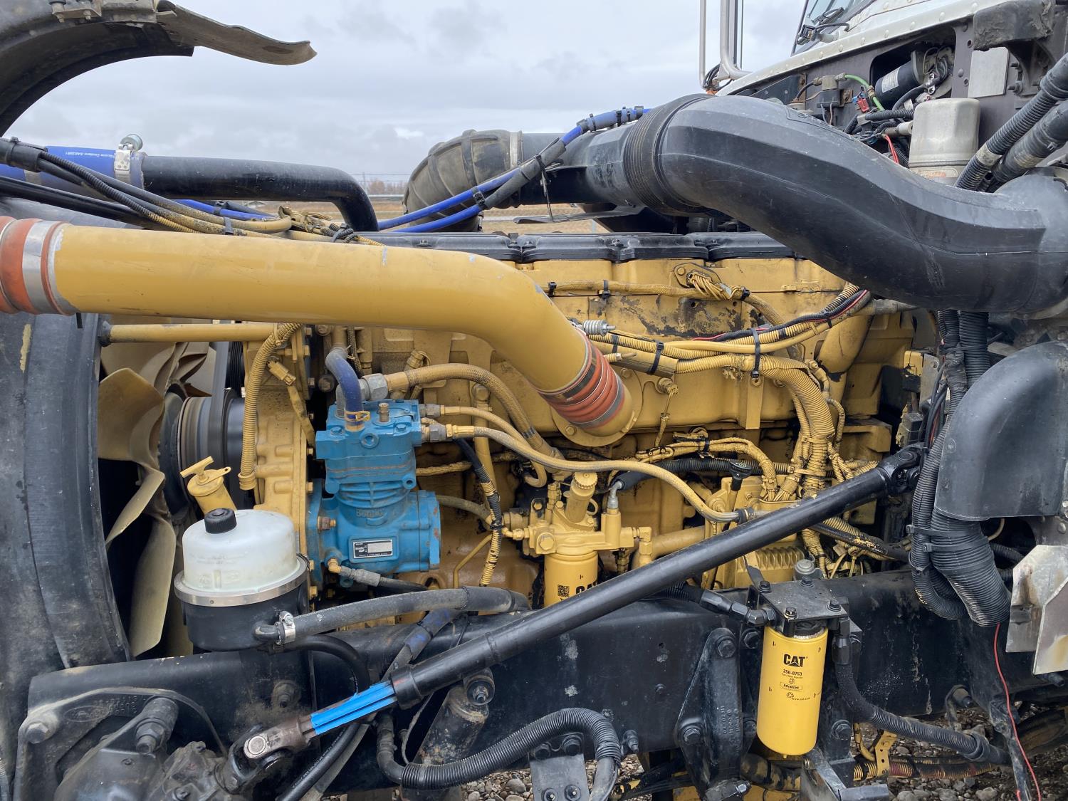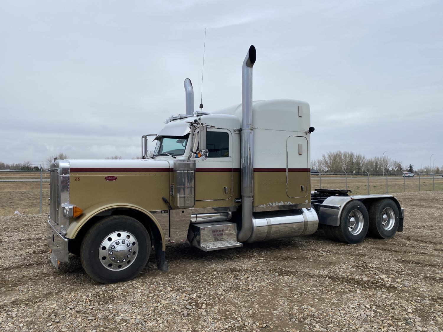 Caterpillar C15 15.2 L 6 cylinder engine, Proheat engine heater, engine brake, engine block heater, Eaton Fuller 18 speed manual transmission, mid rise 60 inch sleeper, A/C, cruise control, air ride driver seat, CB radio, air ride cab, air ride suspension, 12,000 lb front axle, 40,000 lb rear axles, full lockers, 244 inch WB, all aluminum wheels, 11R22.5 tires