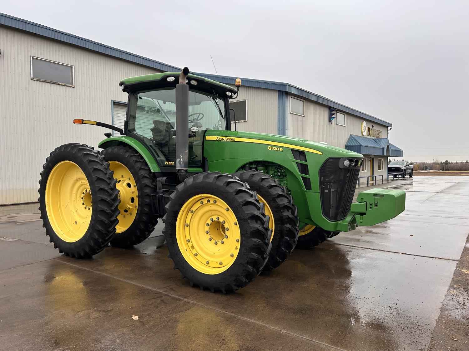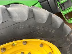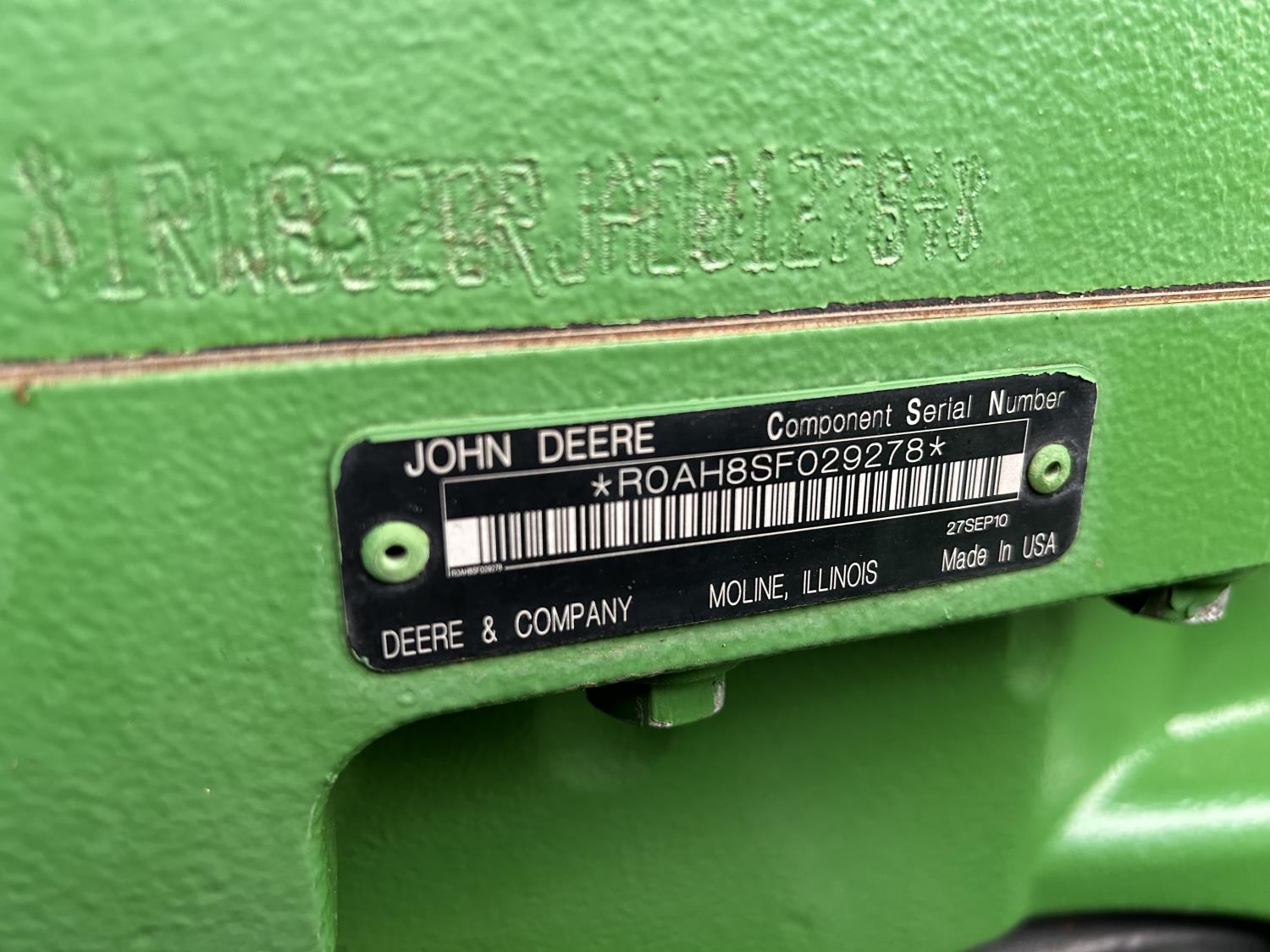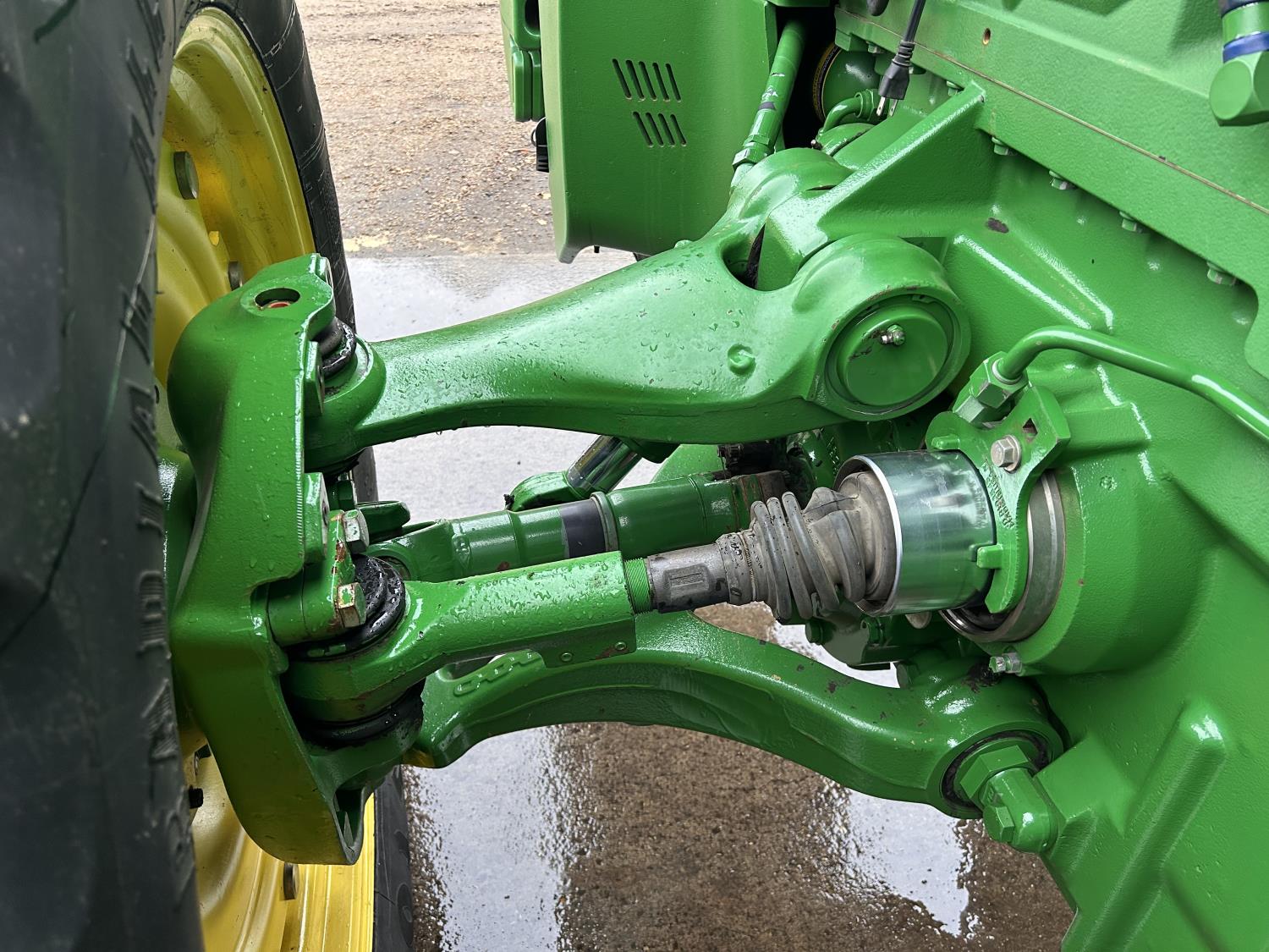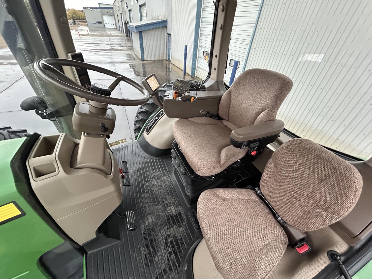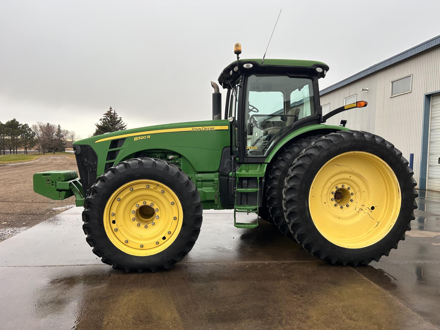 John Deere 9.0L 6 cylinder 320 HP, diesel engine, 263 PTO HP, IVT transmission, 60 GPM hydraulic pump, cab, front and rear differential lock, A/C, upgraded stereo, air ride seat, buddy seat, GPS ready, RH/Shuttle , 22 front weights, 47Kg per weight , 540/1000 / Big 1000 PTO, Q/A 3 point hitch, 3 point hitch exterior control, 5 rear hydraulic outlets, 1 rear auxilary hydraulic outlets, Power beyond and case drain Rear 3pt lift capacity 18,300 lbs , 380/80R38 dual front tires, 380/90R54 dual rear tires, 36" spacing setup for row crop. , Tractor had engine rebuild at 4167hrs, see work orders and service records attached