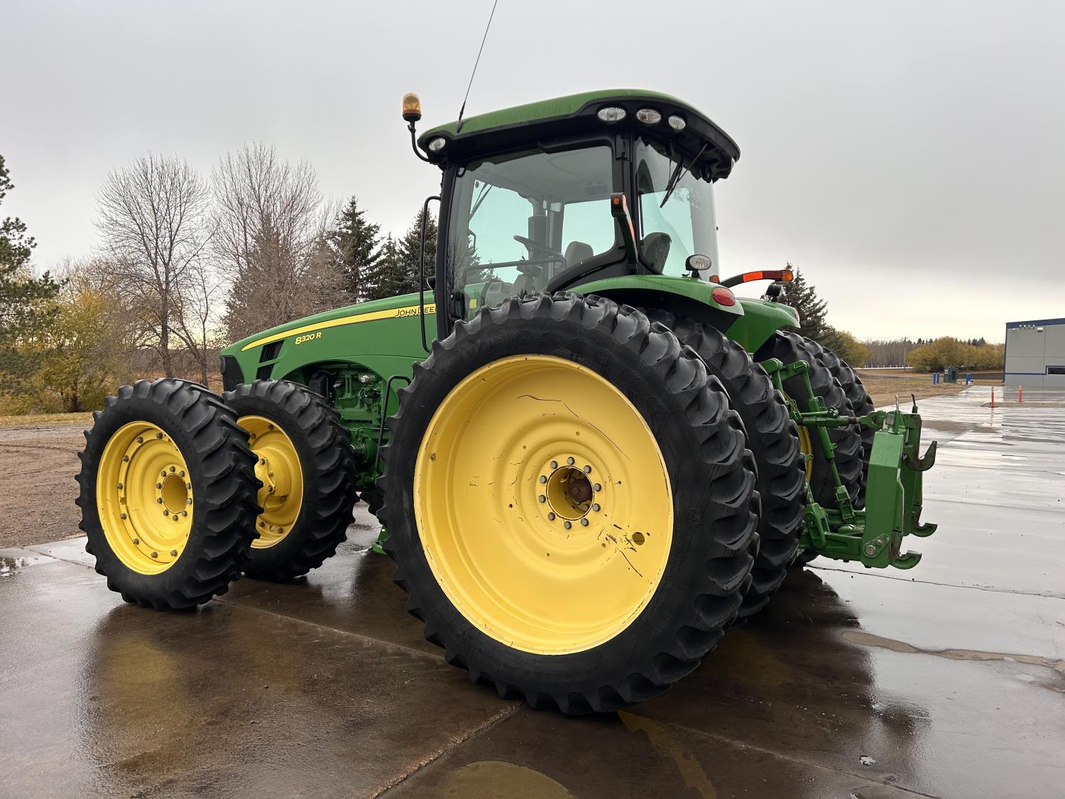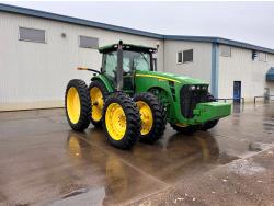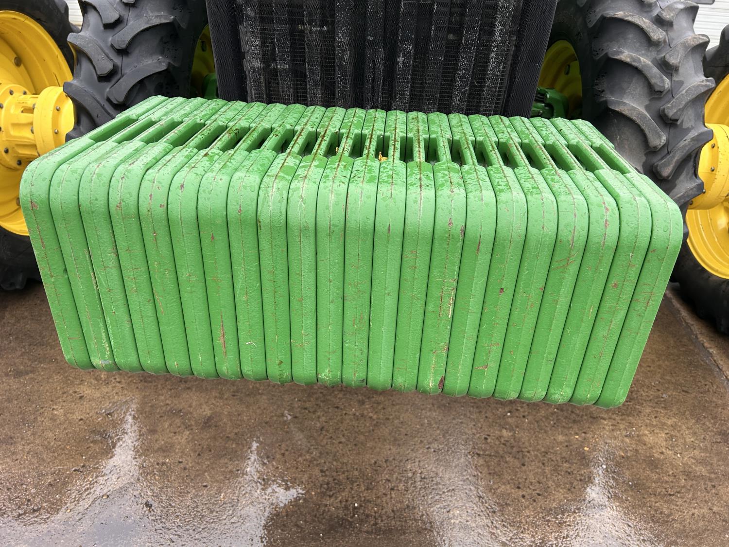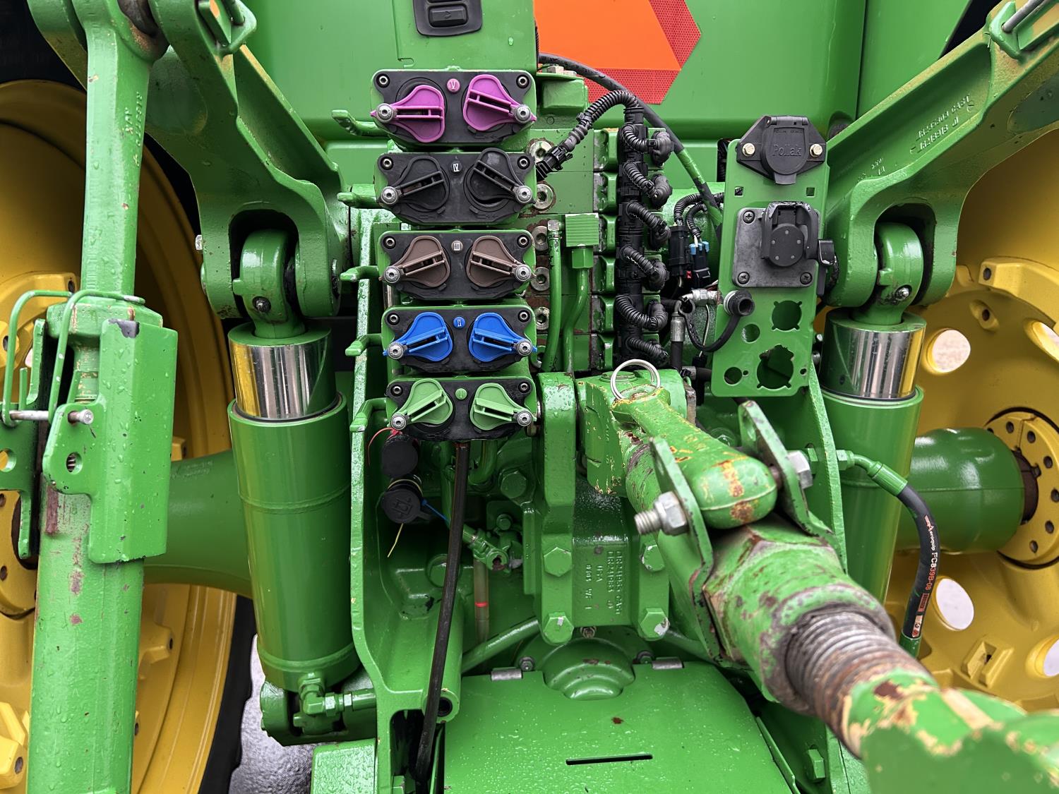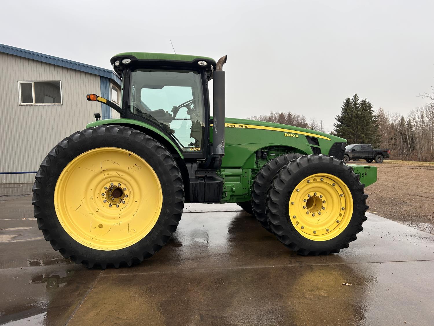 John Deere 9.0L 6 cylinder 320 HP, diesel engine, 263 PTO HP, IVT transmission, 60 GPM hydraulic pump, cab, front and rear differential lock, A/C, upgraded stereo, air ride seat, buddy seat, GPS ready, RH/Shuttle , 22 front weights, 47Kg per weight , 540/1000 / Big 1000 PTO, Q/A 3 point hitch, 3 point hitch exterior control, 5 rear hydraulic outlets, 1 rear auxilary hydraulic outlets, Power beyond and case drain Rear 3pt lift capacity 18,300 lbs , 380/80R38 dual front tires, 380/90R54 dual rear tires, 36" spacing setup for row crop. , Tractor had engine rebuild at 4167hrs, see work orders and service records attached