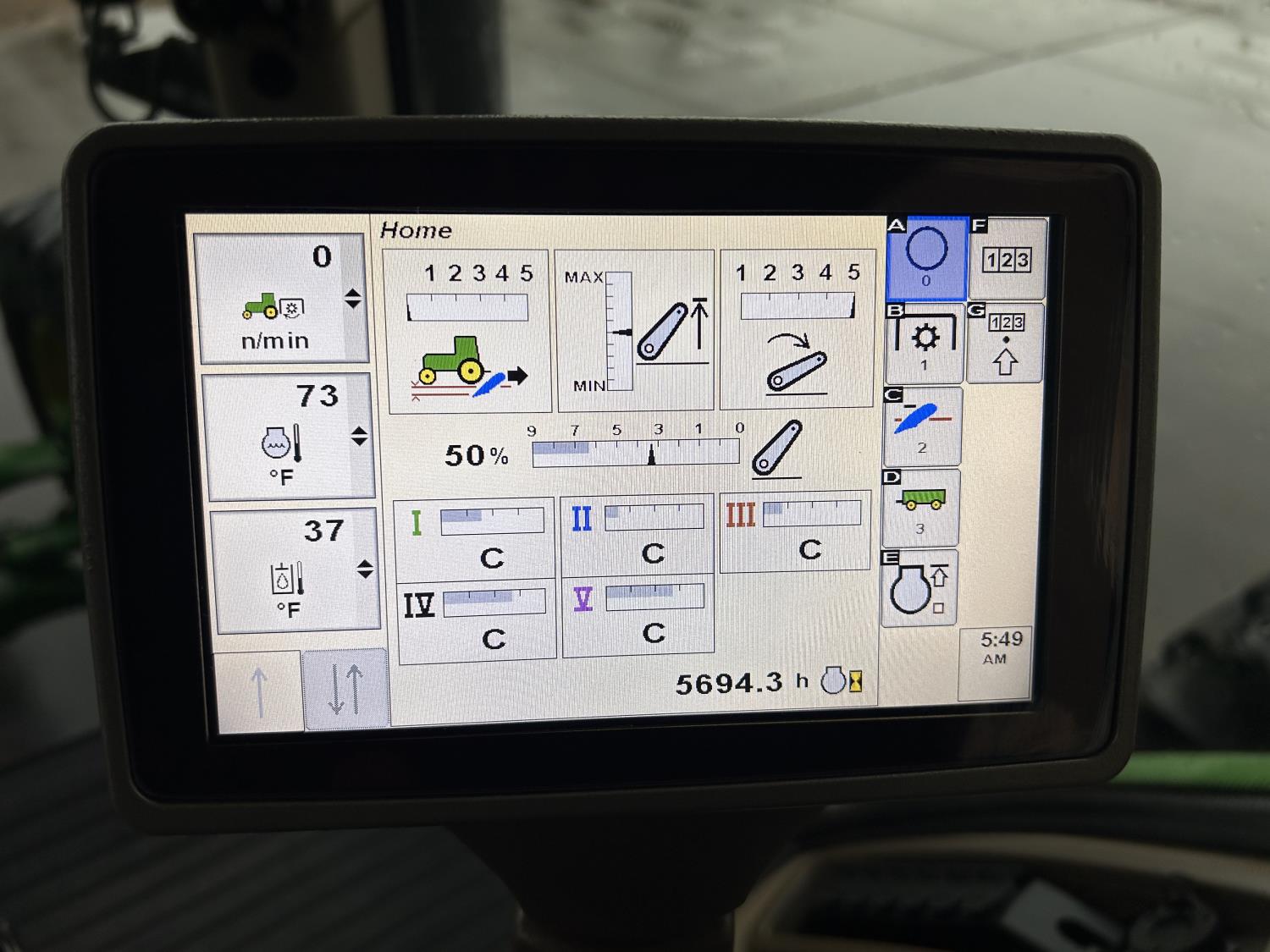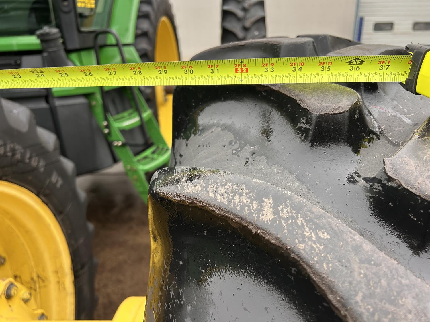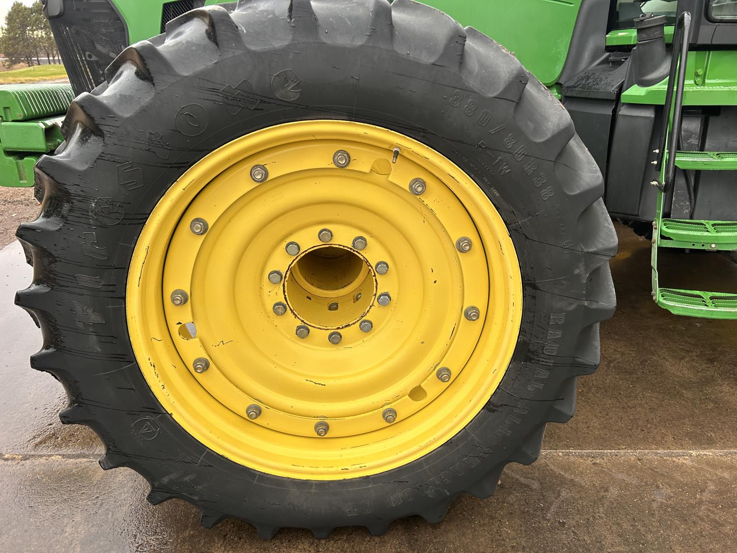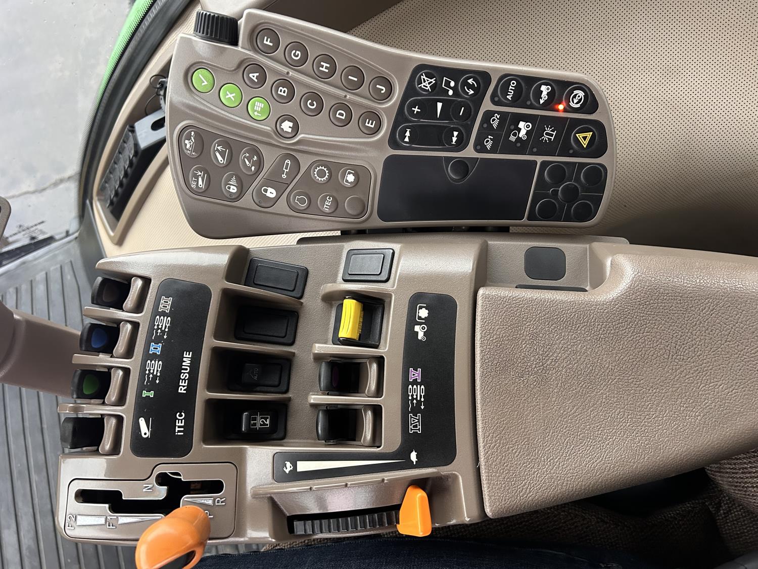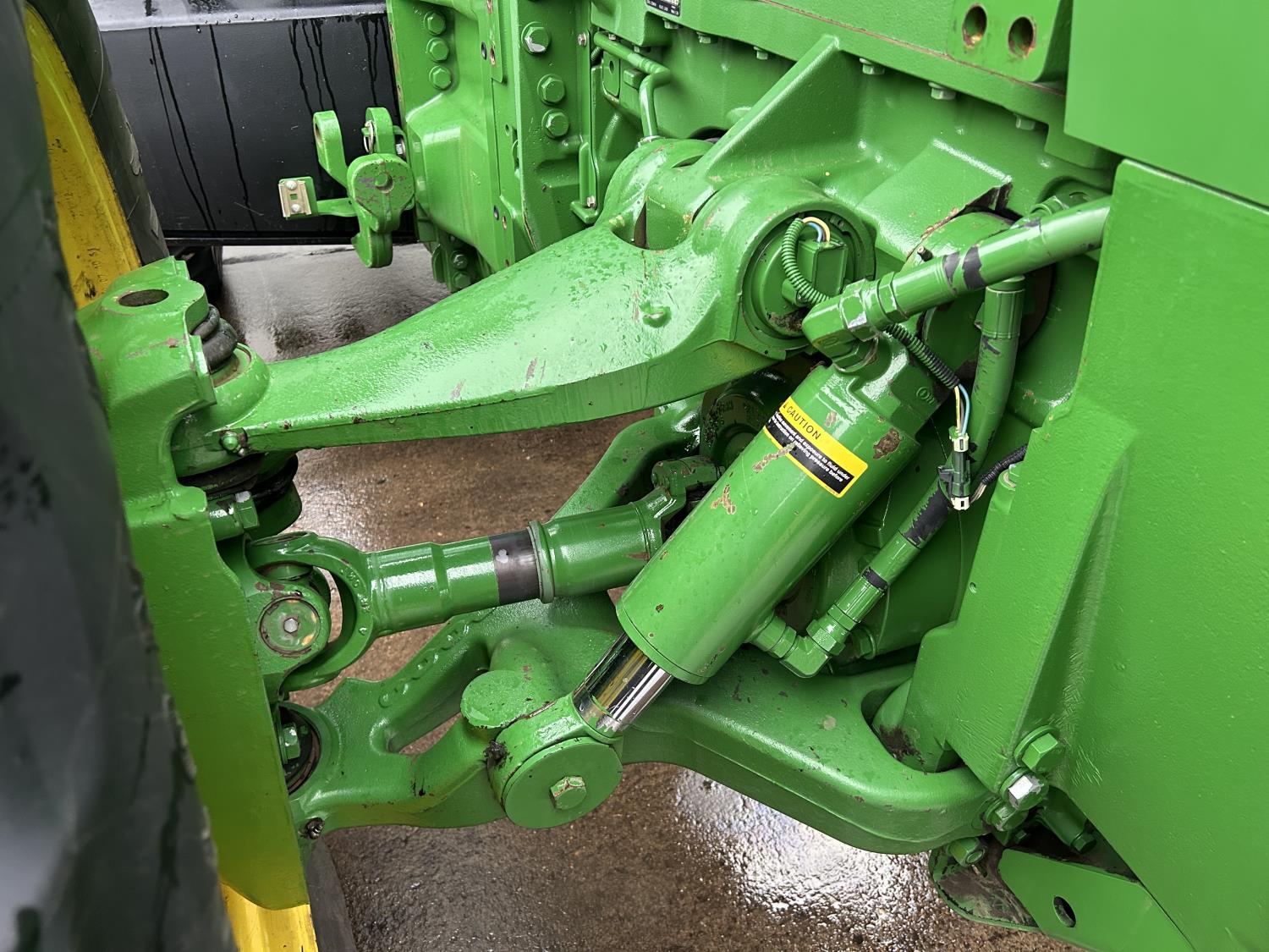 John Deere 9.0L 6 cylinder 320 HP, diesel engine, 263 PTO HP, IVT transmission, 60 GPM hydraulic pump, cab, front and rear differential lock, A/C, upgraded stereo, air ride seat, buddy seat, GPS ready, RH/Shuttle , 22 front weights, 47Kg per weight , 540/1000 / Big 1000 PTO, Q/A 3 point hitch, 3 point hitch exterior control, 5 rear hydraulic outlets, 1 rear auxilary hydraulic outlets, Power beyond and case drain Rear 3pt lift capacity 18,300 lbs , 380/80R38 dual front tires, 380/90R54 dual rear tires, 36" spacing setup for row crop. , Tractor had engine rebuild at 4167hrs, see work orders and service records attached