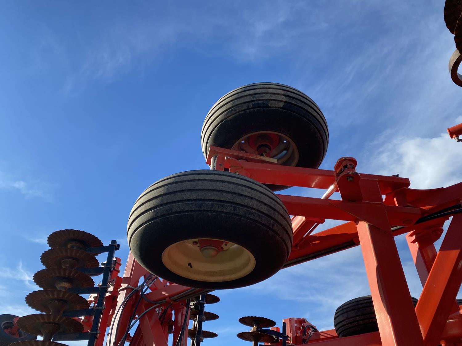 front: 8 inch spacing wavy 20 inch discs, rear: 8 inch spacing wavy 20 inch discs, scrapers, roller cage baskets, 380/55R16.5 main frame tires, 11L-15 wing tires