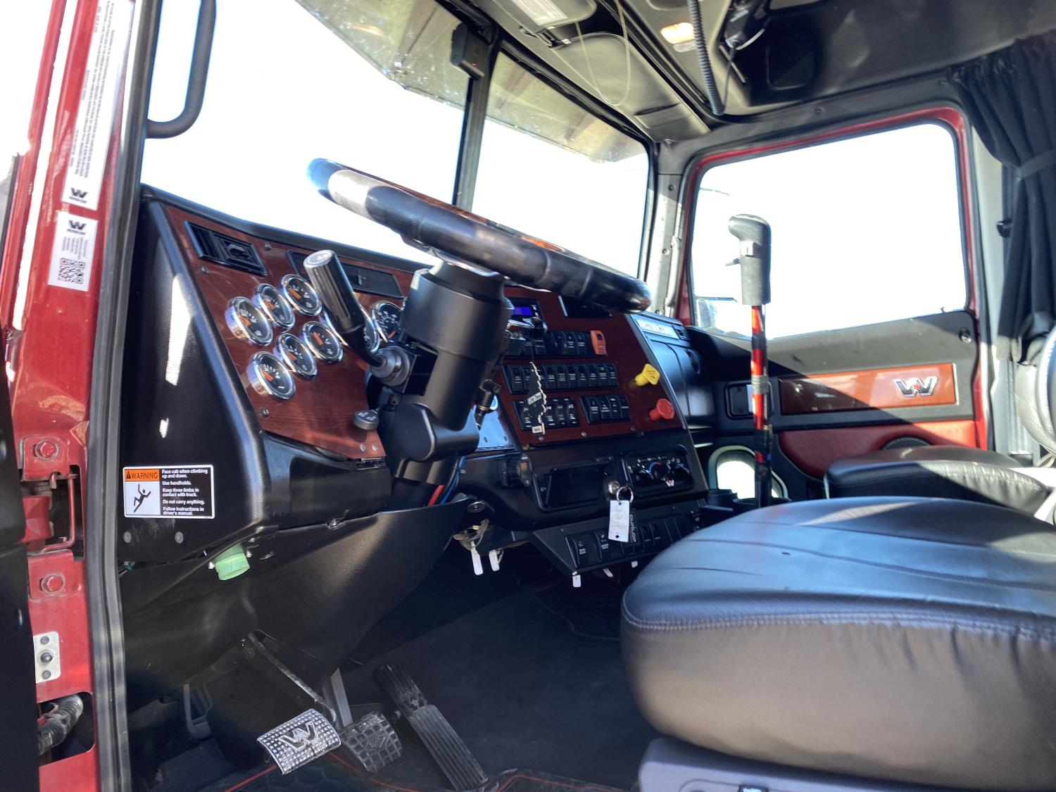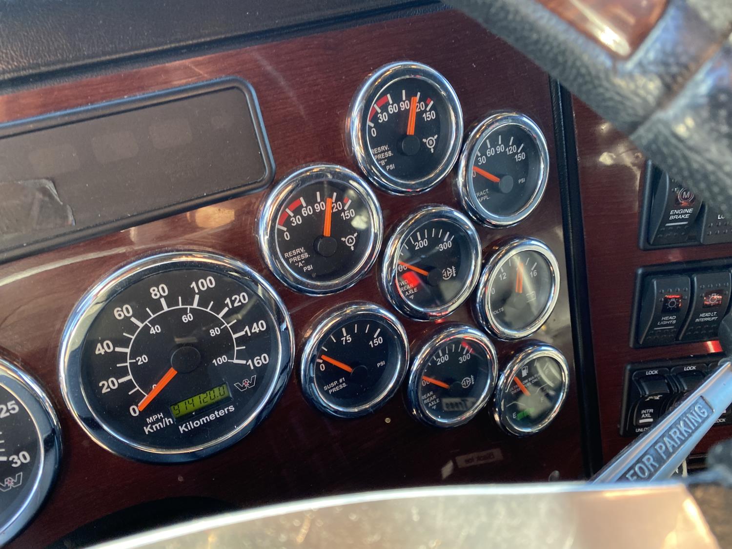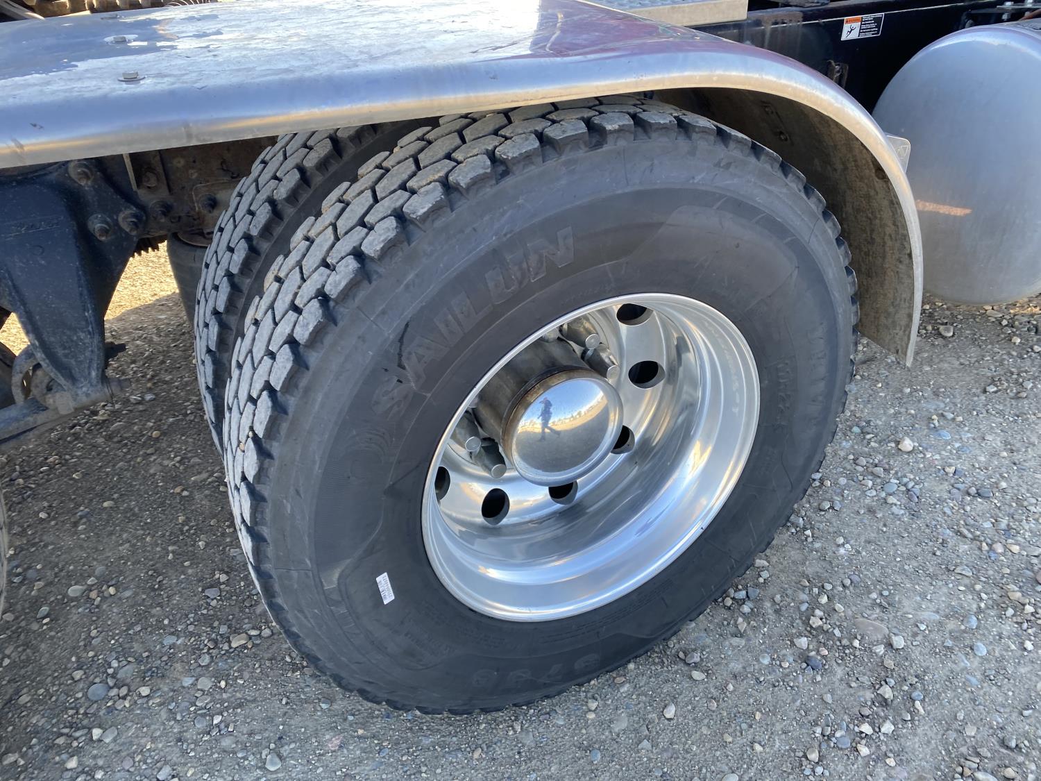 Detroit DD16 15.6 L 6 cylinder 600 HP engine, DEF required, engine brake, engine block heater, Eaton Fuller 18 speed manual transmission, Webasto cab heater, mid rise 72 inch sleeper, fridge, A/C, cruise control, leather interior, air ride seats, CB radio, air ride cab, air ride suspension, 13,220 lb front axle, 40,000 lb rear axles, full lockers, 262 inch WB, all aluminum wheels, 11R22.5 tires