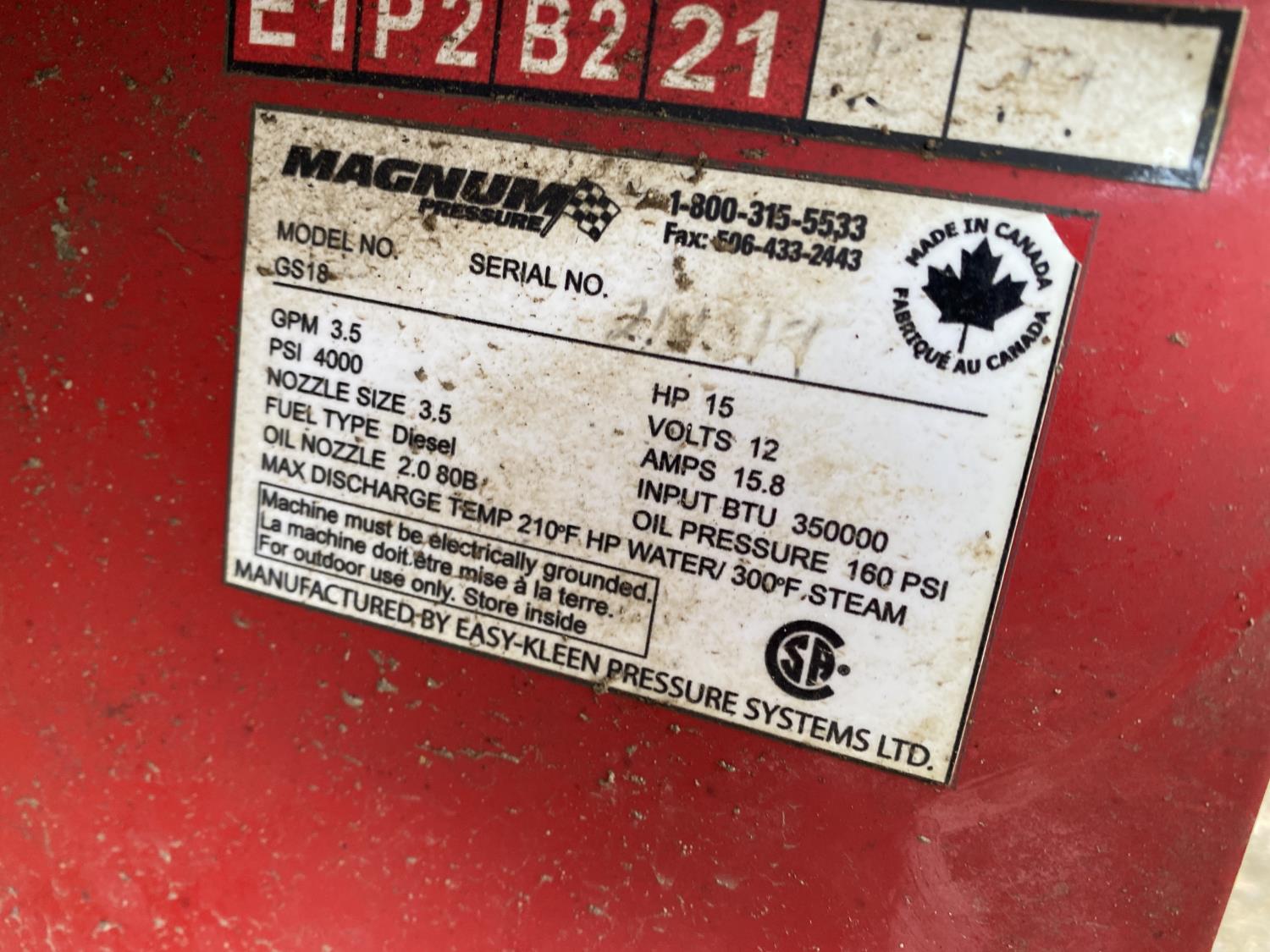 3.5 GPM, 4000 PSI, 15 HP engine