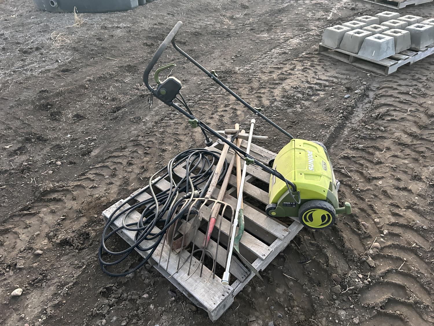 includes pitch forks, shovel, extension cord