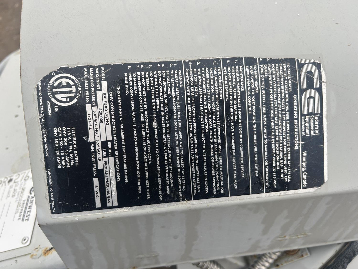 1466 Frost Fighter 420,000 BTU Heater