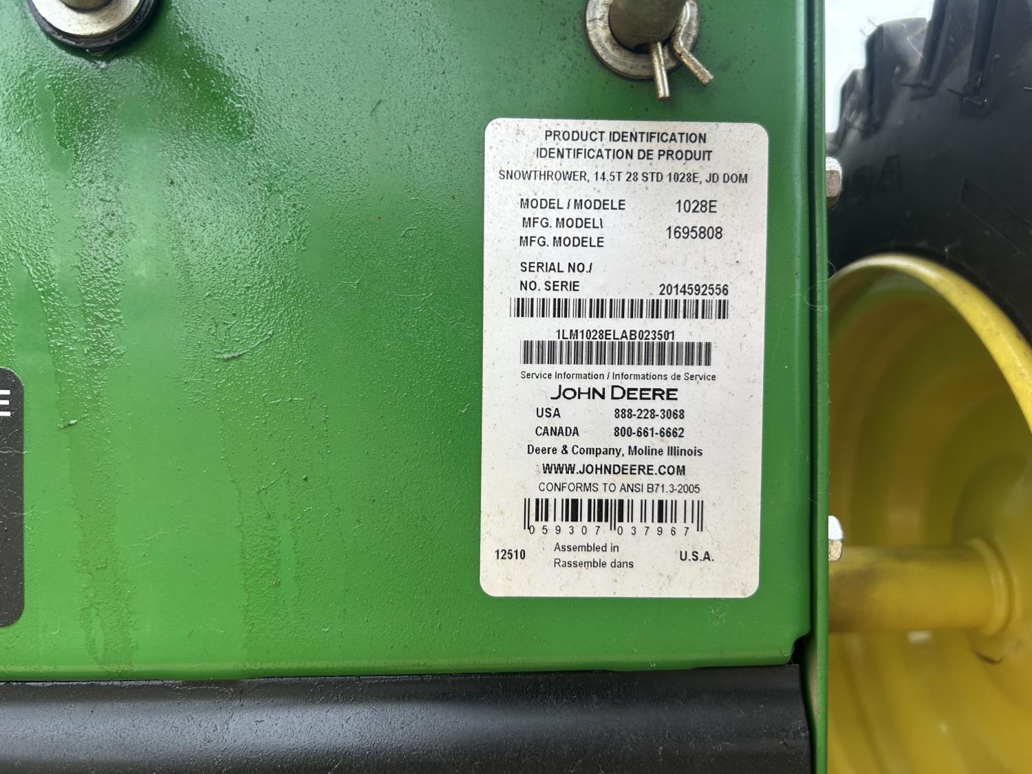 1614 John Deere 1028E 25 Inch Snow Blower