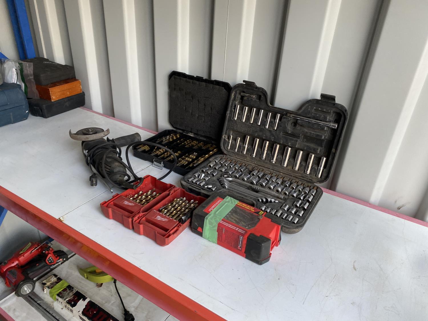 1264 Mastercraft Electric 4-1/2 Inch Angle Grinder w/ Socket Set & Drill Bits