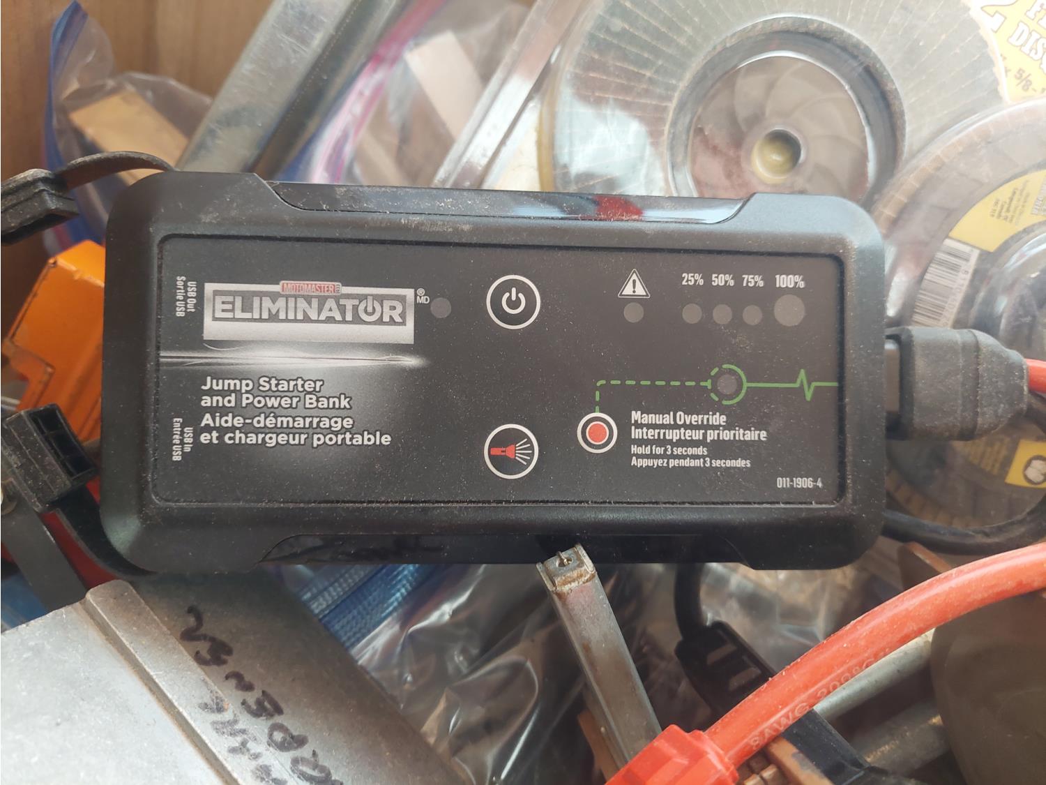 1128 Motomaster Eliminator 011 Jump Starter/Power Bank w/ Misc Shop Tools