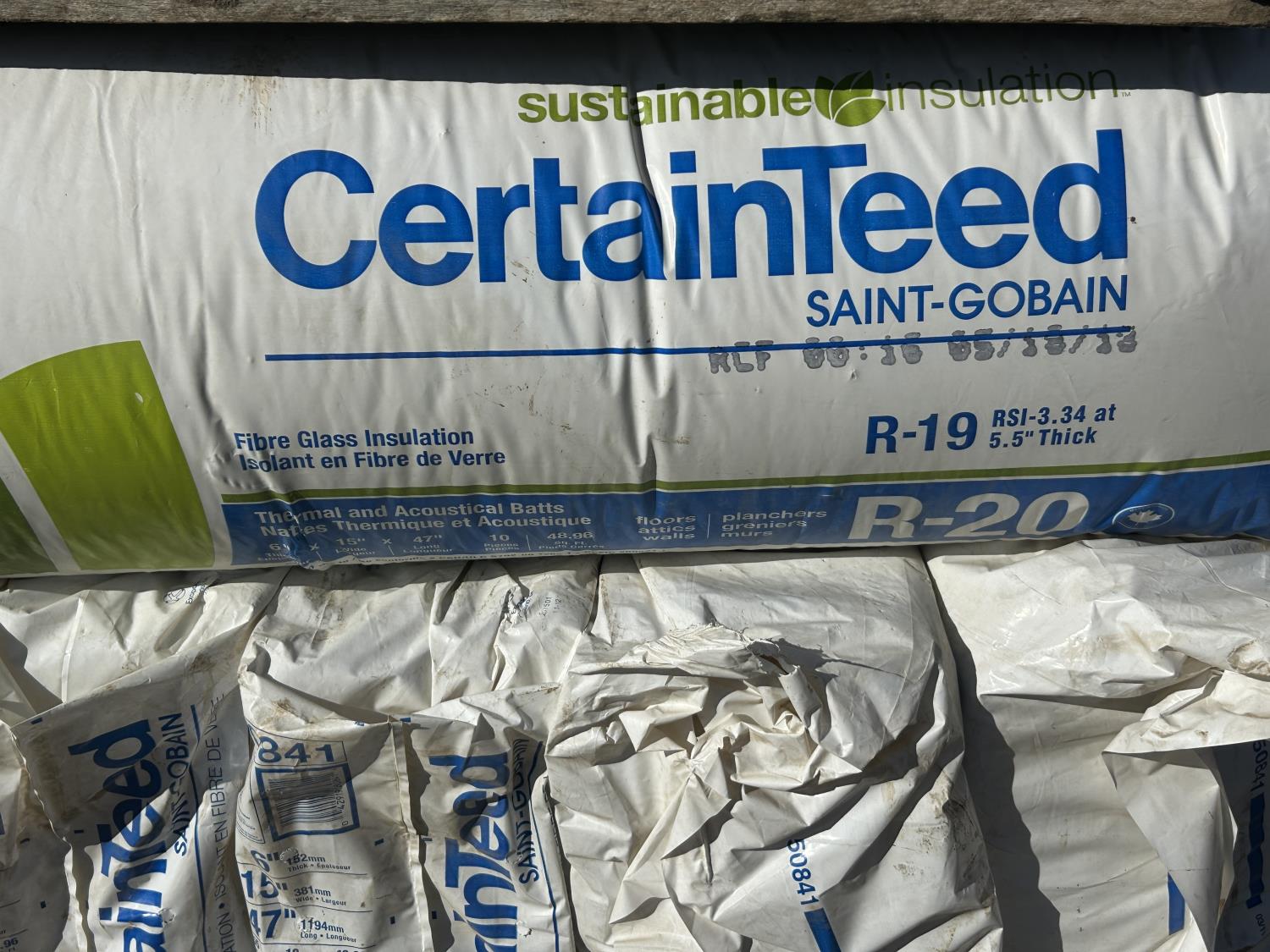 1070 Qty of (48) Bags of R-20 Fibreglass Insulation (Unused)
