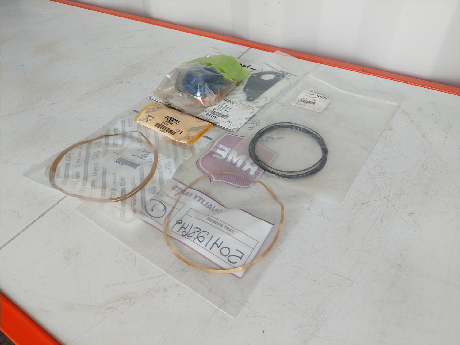 (1) seal kit part number 3302-27, (1) gasket part number SBA145996830, (5) shim part number 504128649, (1) O-ring part number 8603358, (1) O-ring part number 4899072, and (5) O-rings part number 2401-68, (6) washers part number 16889104, plastic plug part number 192013A4, plug part number 4895406, (1) screw part number 72181877, (1) screw part number 16679034, and hydraulic connector part number 84162977