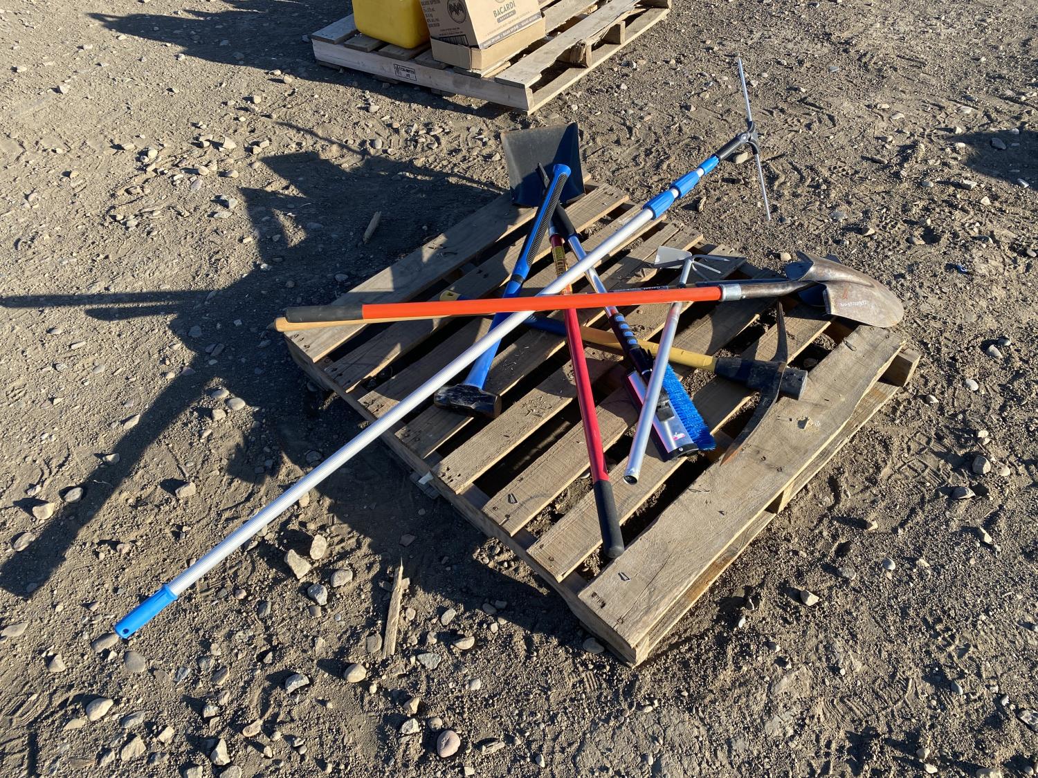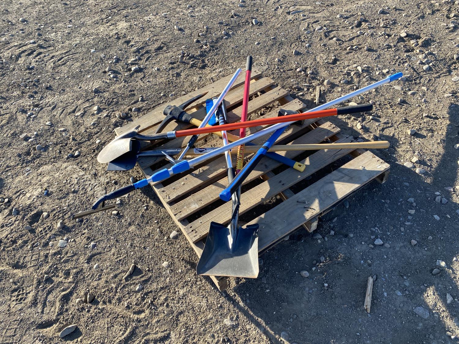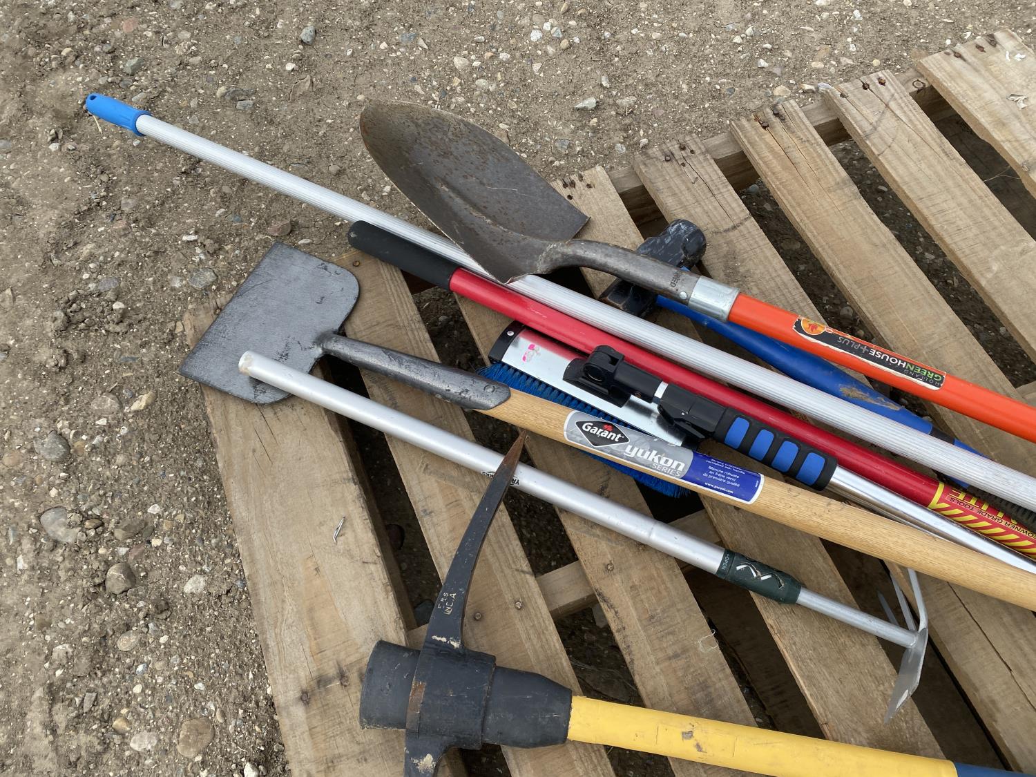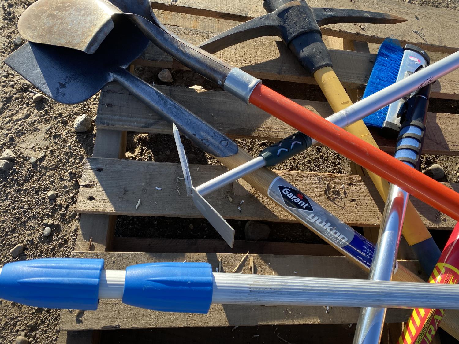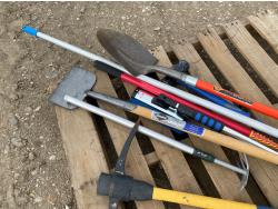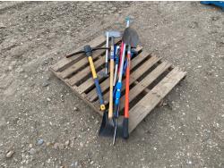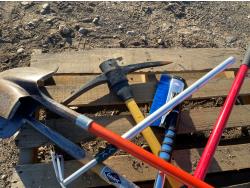 includes shovels, pickaxe, sledgehammer, squeegee
