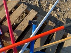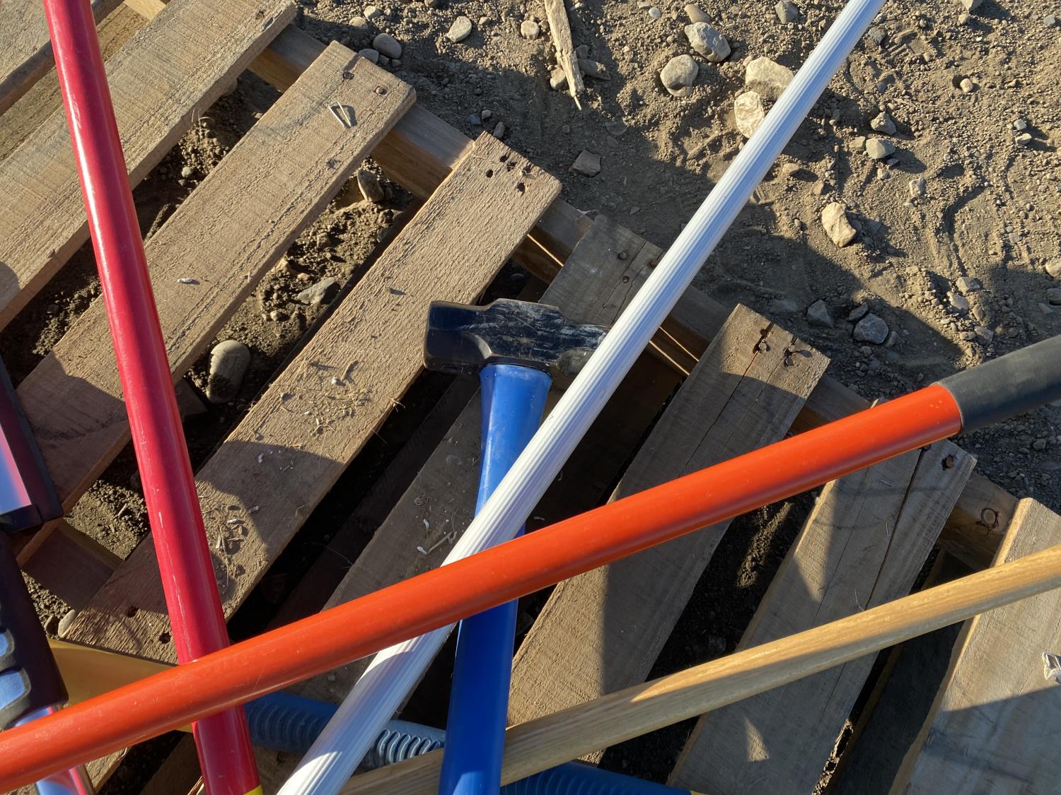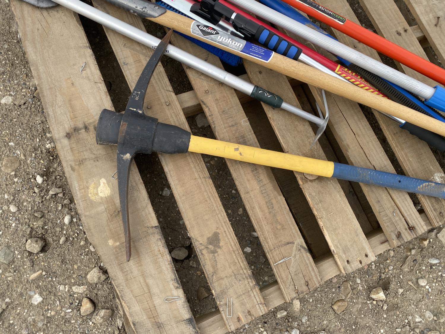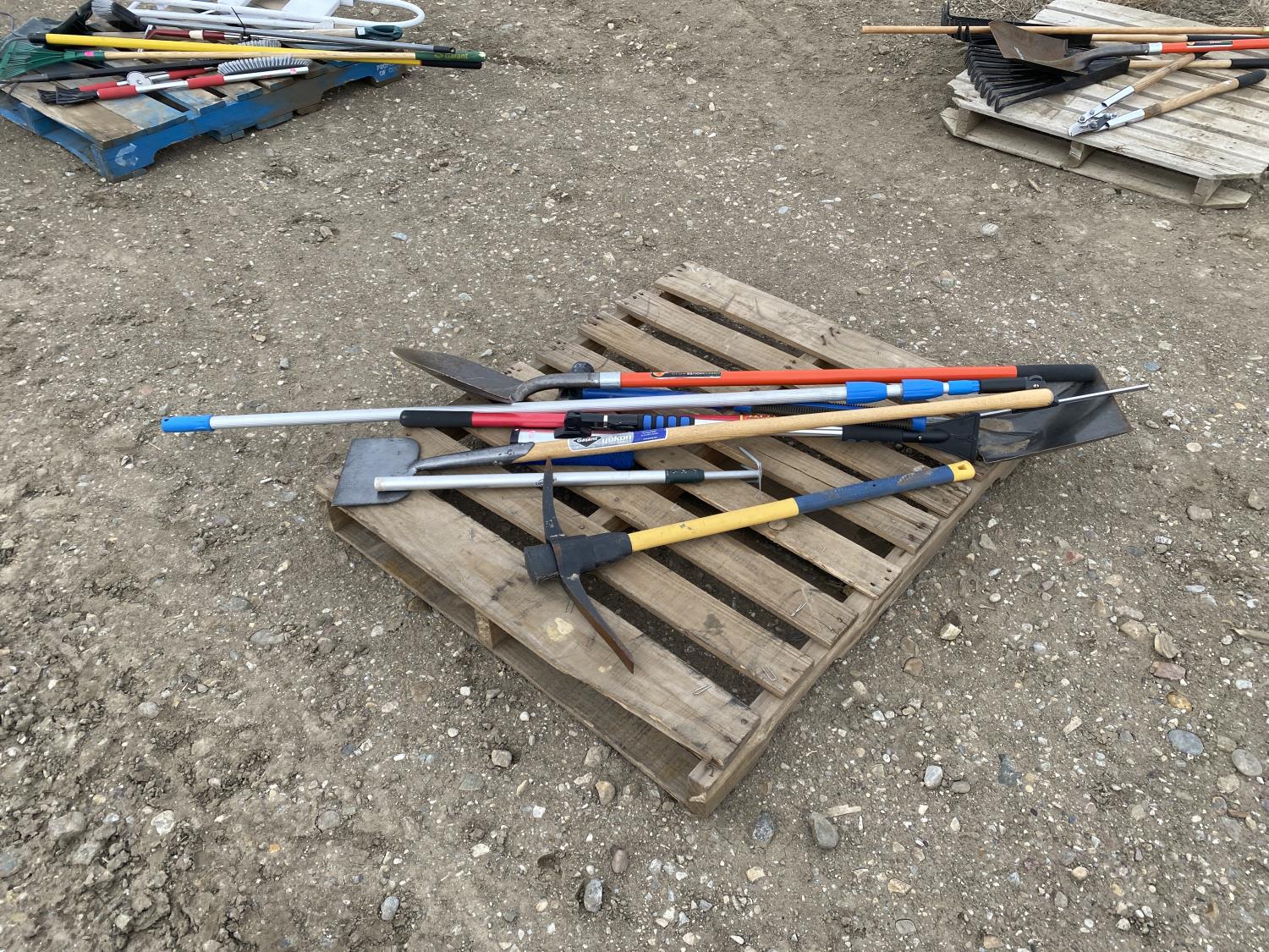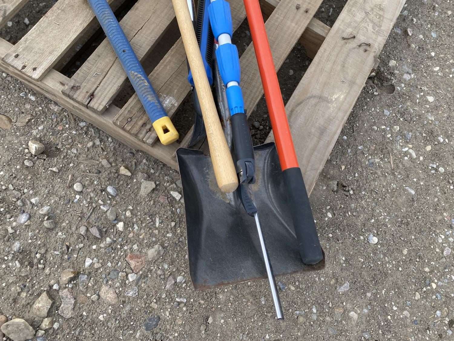 includes shovels, pickaxe, sledgehammer, squeegee