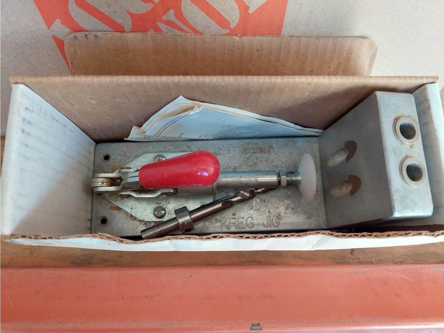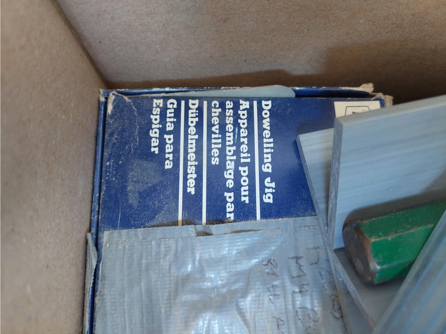 includes router template, pocket hole jig, drills bits, hand planer, and dowelling jig