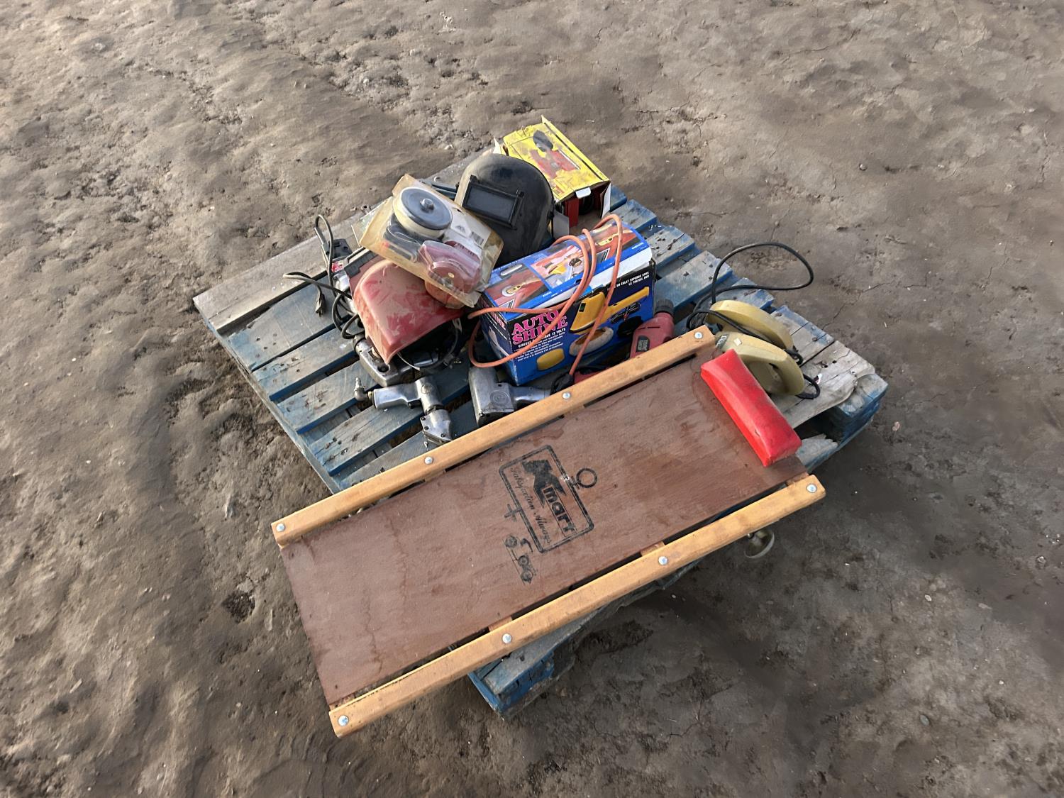 includes welding masks, creeper, palm sander, polisher