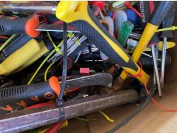 includes hammers, pry bar, pliers, screwdrivers