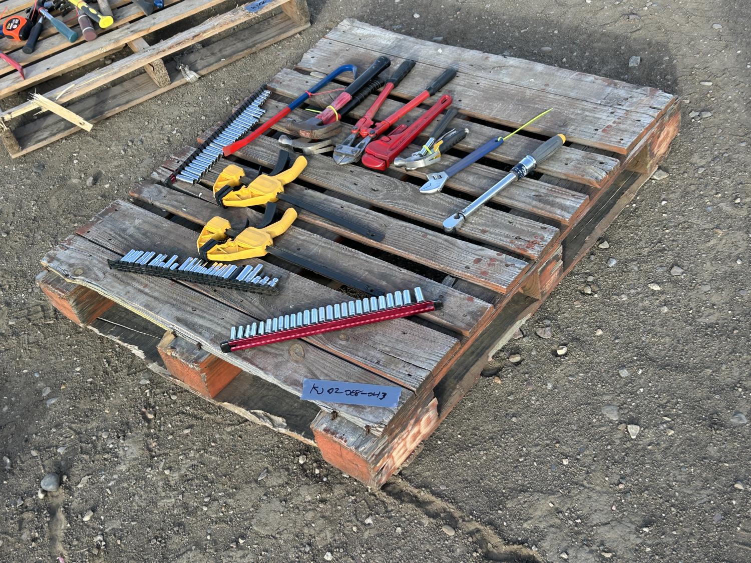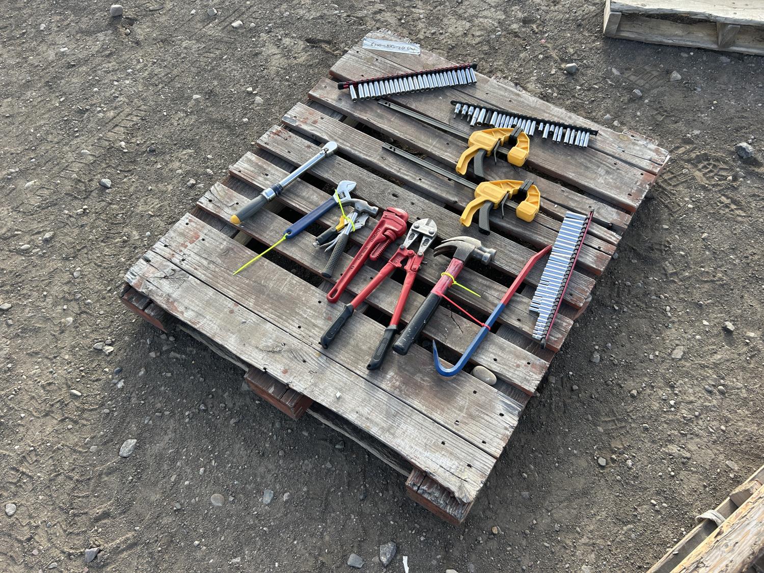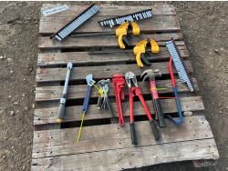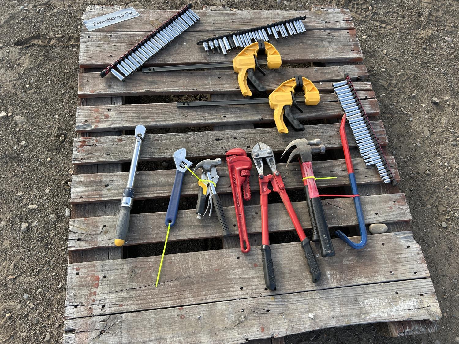includes torque wrench, bolt cutters, pipe wrench, hammers, pry bar, dewalt clamps & miscellaneous sockets