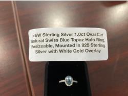 1051 Smartlife 1.0 Oval Cut Natural Swiss Blue Topaz Halo Ring (Unused)