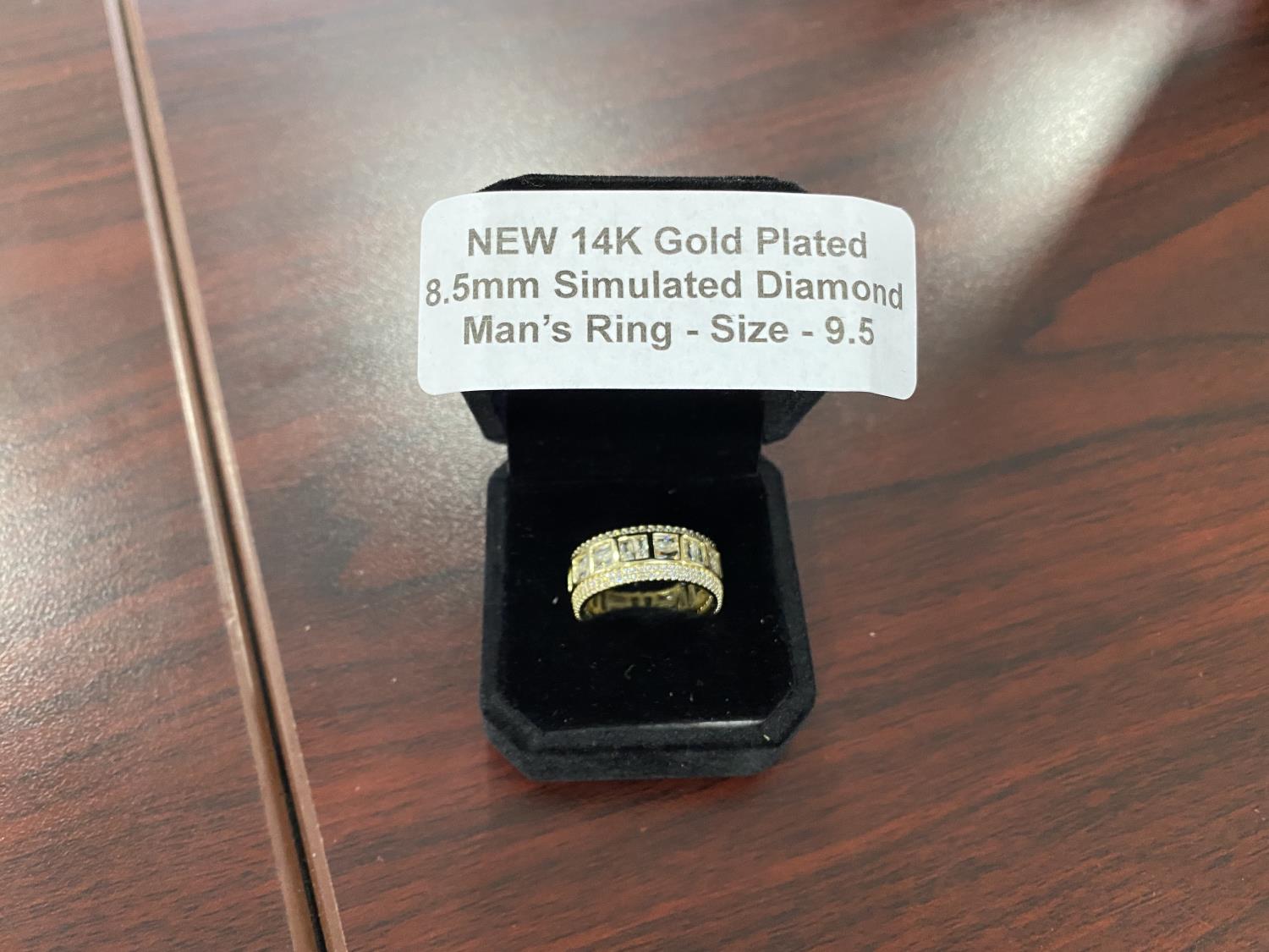 1063 Smartlife 14K Gold Plated 8.5 mm Simulated Diamond Mans Ring (Unused)