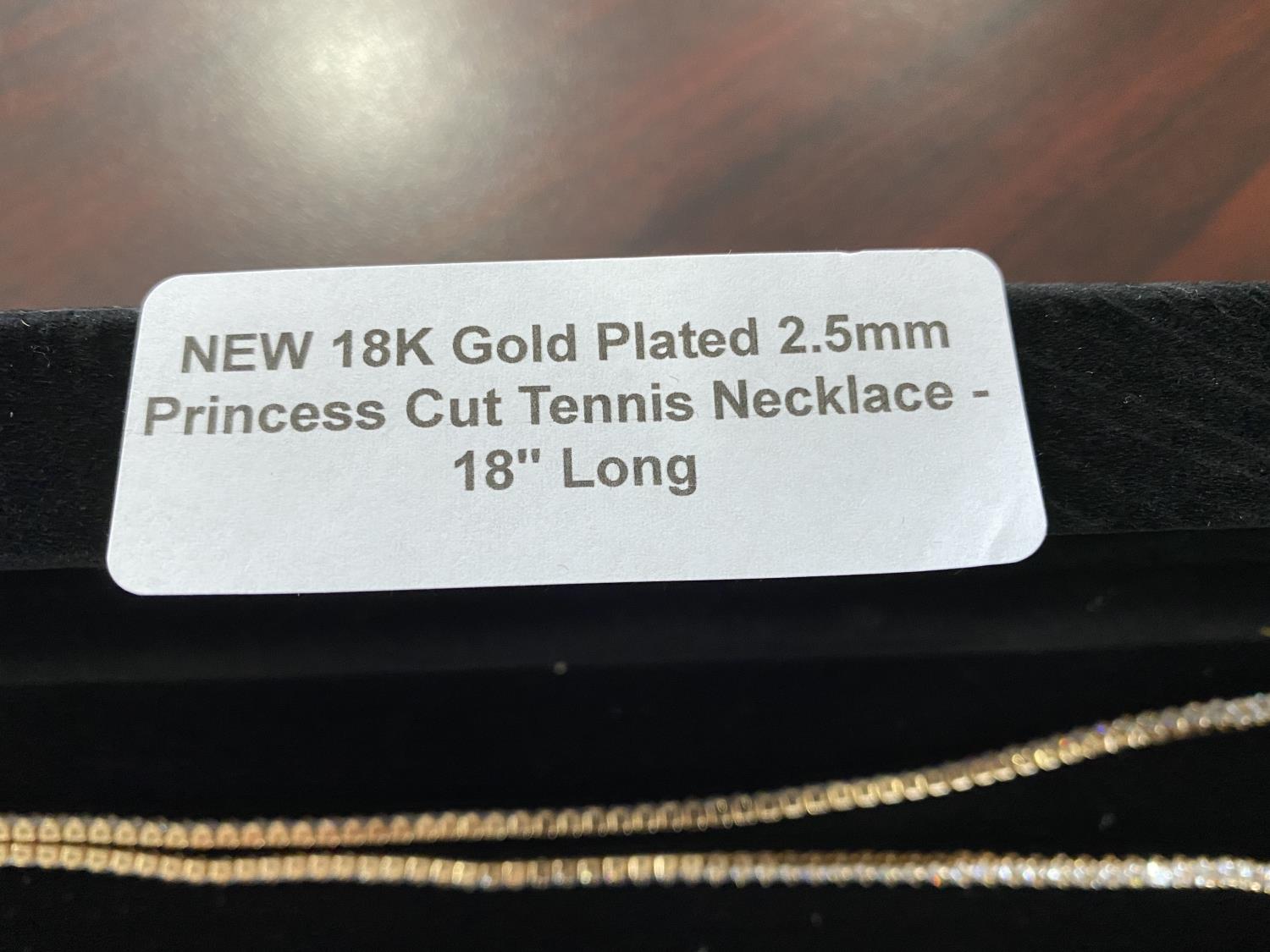 1046 Smartlife 18K Gold Plated 2.5 mm Princess Cut Tennis Necklace (Unused)