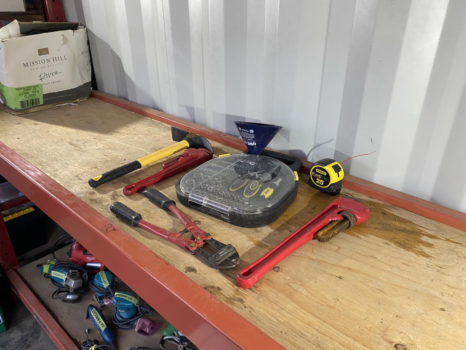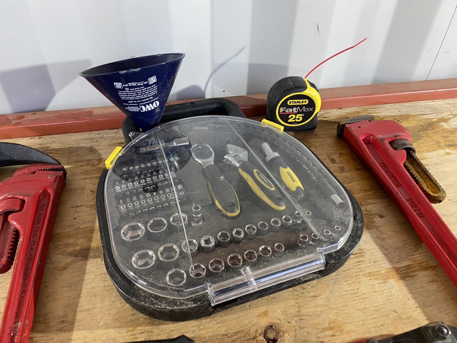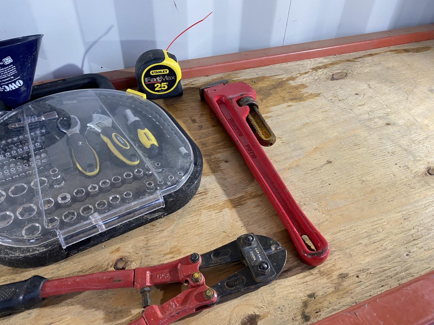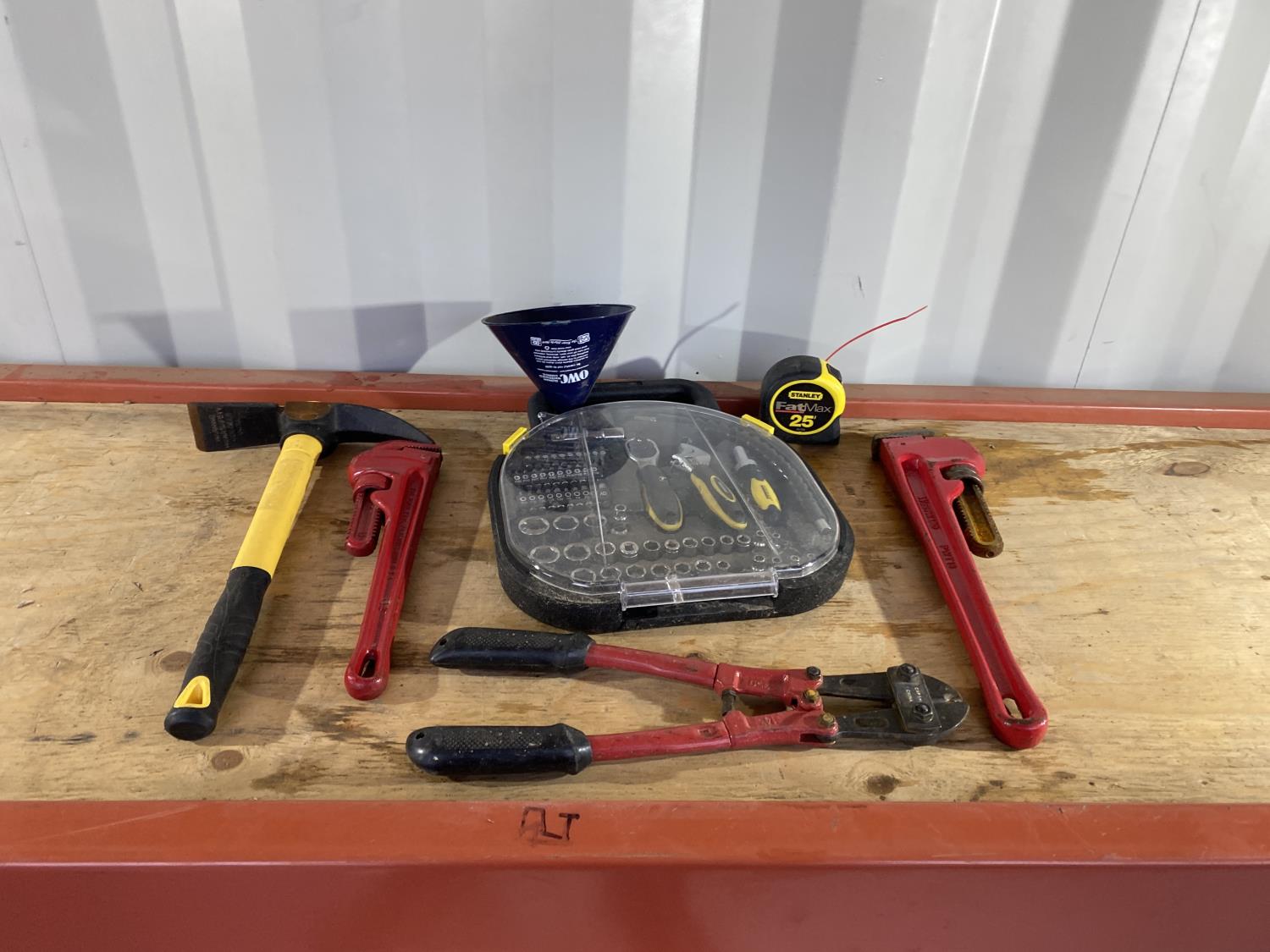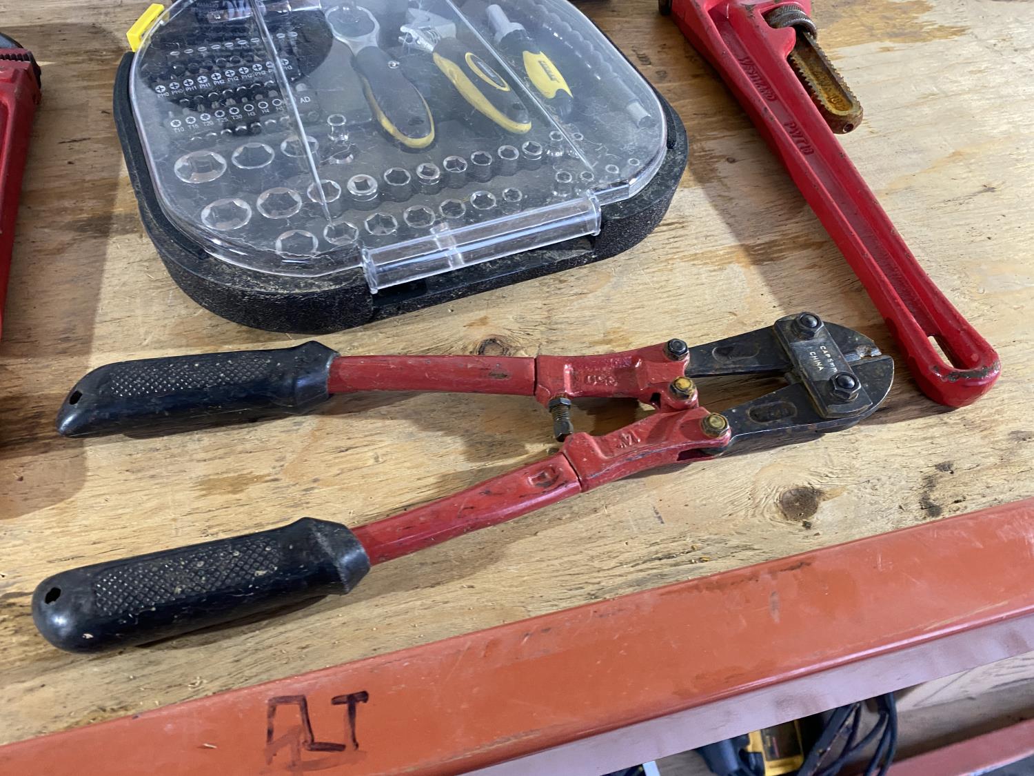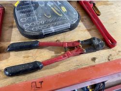 includes pickaxe, pipe wrenches, bolt cutters