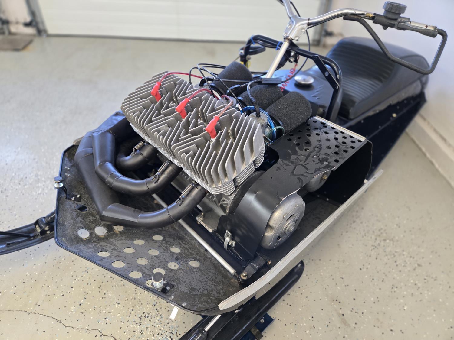 Polaris engine, big cylinder 650 / wide angle heads, possibly one of 20 PDC’s ( profession drivers circuit ) built by the Polaris racing team prior to the 1974’ season , bull session back in 11/22/2013 on Vintage sleds regarding its history , always stored in a climate-controlled garage, purchased several years ago off Vintage sleds in the state of Michigan