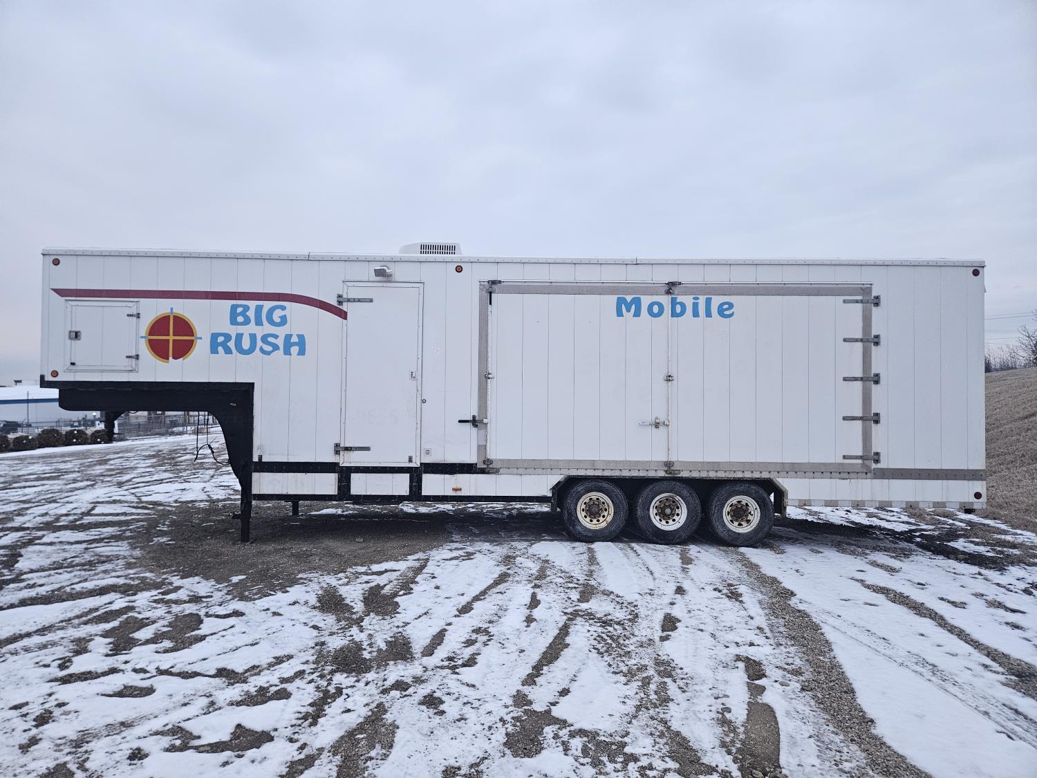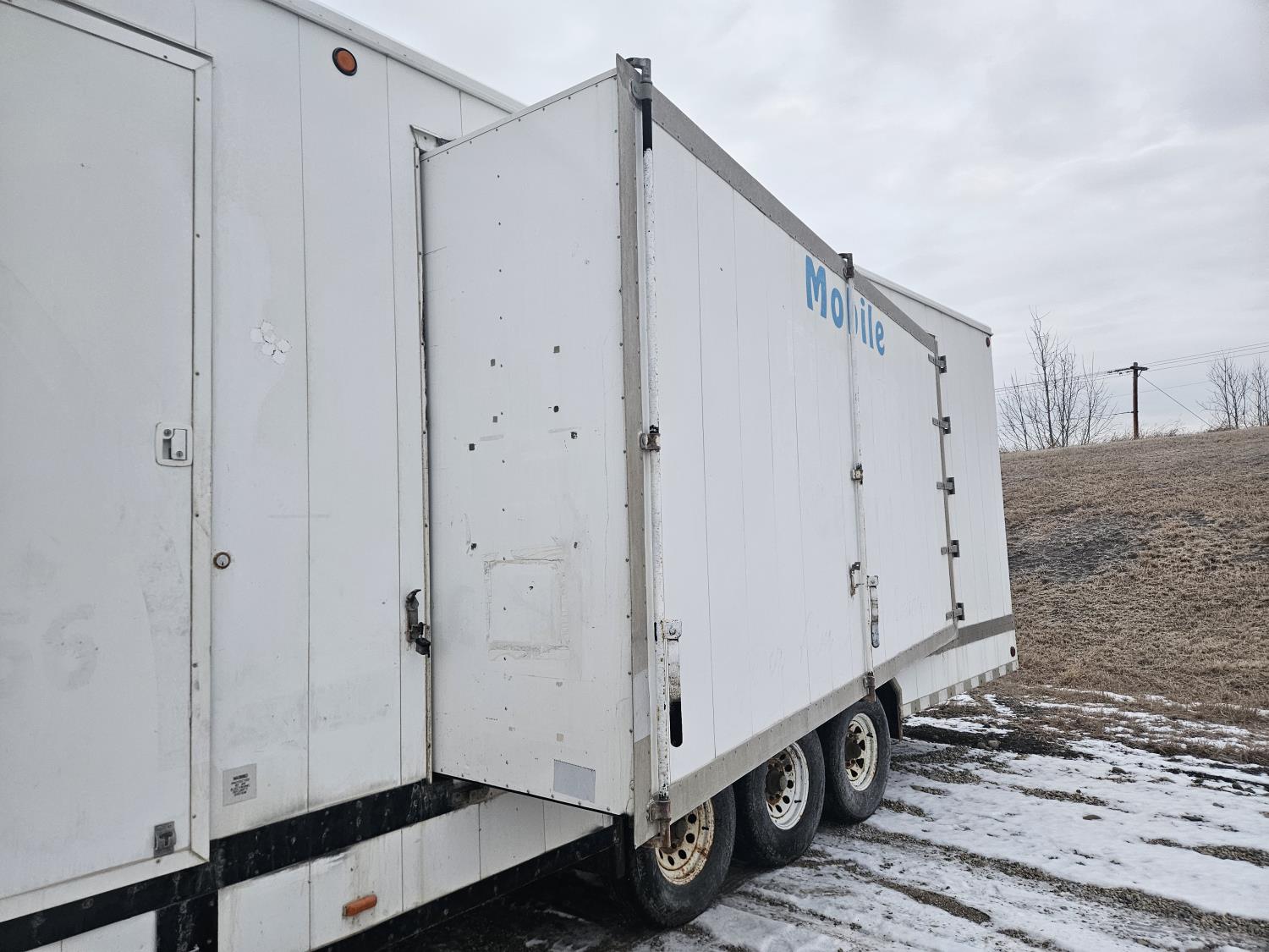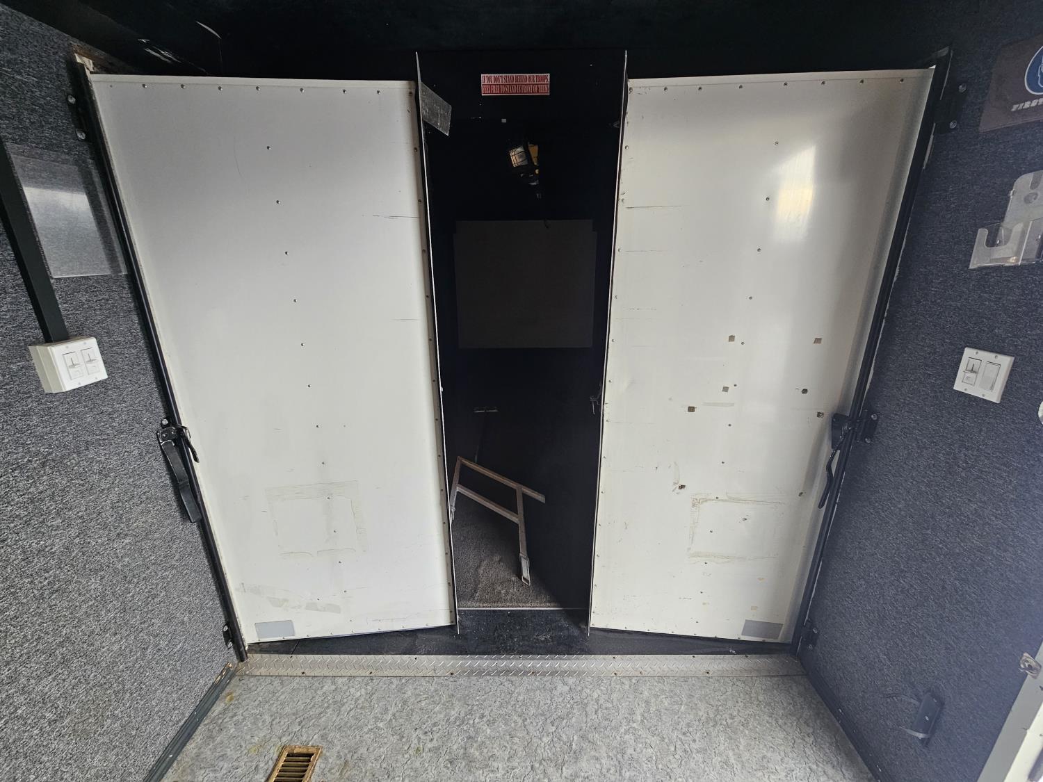 92 inch interior width, 95 inch interior height, side door, electric brakes, torsion suspension, insulated, furnace, was originally set up/built for virtual shooting range sides slide out, g/n storage area, 7000 lb axles, 235/85R16 tires