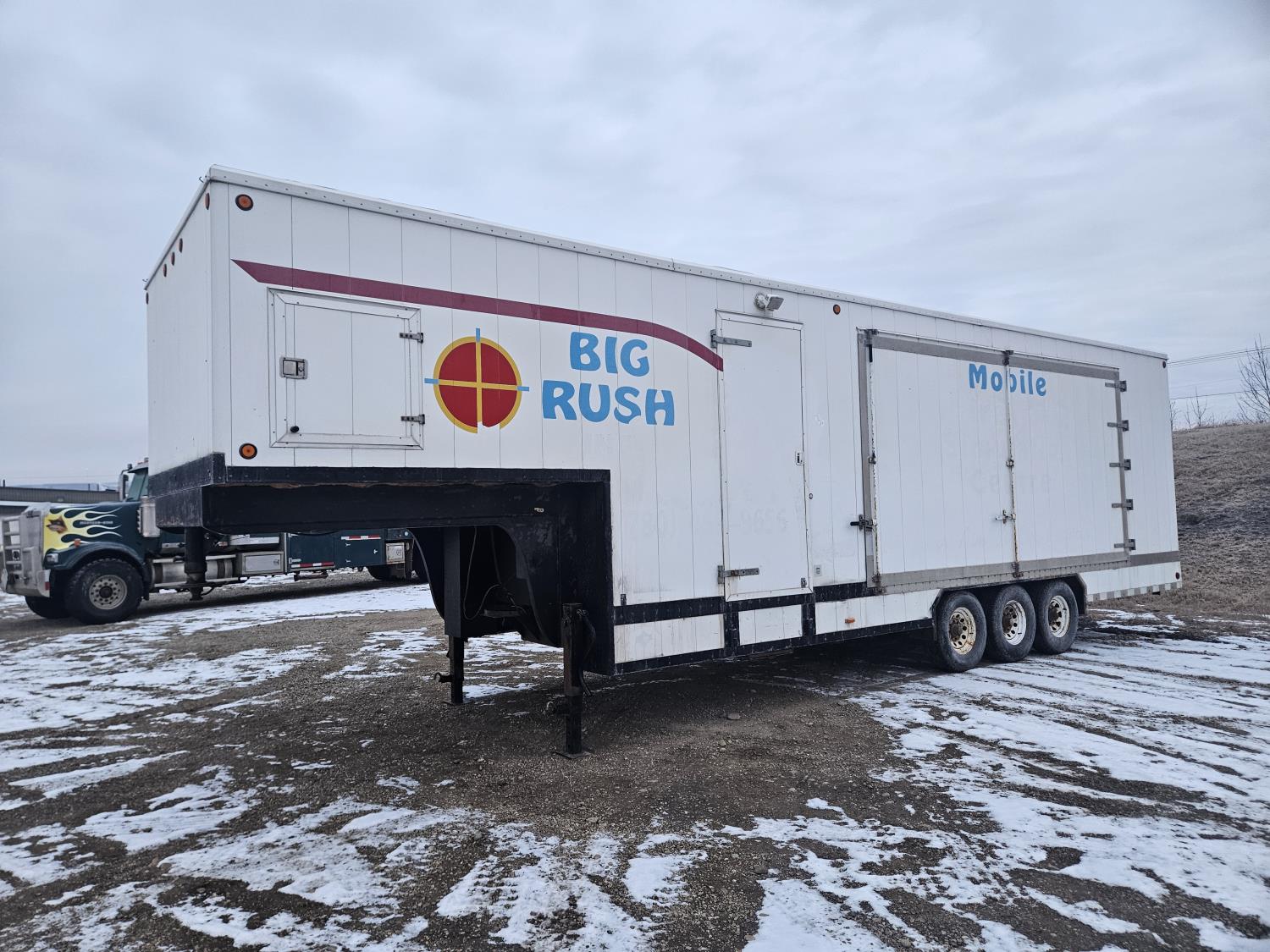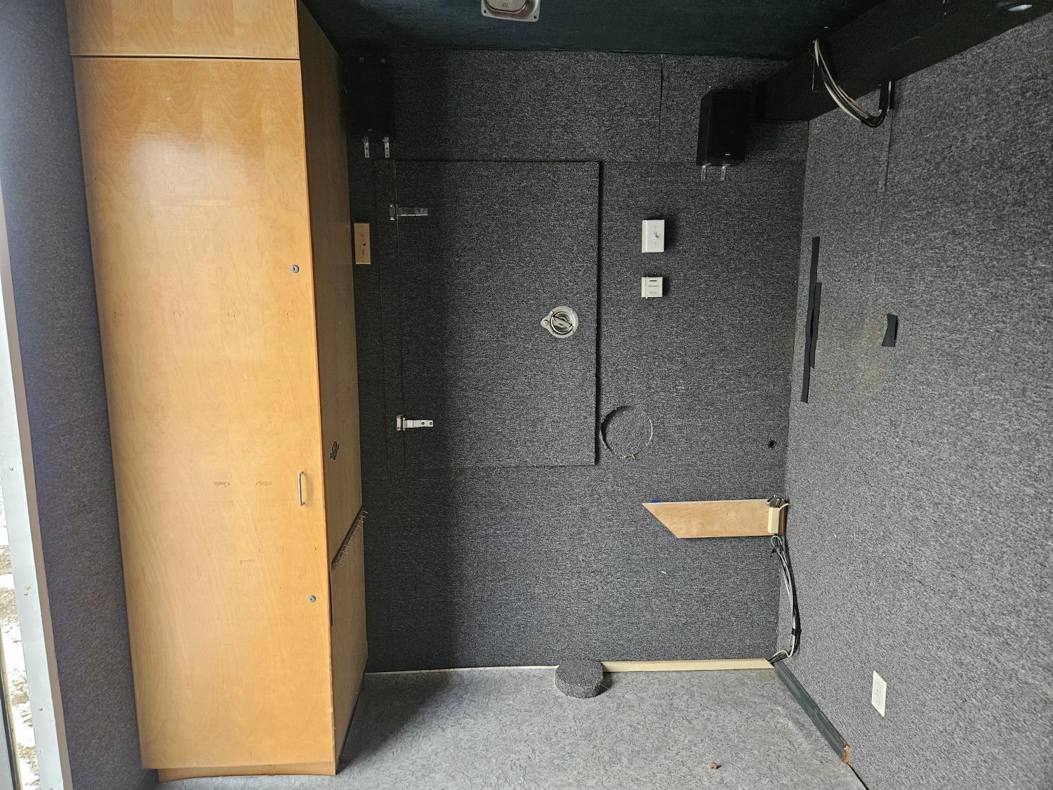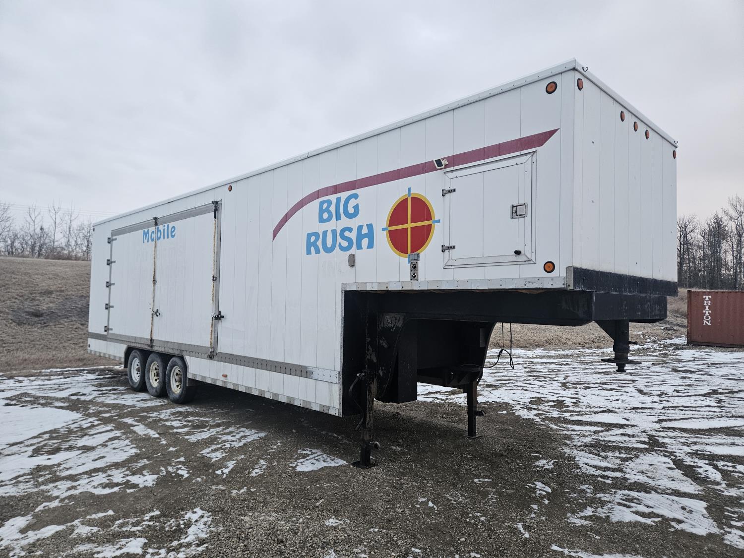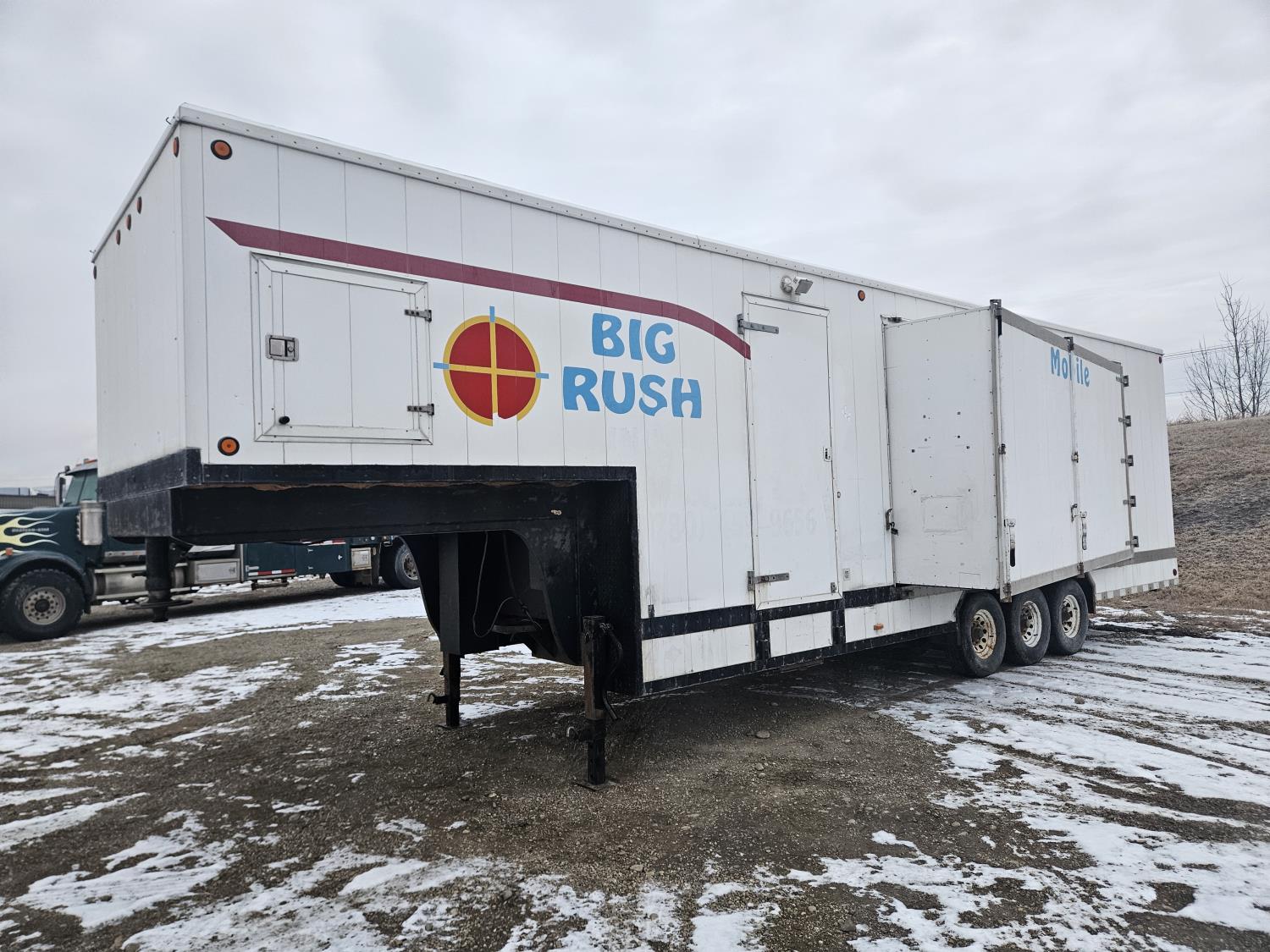 92 inch interior width, 95 inch interior height, side door, electric brakes, torsion suspension, insulated, furnace, was originally set up/built for virtual shooting range sides slide out, g/n storage area, 7000 lb axles, 235/85R16 tires