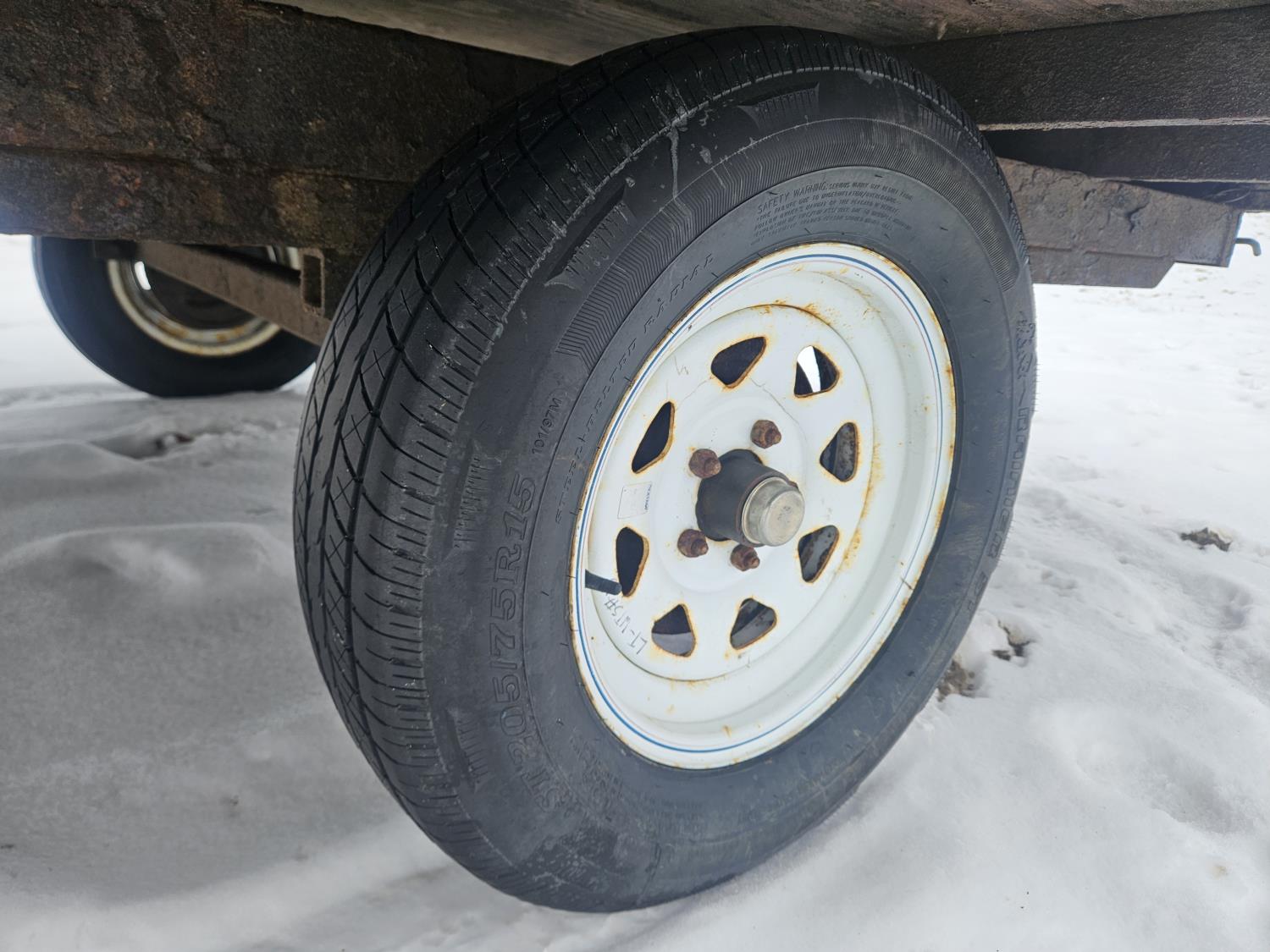 8 ft wide, spring suspension, electric brakes, factory extended hitch, fits up to 165 inch sleds, 205/75R15 tires