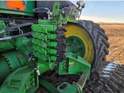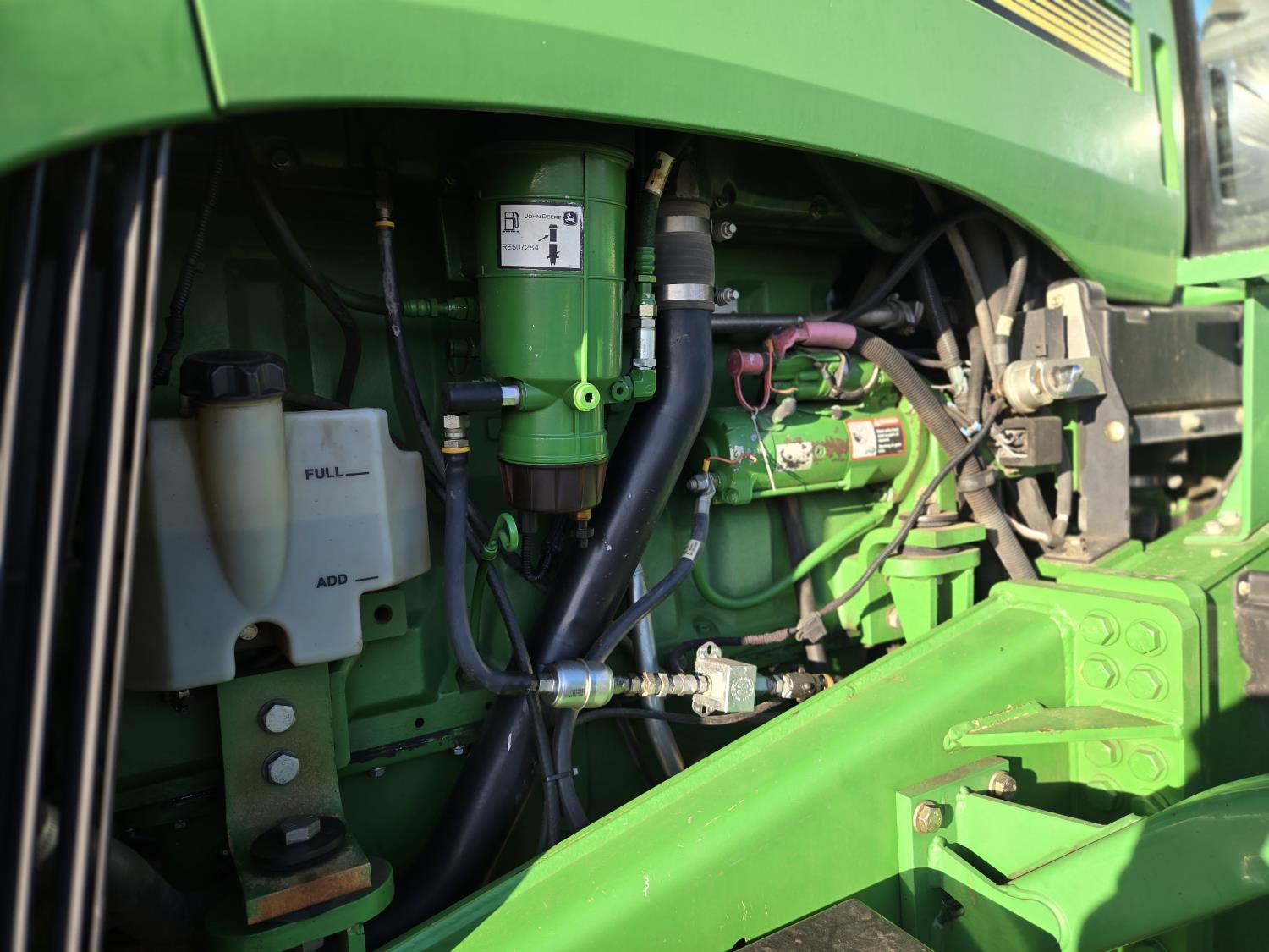 John Deere 12.5 L 6 cylinder 450 HP, engine, 18 speed power shift transmission, cab, A/C, radio, buddy seat, 5 rear hydraulic outlets, 1 rear auxilary hydraulic outlets, 36 inch tracks