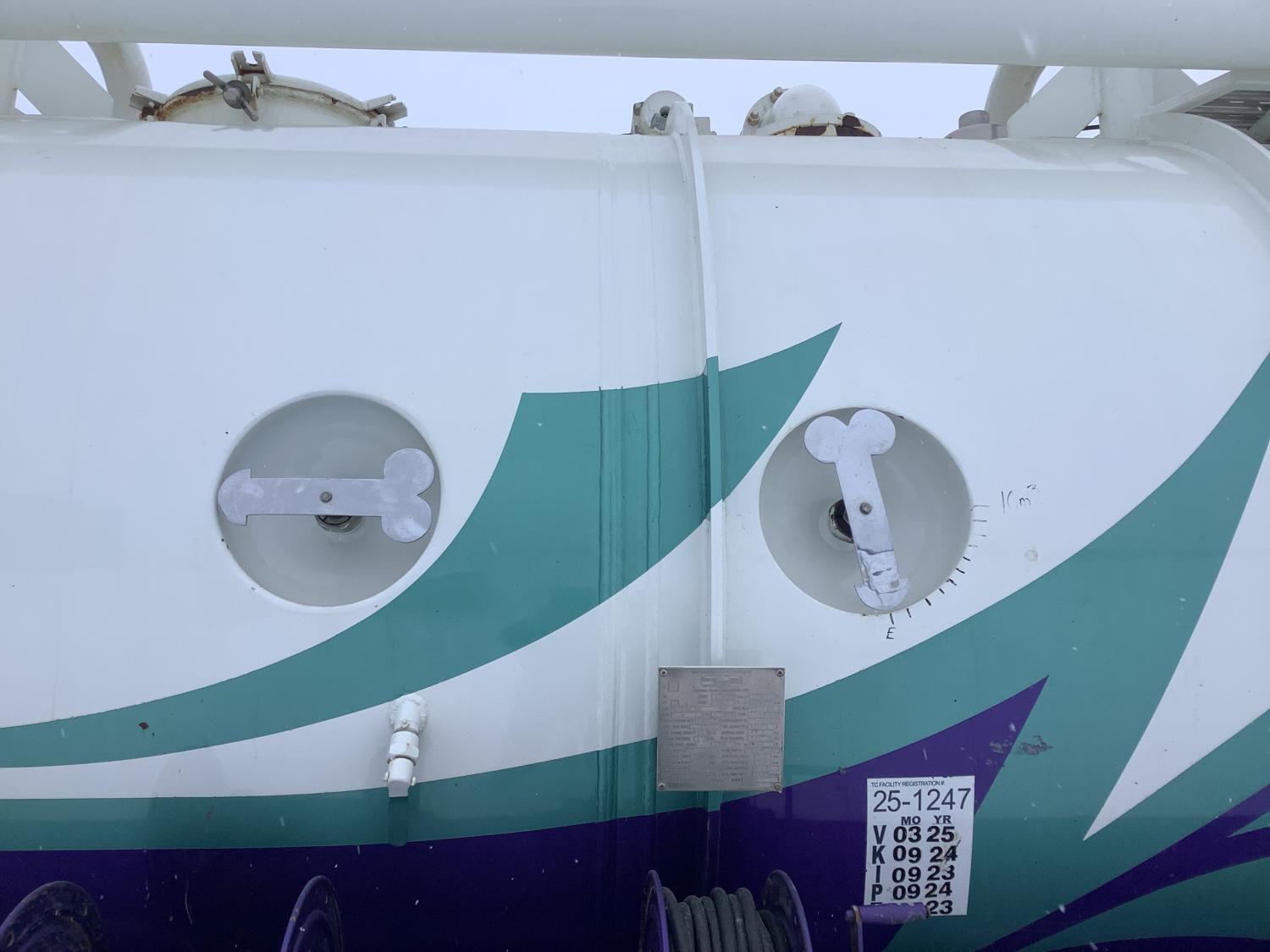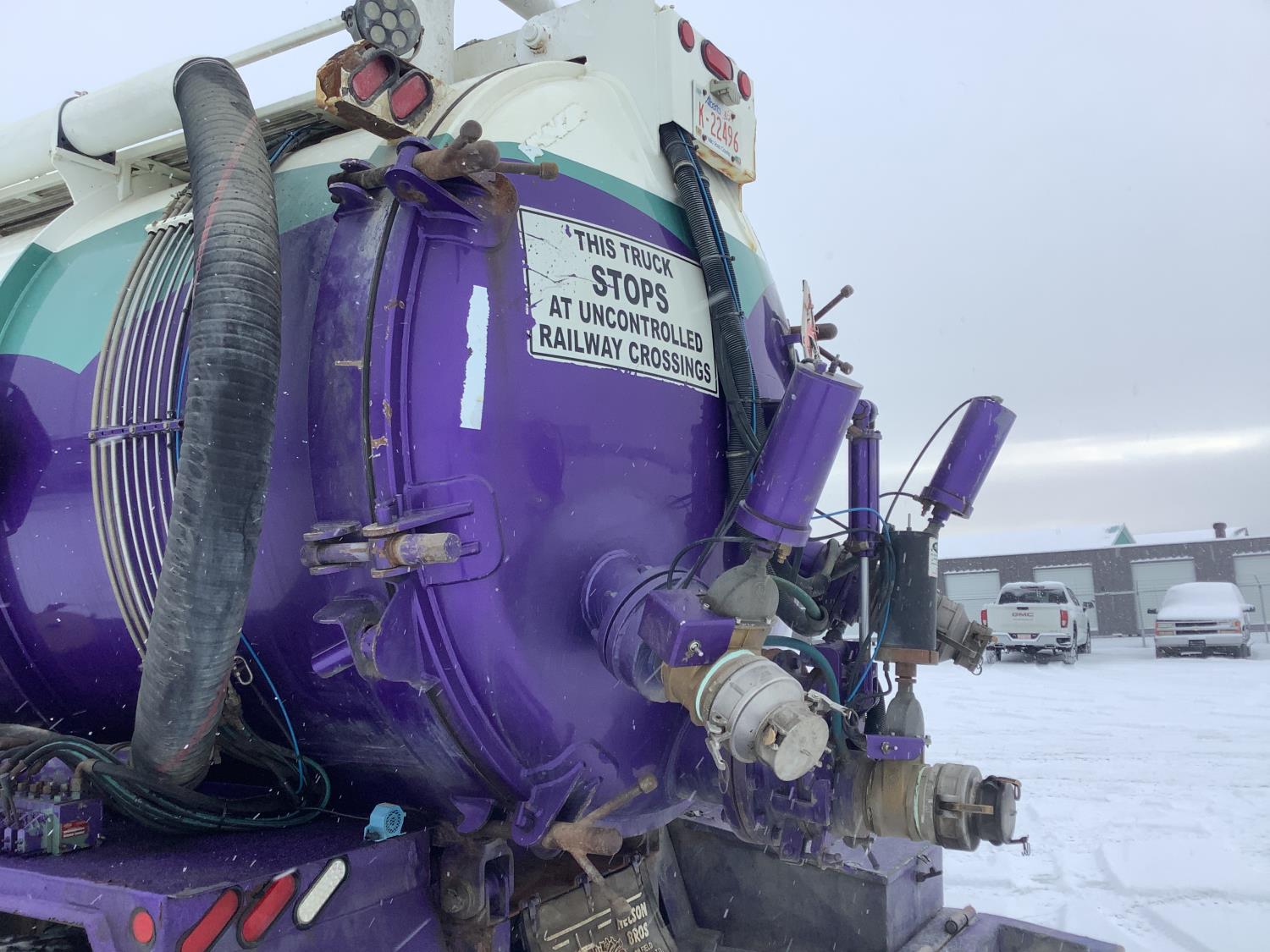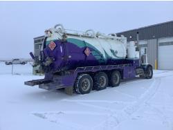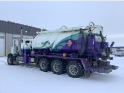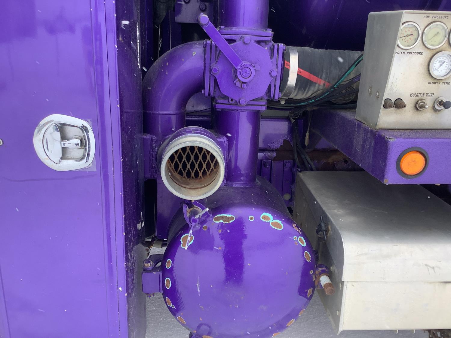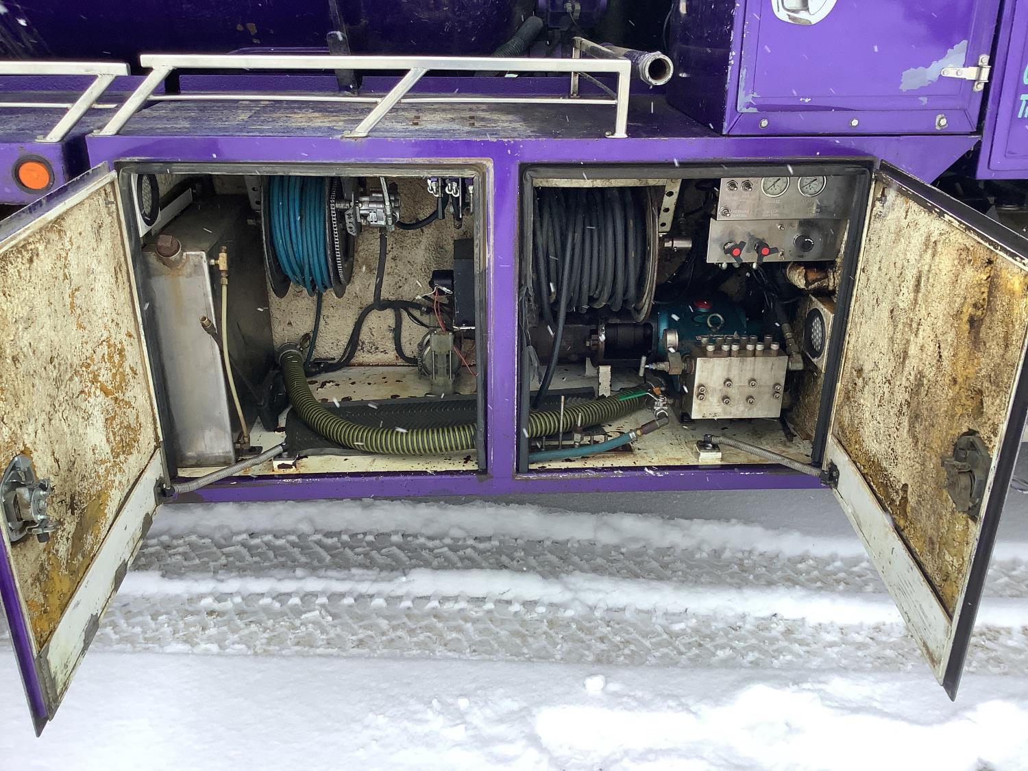 Cat 3406 single turbo MBN diesel engine, 8000 hours since total engine rebuild, engine brake, 18 speed manual transmission, 20,000 lb front axle, dual steering boxes, 57,900 lb rears, full lockers, new way air suspension, TC407 split tank, 4.1 cube front compartment for fresh water, 11.6 cube rear compartment for waste material, hydraulic front hoist, hydraulic rear lift gate, 820 Hybon pump, Cat 3560 wash pump, 500,000 BTU boiler, wash hose on reel, heated compartments, chain hangers, rear pintle hitch, 445/65R22.5 front tires, 11R24.5 rear tires