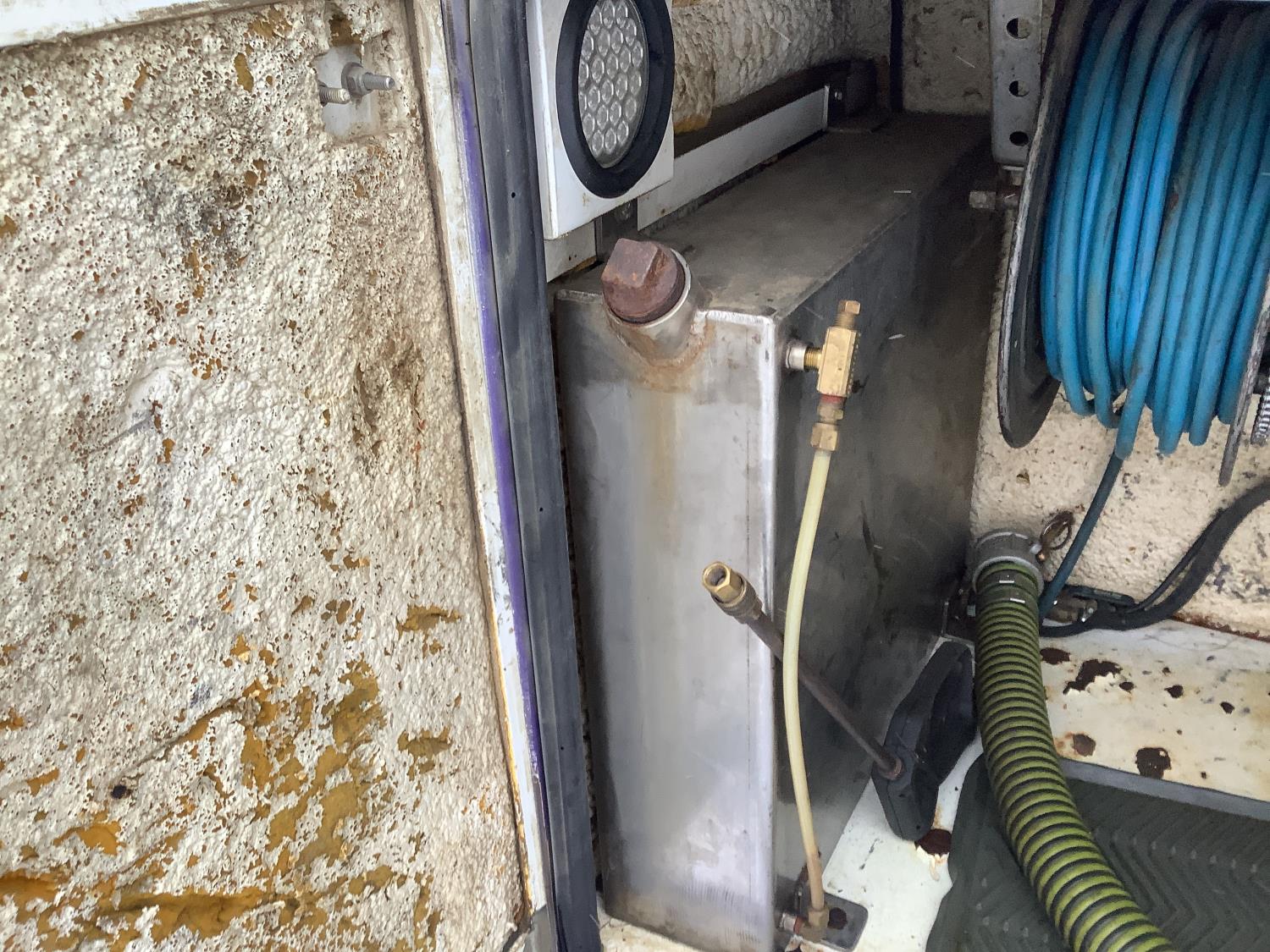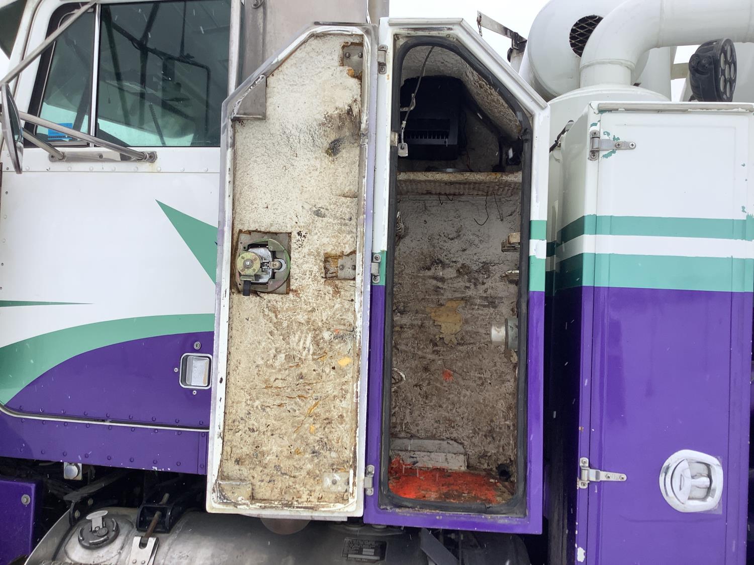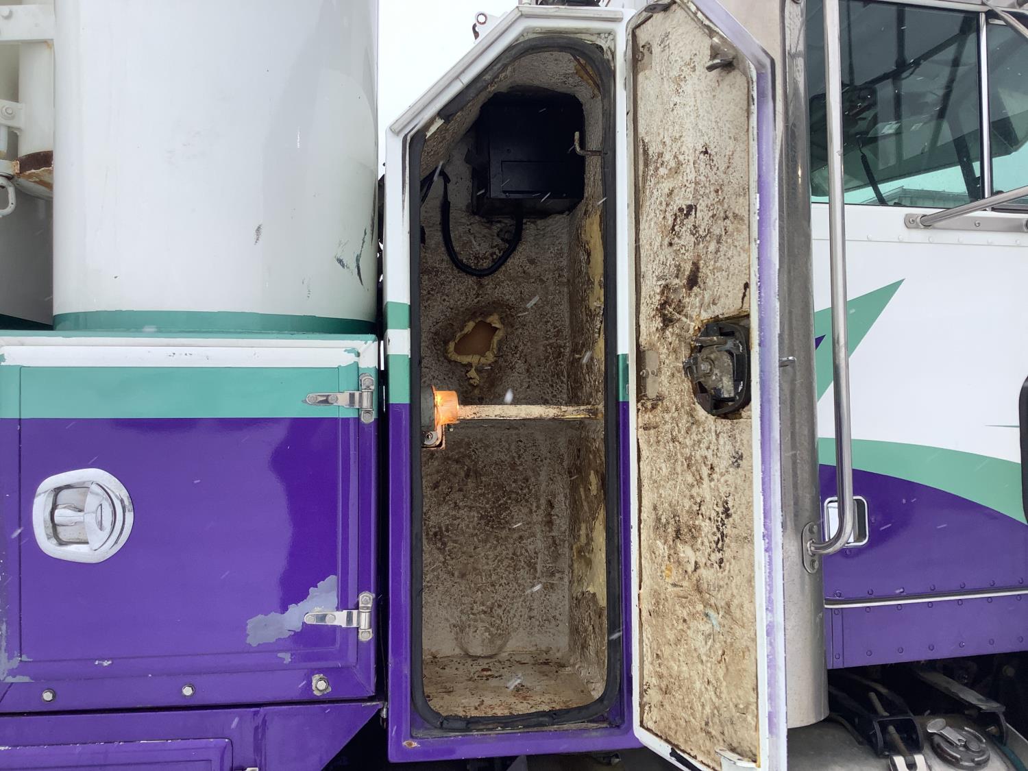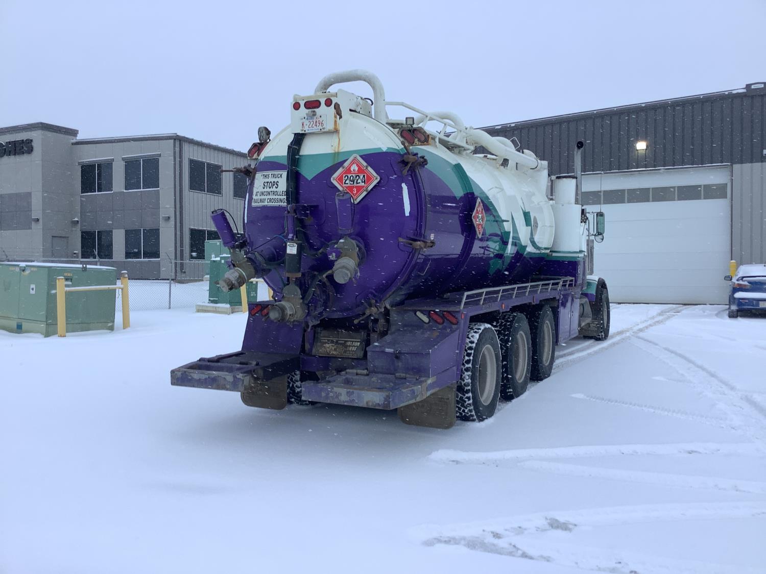 Cat 3406 single turbo MBN diesel engine, 8000 hours since total engine rebuild, engine brake, 18 speed manual transmission, 20,000 lb front axle, dual steering boxes, 57,900 lb rears, full lockers, new way air suspension, TC407 split tank, 4.1 cube front compartment for fresh water, 11.6 cube rear compartment for waste material, hydraulic front hoist, hydraulic rear lift gate, 820 Hybon pump, Cat 3560 wash pump, 500,000 BTU boiler, wash hose on reel, heated compartments, chain hangers, rear pintle hitch, 445/65R22.5 front tires, 11R24.5 rear tires