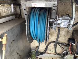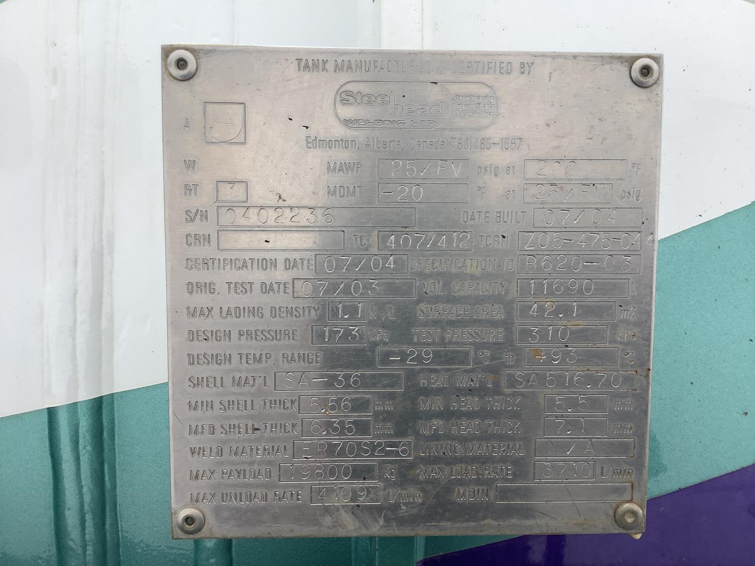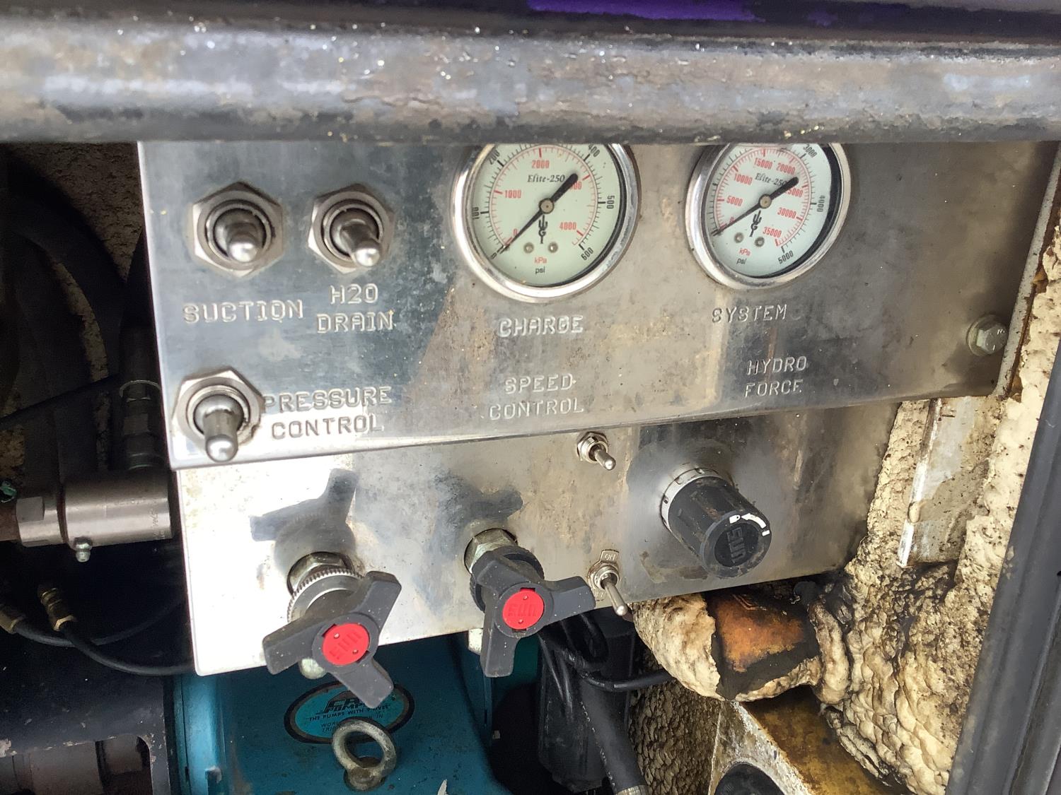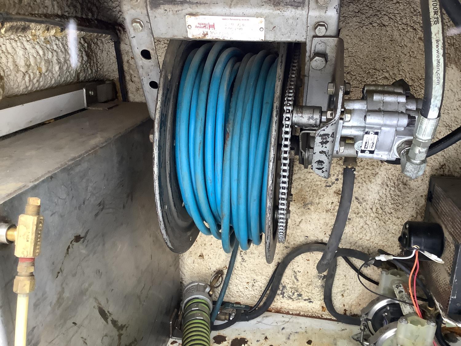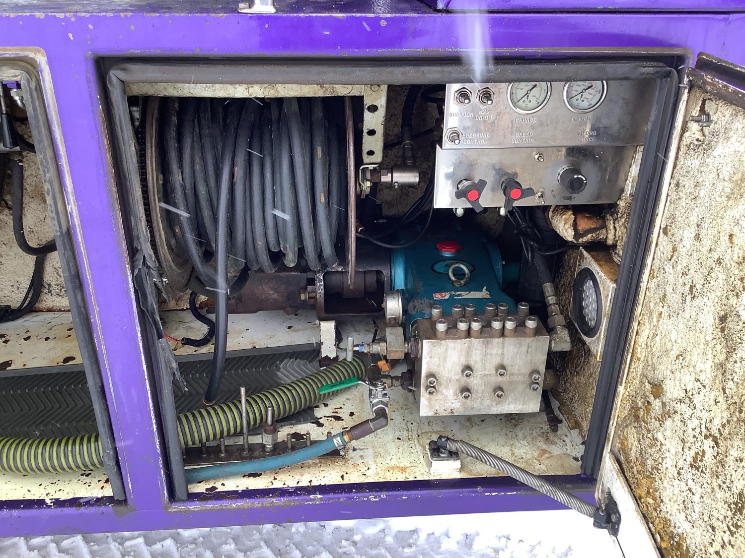 Cat 3406 single turbo MBN diesel engine, 8000 hours since total engine rebuild, engine brake, 18 speed manual transmission, 20,000 lb front axle, dual steering boxes, 57,900 lb rears, full lockers, new way air suspension, TC407 split tank, 4.1 cube front compartment for fresh water, 11.6 cube rear compartment for waste material, hydraulic front hoist, hydraulic rear lift gate, 820 Hybon pump, Cat 3560 wash pump, 500,000 BTU boiler, wash hose on reel, heated compartments, chain hangers, rear pintle hitch, 445/65R22.5 front tires, 11R24.5 rear tires