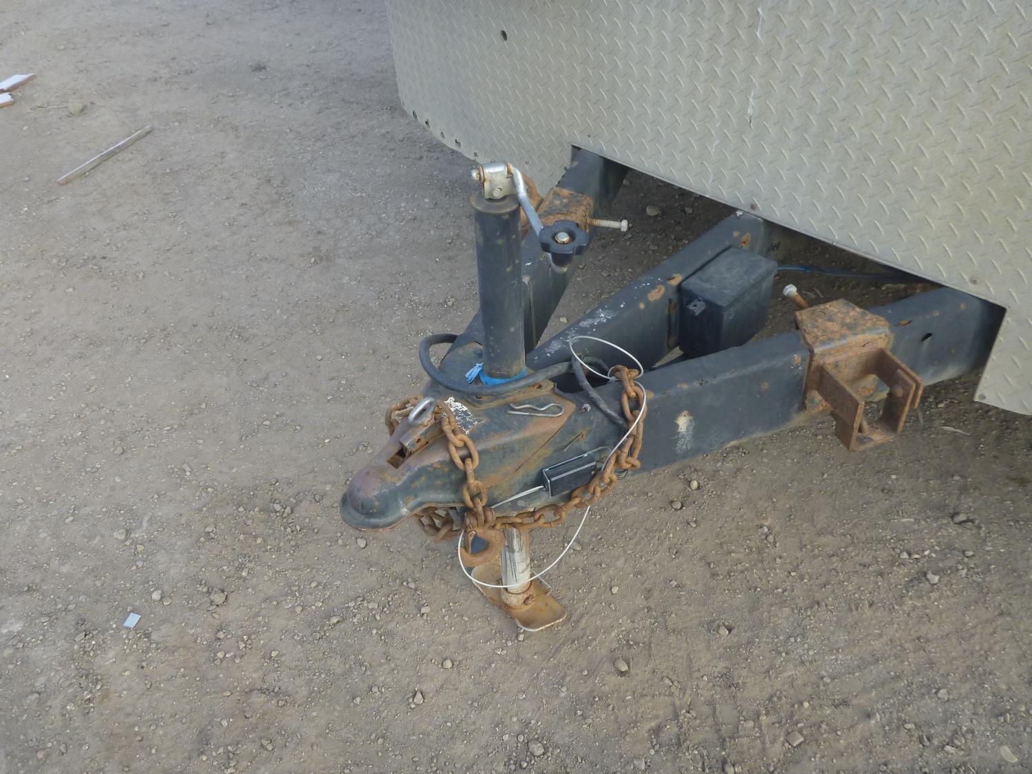 ball hitch, side door, fold down door, electric brakes, torsion suspension, 2-5/16 ball, back door is damaged, power, a/c unit, shelving, ST235/75R15 tires