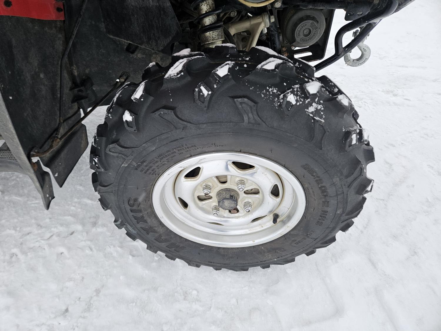 650 cc fuel injected engine, manual transmission, electric shift, reverse, hitch, front and rear racks, buddy seat, front winch, windshield, cargo box, gun rack, 25X8.00-12 front tires, 25X10.00-12 rear tires