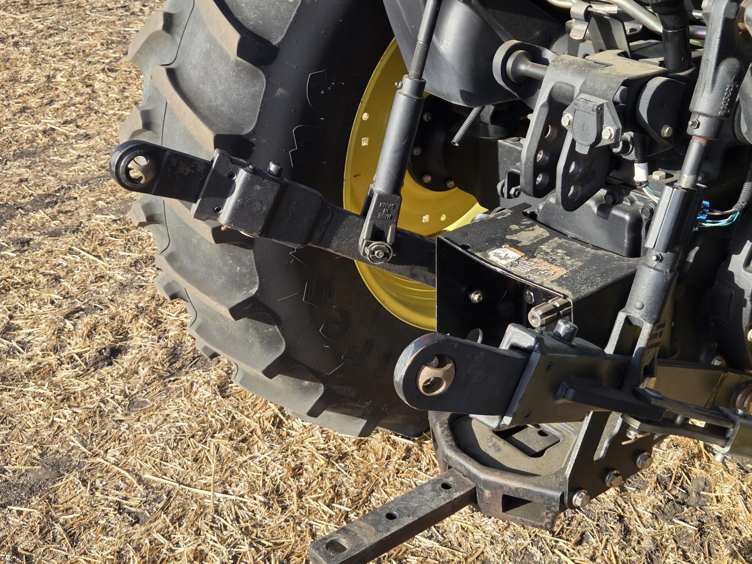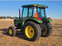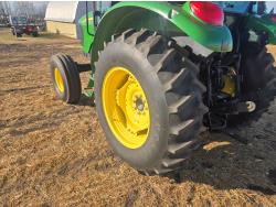 John Deere 4.5 L 4 cylinder 81 HP, diesel engine, 65 PTO HP, 9 speed partial synchro transmission, cab, A/C, radio, 540 PTO, 3 point hitch, 2 rear hydraulic outlets, 11.00-16 front tires, 16.9-30 rear tires