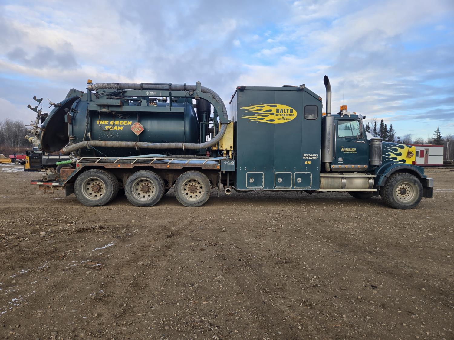 Mercedes Benz 460 HP diesel engine, 18 speed transmission, air ride suspension, full lockers, 308 inch WB, 20,000 lb front axle, 69000 lb rears, all aluminum rims, Westec Vacuum System hydro vac, Hotsy boiler, VTB820 blower, 445/65R22.5 front, 11R24.5 rear tires