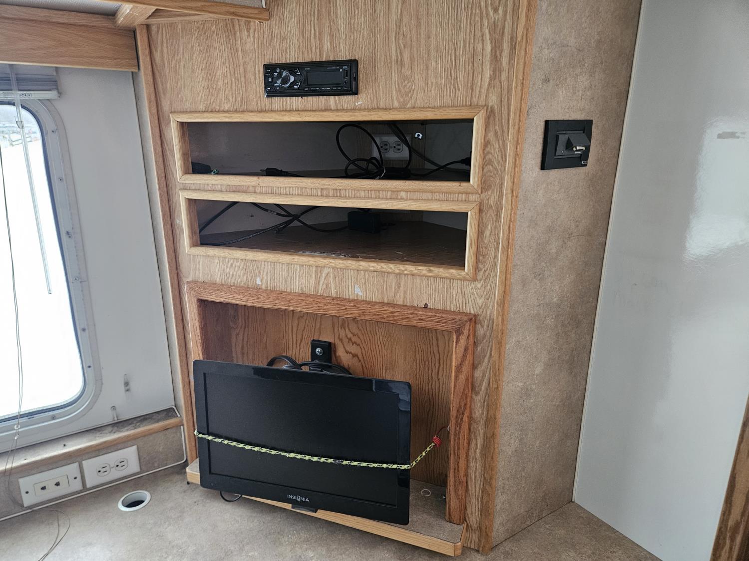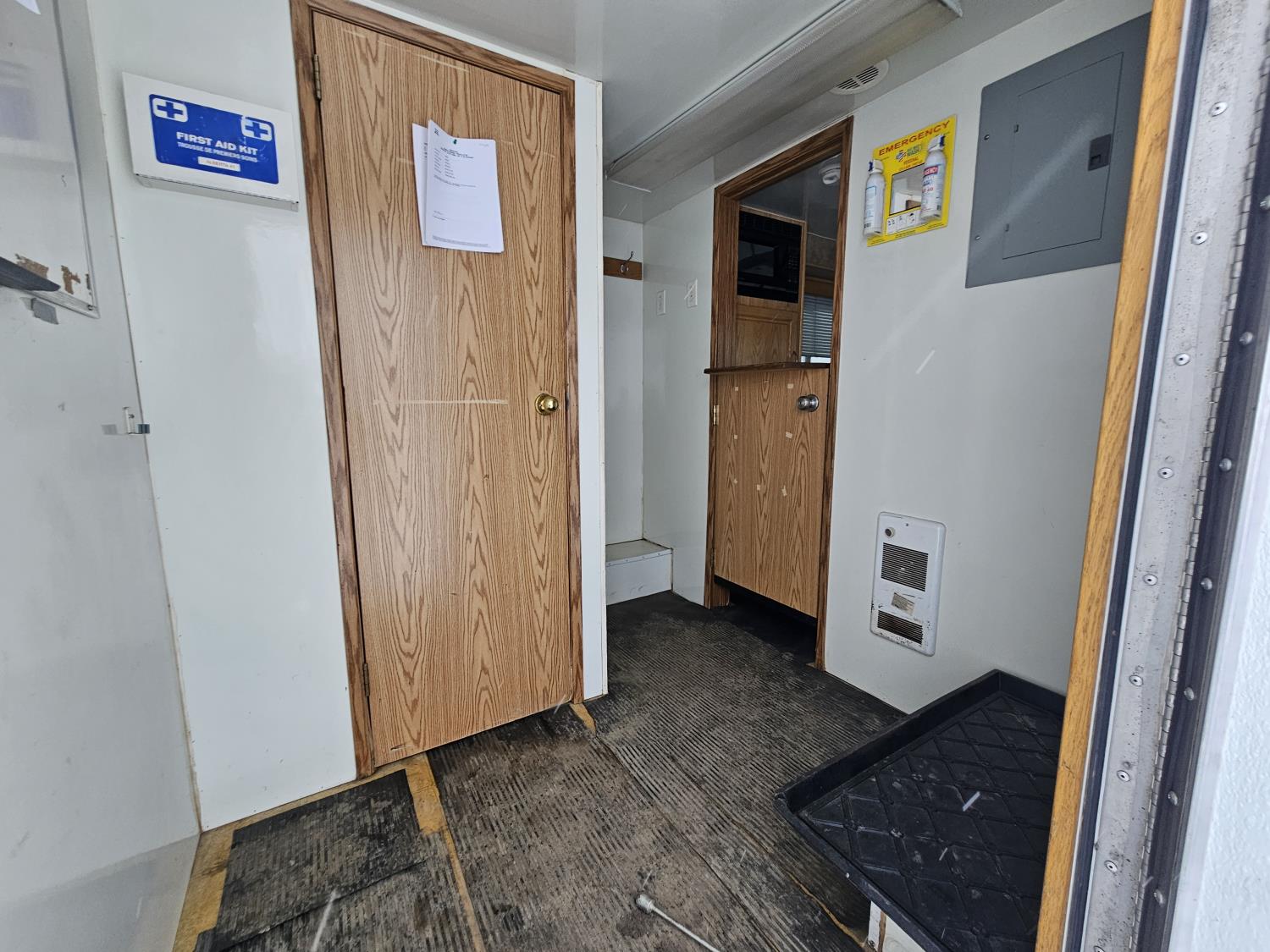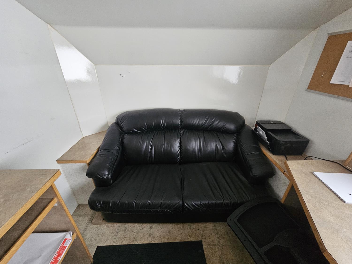 5500 lb axles, torsion suspension, bathroom, heater, (2) office chairs, leather sofa, fridge, A/C, storage, 235/85R16 tires