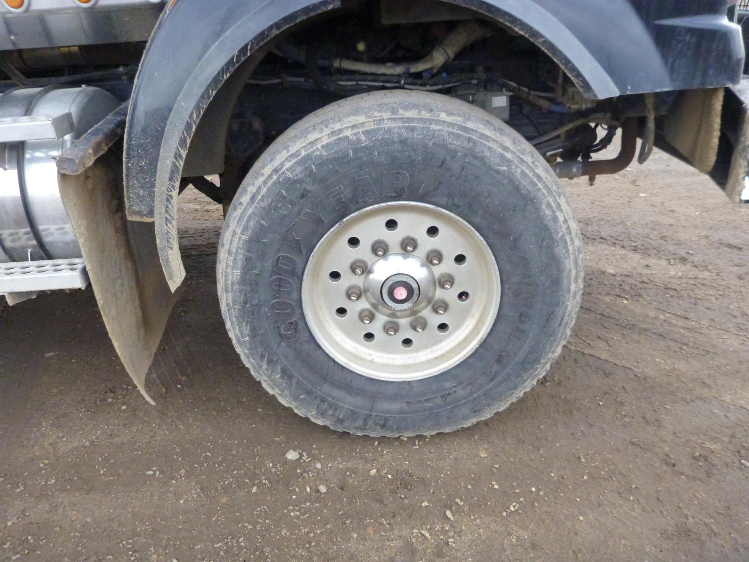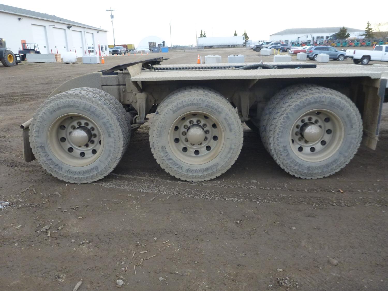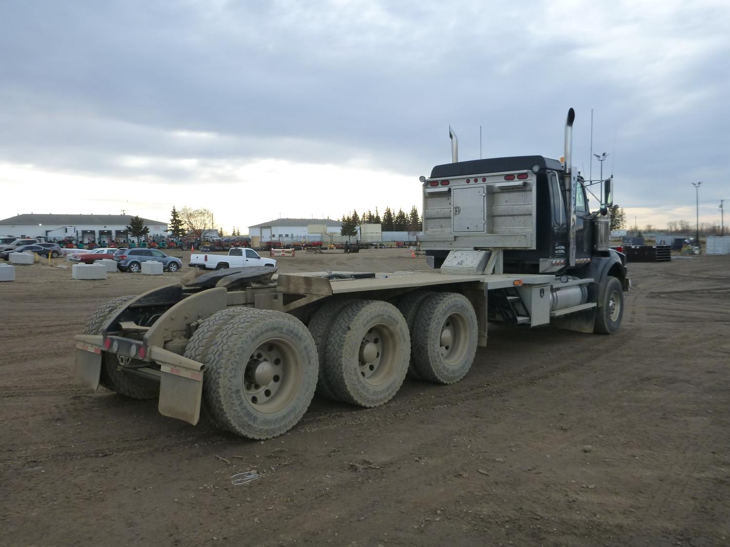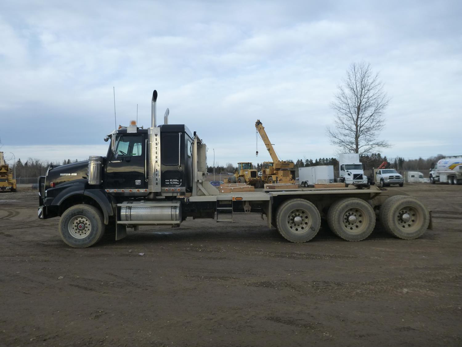 Detroit 14 L 6 cylinder 515 HP diesel engine, engine brake, Eaton Fuller 18 speed manual transmission, flat top 32 inch sleeper, A/C, cruise control, air ride driver seat, radio, stereo, steel moose bumper, aluminum headache rack, aluminum tool boxes, air ride suspension, 20,000 lb front axle, 61,200 lb rear axles, full lockers, 272 inch WB, all aluminum wheels, 425/65R22.5 front tires, 11R24.5 rear tires